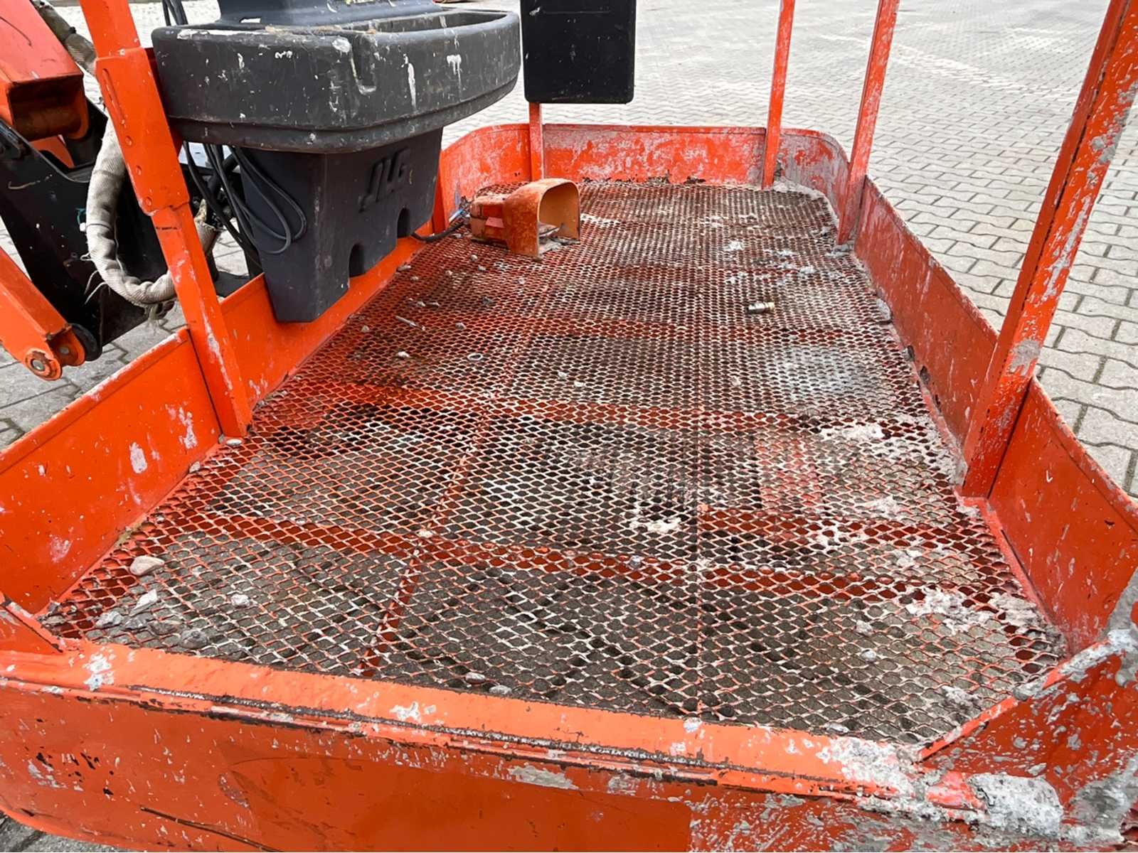 Gebruik: buiten; Ruwterrein; 4x4 aandrijving; platform vloerhoogte 14000 mm; knikbare jib; maximale knikhoogte 20300 mm; brandstoftank inhoud 82 liter; dieselmotor 49 Pk; kooibediening; working condition; Nee Merk: JLG Type: 460SJ Bouwjaar: 2014 Serienummer: 300185255 Diesel: true Motorvermogen (kW): 36kW Telescoop hoogwerker: true Knikarm hoogwerker: true Werkhoogte: 16000mm Horizontale rijkwijdte: 12340mm Plateau afm. l: 1830mm Plateau afm. b: 910mm Platform capaciteit: 270kg Afgelezen urenstand: 3439 Eigen gewicht: 8000kg Totale afmeting L: 8910mm Totale afmeting Breedte: 2350mm Totale afmeting Hoogte: 2500mm
