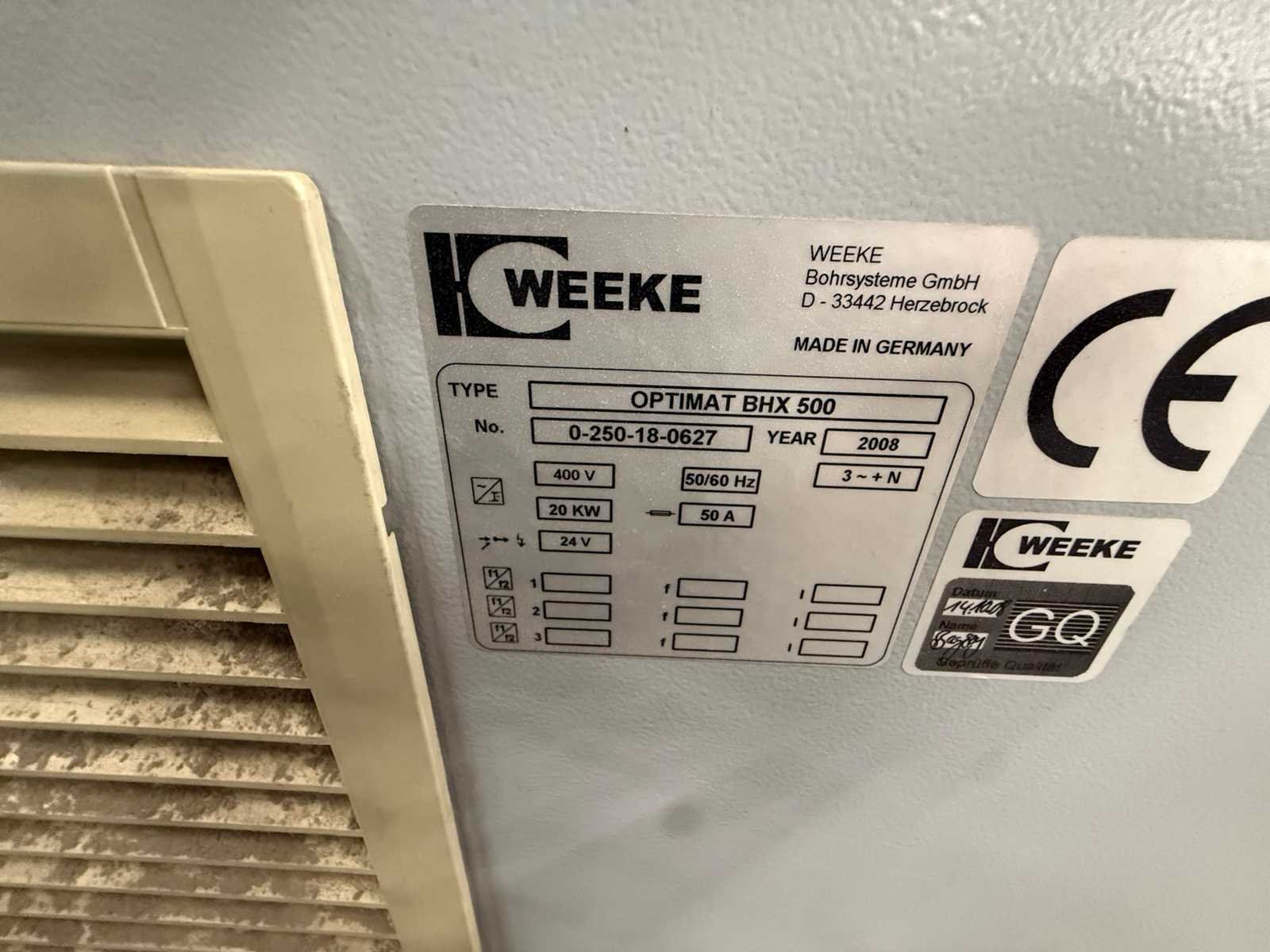 De machine is momenteel nog in productie en wordt in week 19 professioneel gedemonteerd en transportklaar gemaakt. In verband met het plaatsen van de nieuwe machine kan de geplande datum mogelijk nog enigszins afwijken. Het verladen (door koper) van de machine zal derhalve in overleg plaatsvinden. Nee Merk: Weeke / Optimat Type: BHX 500 Bouwjaar: 2008 Serienummer: 0-250-18-0627 Verplaatsing x-as: 2500mm Verplaatsing y-as: 1000mm Verplaatsing z-as: 80mm Opname: HSK-F63 Snelheid van n =: 130rpm Snelheid tot n =: 18000rpm CNC-besturing, merk, type: HOMAG powerControl Motorvermogen (kW): 35kW Aansluiting: 380V Machinegewicht: 6000kg Afmeting l: 8500mm Afmeting b: 2500mm Afmeting h: 2400mm