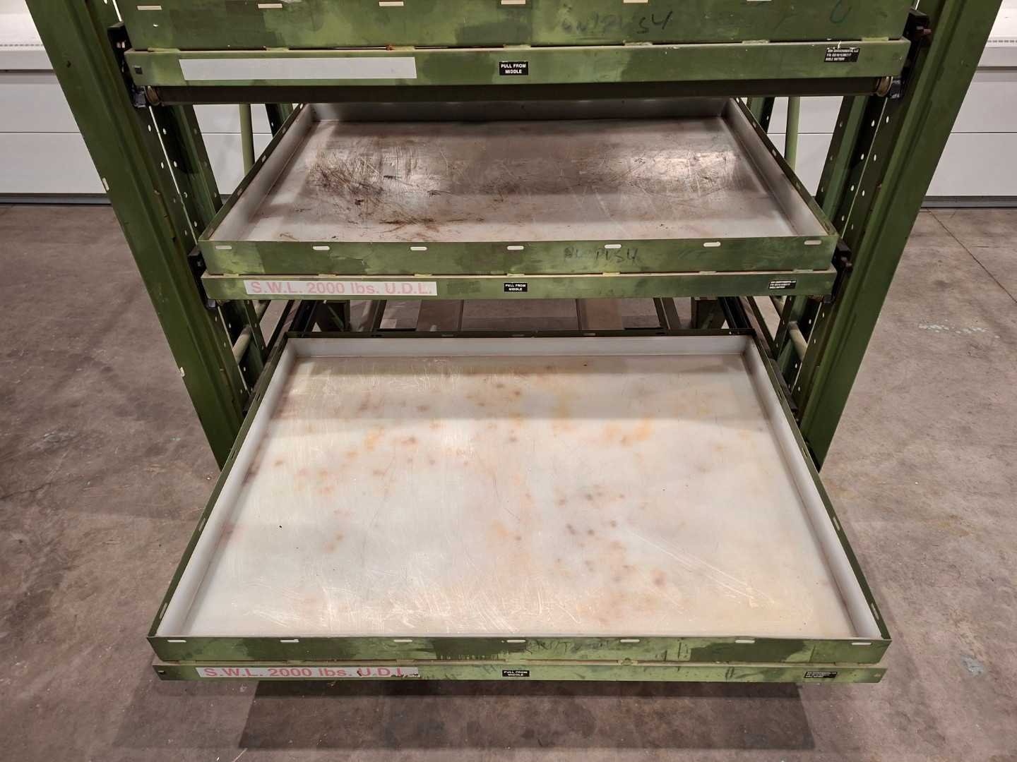 Verplaatsbare zwaarlast stelling met 3 uittreklades Fabricaat : Rack America Inc Type : 484-224-3058 Serial No : 050278 Lade afmetingen B x D : 1455 x 1040 mm Afstand tussen bovenste lade en middelste lade : 365 mm Afstand tussen middelste lade en onderste lade : 415 mm Deze afstanden / lades zijn verstelbaar in hoogte Afmetingen stelling B x D x H : 1760 mm x 1150 mm x 1700 mm Capaciteit per lade : SWL 2000 lbs Elke lade heeft een blokkering voor zowel volledige stand in en volledige stand uit Stelling heeft aan 2 zijde lade blokkering ivm transport van de stelling Stelling heeft heftrucklepel oppaksysteem tbv transport van de stelling Lades hebben als extra een kunststof inlegbak Nee Merk: Rack America Inc Type: 484-224-3058