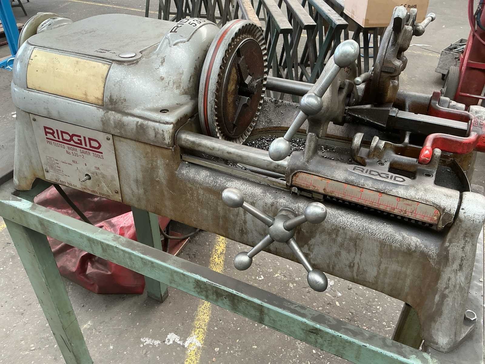 Voorzien van voetpedaal en afdekhoes. Nee Merk: Ridgid Type: 535-2 Aansluiting: 400V Serienummer: 380782 Elektrisch: true Totale afmeting Hoogte: 1300mm Totale afmeting Breedte: 1700mm Totale afmeting L: 600mm