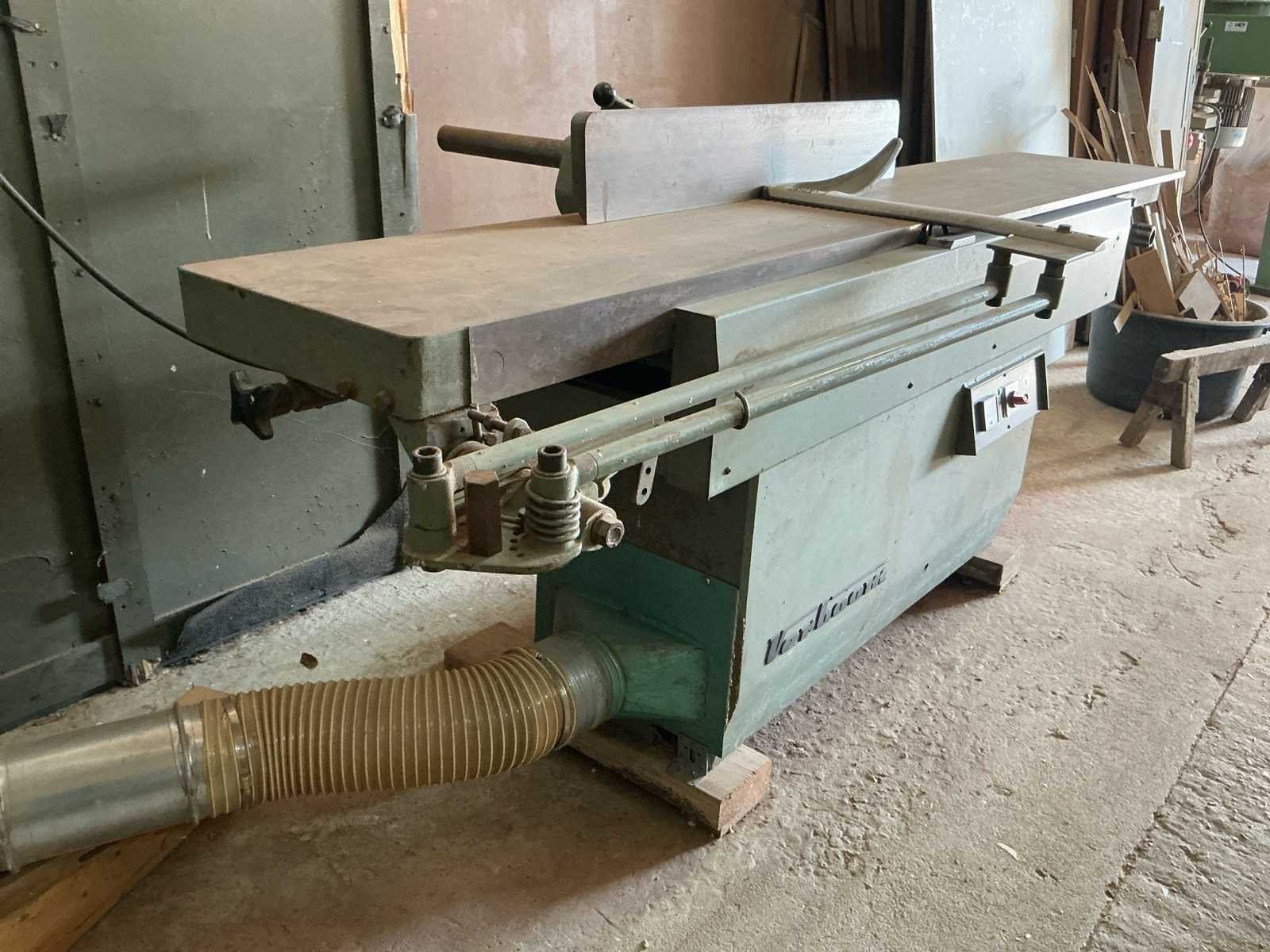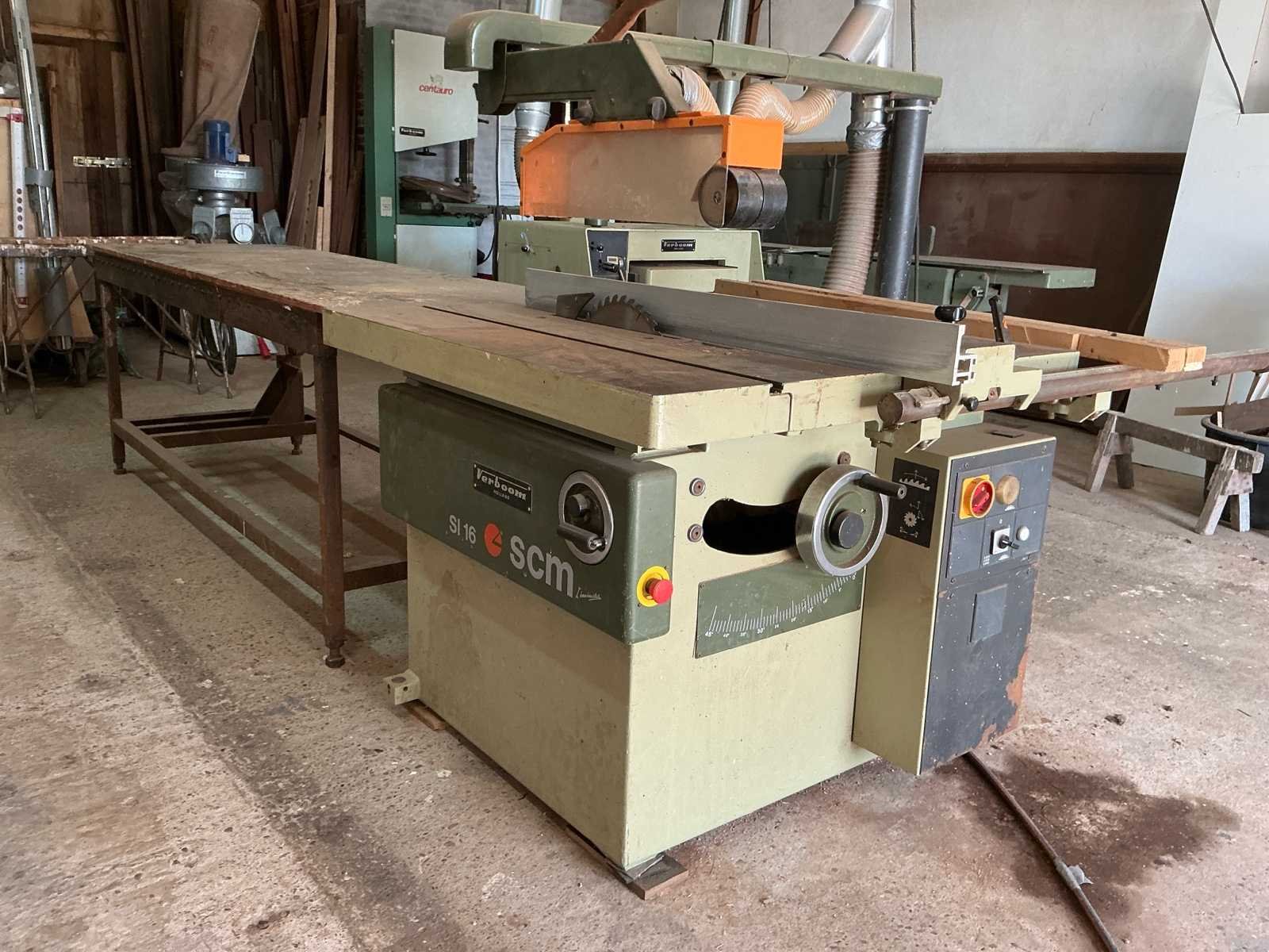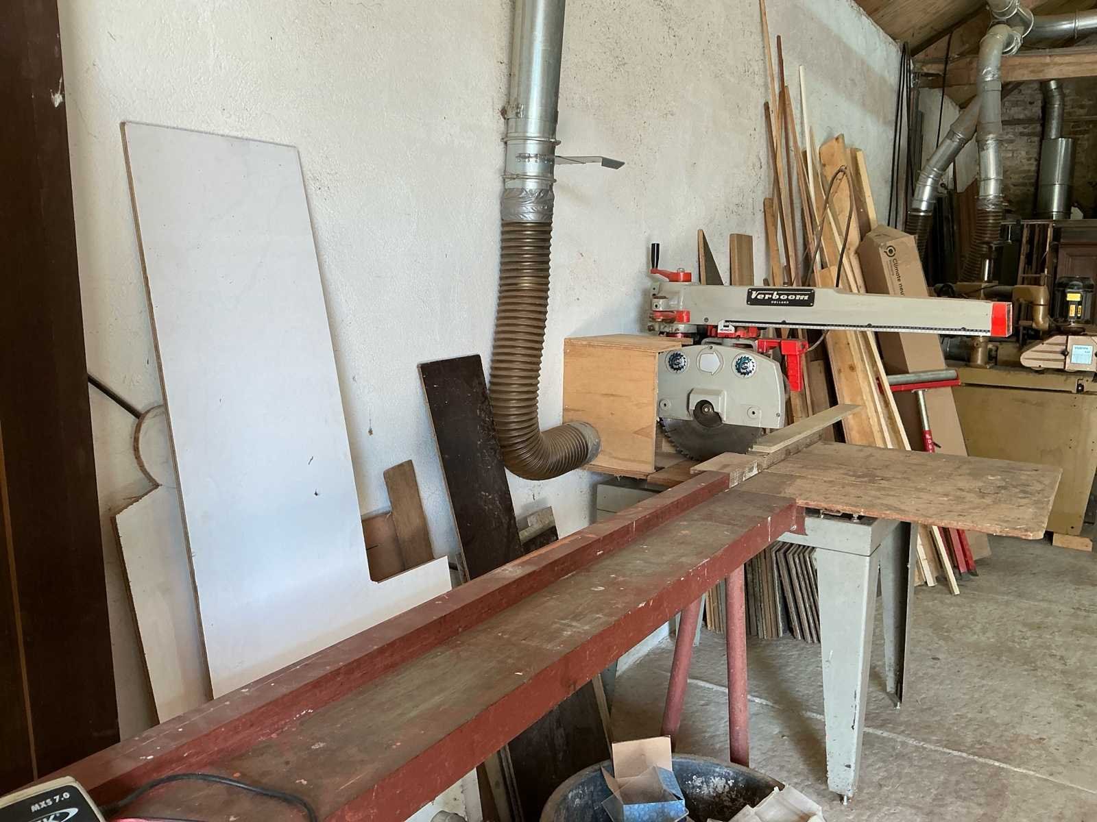 Voorzien van: HEY Afzuigsysteem type SAU 300 1000x3200x2900 VERBOOM Vlakbank type VE-400 2510x1200x1100 SCM Verdikte bank type S52 1800x1000x1100 SCM Tafelzaag type S116F inclusief aansluitende op maat gemaakte werkbank 1820x3750x1550 VERBOOM Afkortzaag type Radial600P3S inclusief op maat gemaakte metalen geleider 1260x4500x1450 SCM frees type T120/C 1050x950x1640 CORAL Afzuiging 1400x600x2200 CENTAURO Lintzaag type SP60 440x1100x2060 SAMCO Langgatboor type AS16 700x900x1200 Inclusief volledig functionerend afzuiging met koppeling en diverse losse buizen en stroomkast Dient door koper gedemonteerd te worden, hefmiddel aanwezig. Nee Merk: VERBOOM
