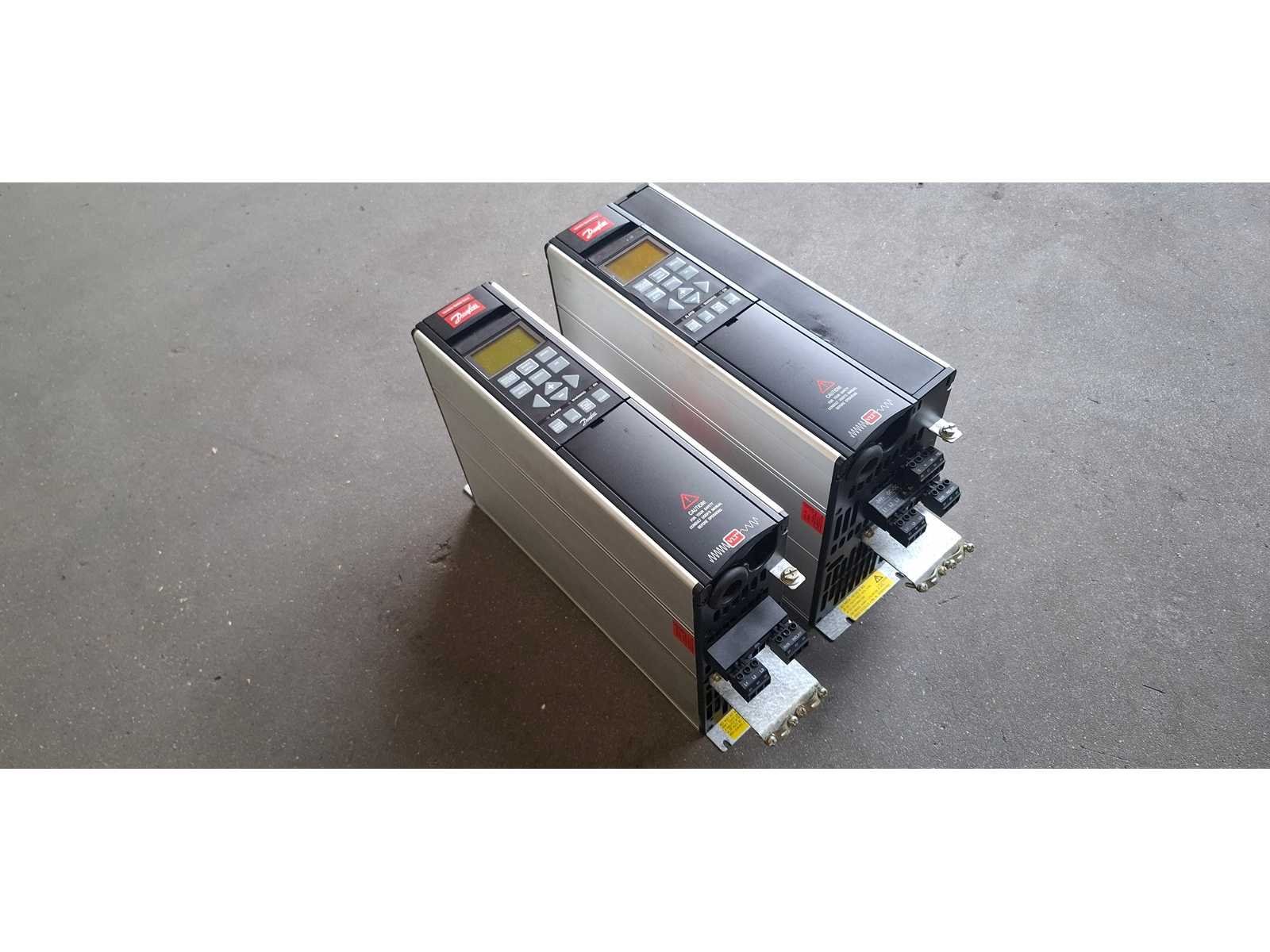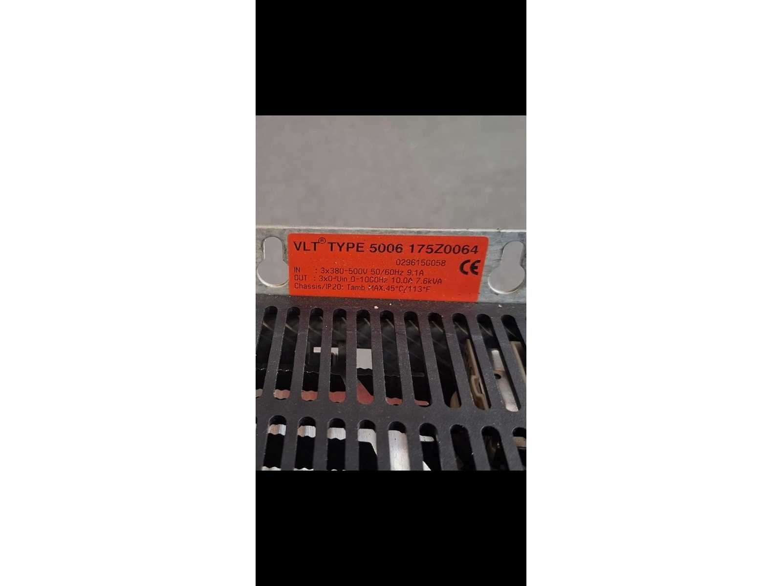 1x Danfoss Type: VLT 5004 (onderdeel van de VLT 5000-serie). Codenummer: 175Z0052. Vermogen: 2,2 kW (4,3 kVA). Ingangsspanning: 3-fase, 380-500V bij 50/60Hz. Uitgangsspanning: 0 tot de volledige ingangsspanning. Uitgangsfrequentie: 0-1000 Hz. 1x Danfoss Type: VLT 5006 (onderdeel van de VLT 5000-serie). (C/N: 175Z0064) zijn dit de technische gegevens: Vermogen: 4 kW. Ingang (IN): 3-fase, 380-500V, 50/60Hz, 9,1A. Uitgang (OUT): 3-fase, 0 tot ingangsspanning (Uin), frequentiebereik van 0-1000 Hz, 10,0A, 7,6kVA. Nee Merk: Danfoss VLT
