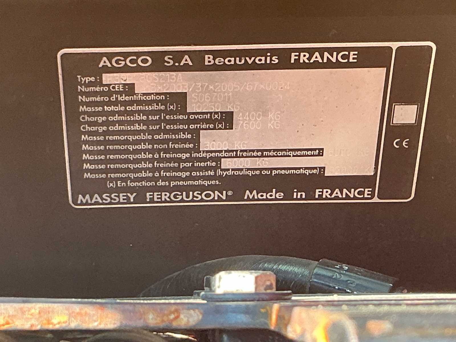 Elektronische hefinrichtingGeveerde cabine, Massey Ferguson 6465T3, dyna6, 40km eco, geveerde vooras, geveerde cabine, datatronic 3, isobus, 24+24 versnellingen, climatronic, ccls pomp met 2 electrische ventielen, 3e mechanisch. meedraaiende voorspatborden. 5400 / 1000 rpm, Hefvermogen achter: ± 7.500 – 8.000 kg, Hydrauliekpomp: ± 110 l/min Nee Merk: Massey Ferguson Type: 6465t3 Bouwjaar: 2009 Serienummer: S067001 Kenteken: TRP-07-F Motorvermogen (kW): 88kW Afgelezen urenstand: 13698 Versnellingsbaktype: Dyna Aantal hydraulische ventielen voor: 0 Aantal hydraulische ventielen achter: 6 Bandenmaat voor: 480/65r28 Bandenmaat achter: 600/65r38 Load sensing: true Cabine: true Luchtgeveerde stoel: true Eigen gewicht: 10250kg Totale afmeting L: 4000mm Totale afmeting Breedte: 2400mm Totale afmeting Hoogte: 3100mm Kentekenpapieren compleet?: true Chassisnummer: E13 2003 37 2005 67 0024 Datum eerste toelating: 2008-06-30 Zelf rijdend exporteren: Mogelijk