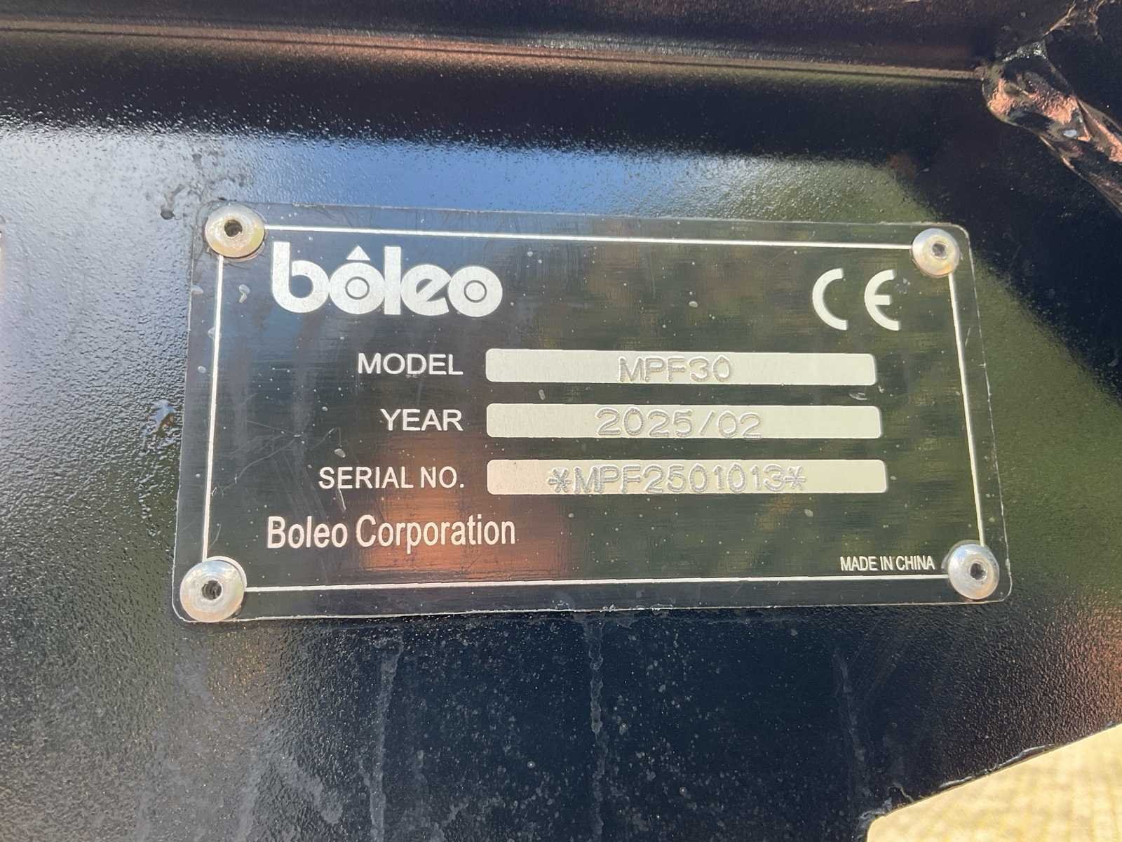 Rupsbreedte 200mm, voorzien van: knijper schepbak (1080mm), palletbord (1060mm), servo besturing, mechanische snelwissel, 2x dubbelwerkend hydraulisch ventiel , 1x drukloze retour aansluiting, led verlichting, Euro aansluijting (60mm) Nee Merk: Boleo Type: SV25H Bouwjaar: 2025 Serienummer: SVQ10011RG5744 Merk motor: Kubota Motorvermogen (kW): 18kW Aantal cilinders: 3 Brandstof: diesel Bedrijfsgewicht: 1350kg Graafbak afm. b: 1080mm Afgelezen urenstand: 9 Eigen gewicht: 1350kg Totale afmeting L: 1350mm Totale afmeting Breedte: 1080mm Totale afmeting Hoogte: 1350mm