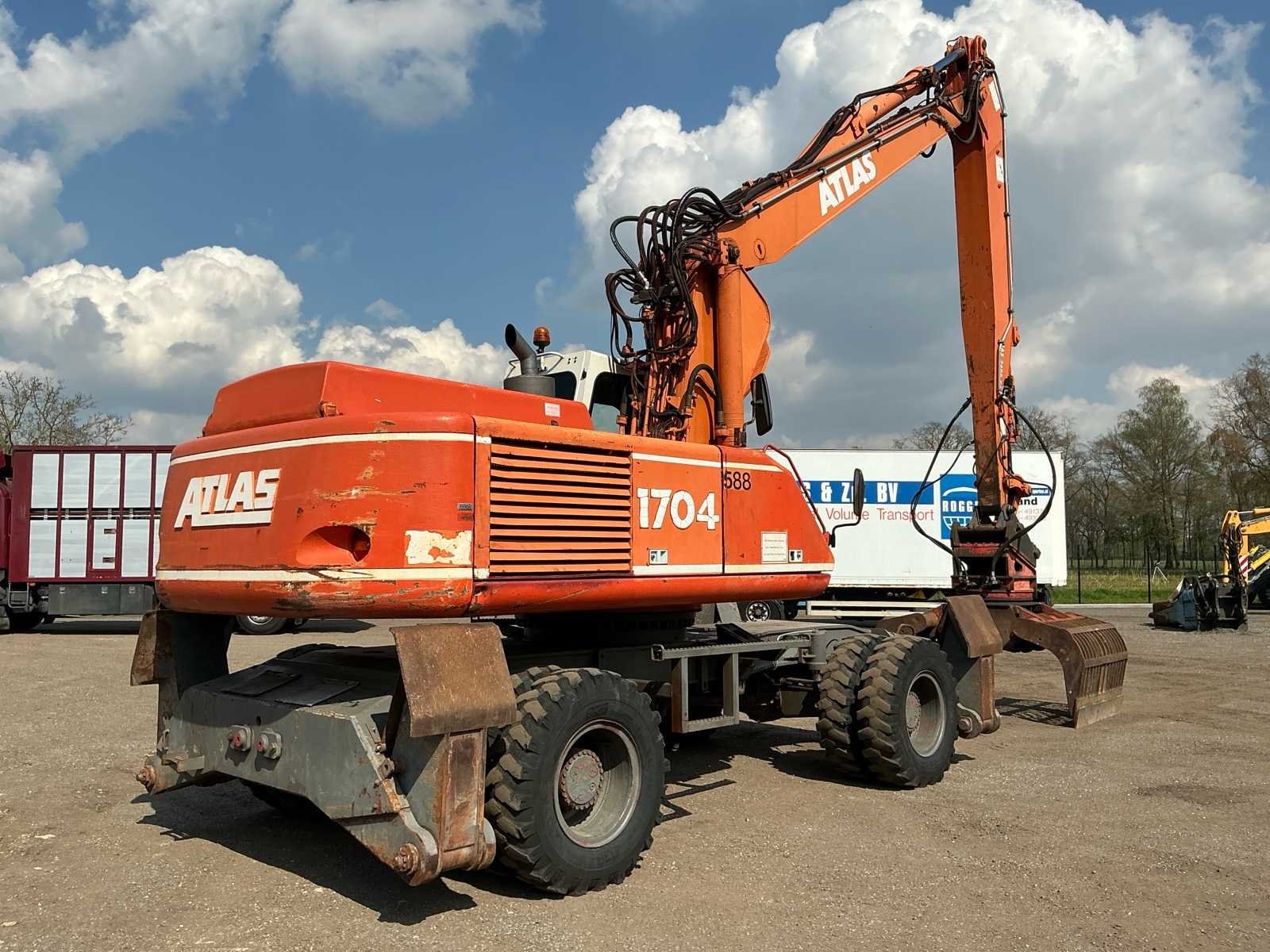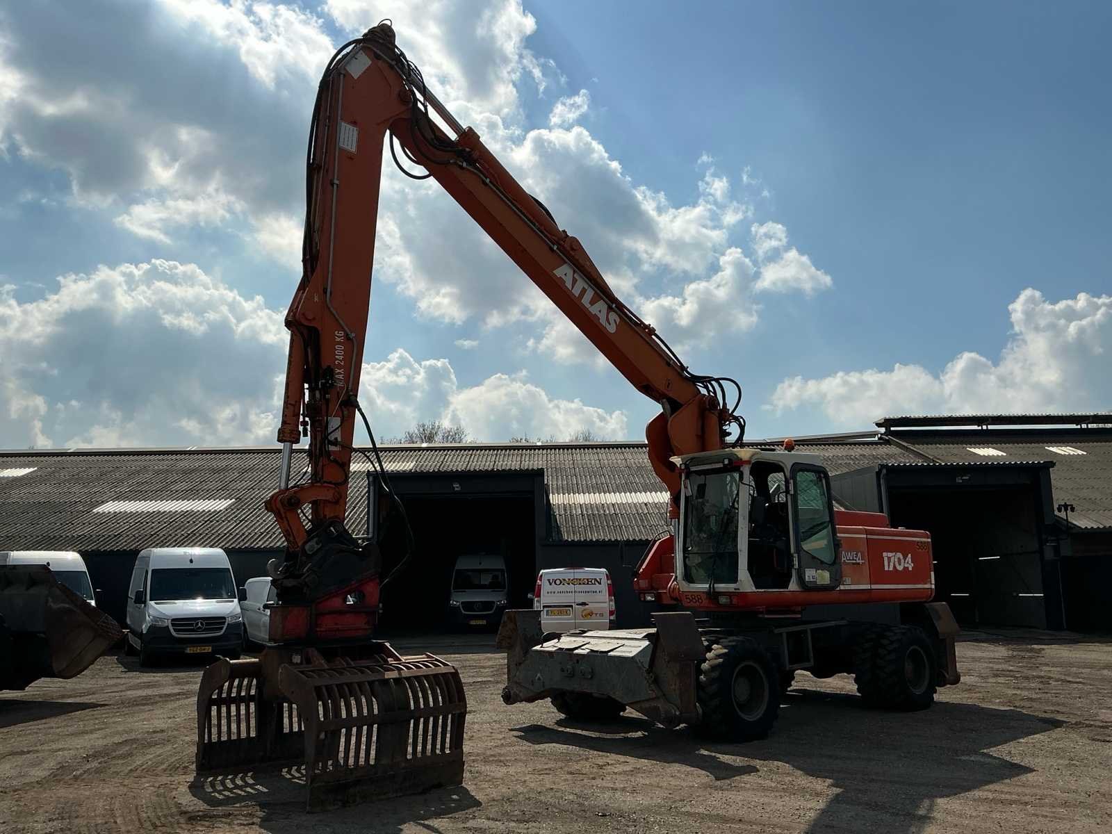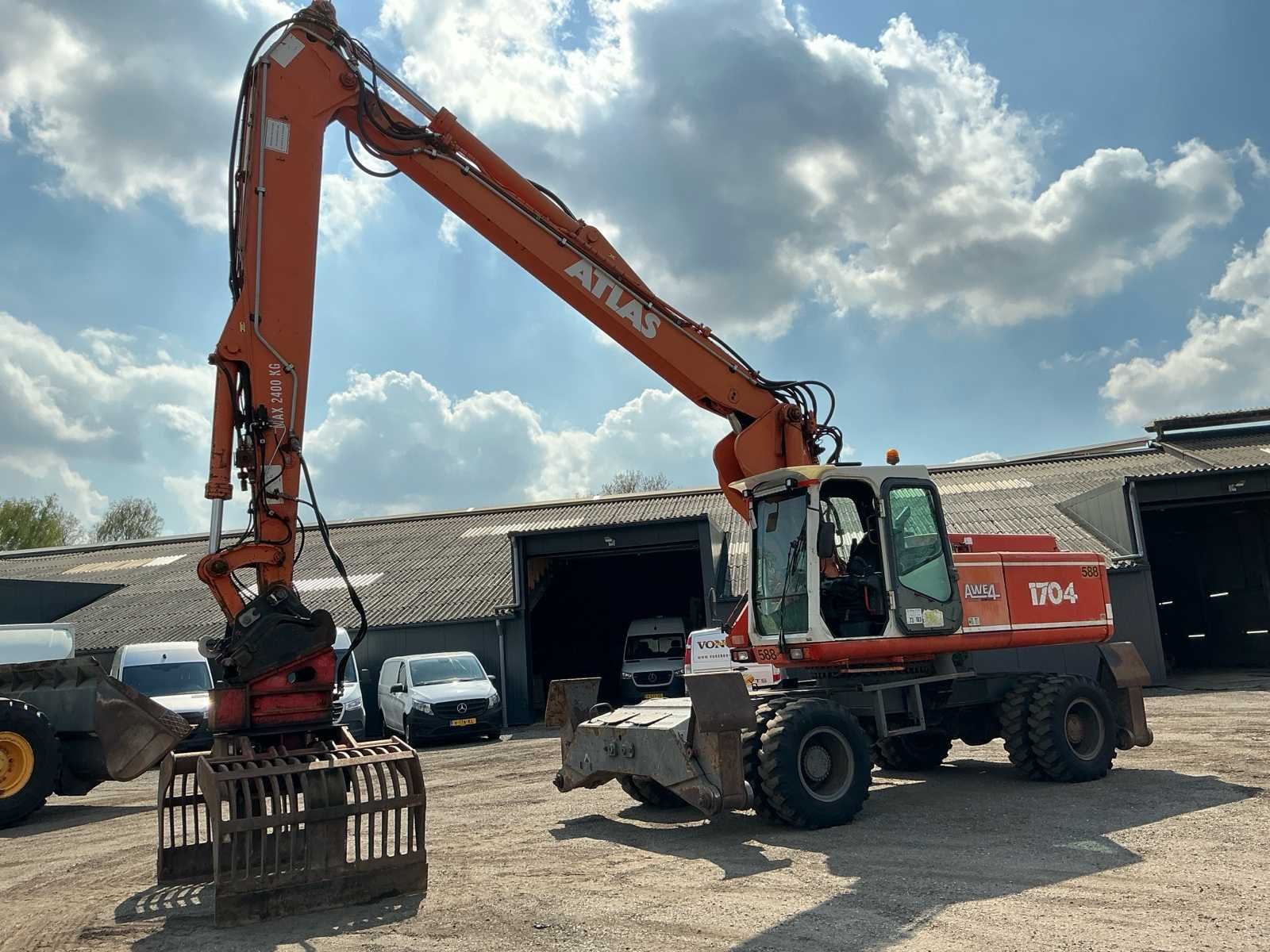 Voorzien van: lange giek, sorteergrijper, stempelpoten, 4x4 aandrijving, NL kenteken, automatische smering, werklampen, hydraulische snelwissel, extra hydraulische functies op giek Nee Merk: Atlas Type: 1704 Kenteken: TPF09P Merk motor: Deutz Motorvermogen (kW): 160kW Aantal cilinders: 6 Brandstof: Diesel Bedrijfsgewicht: 27500kg Cabine: true Afgelezen urenstand: 4835 Eigen gewicht: 27500kg Totale afmeting L: 9500mm Totale afmeting Breedte: 2750mm