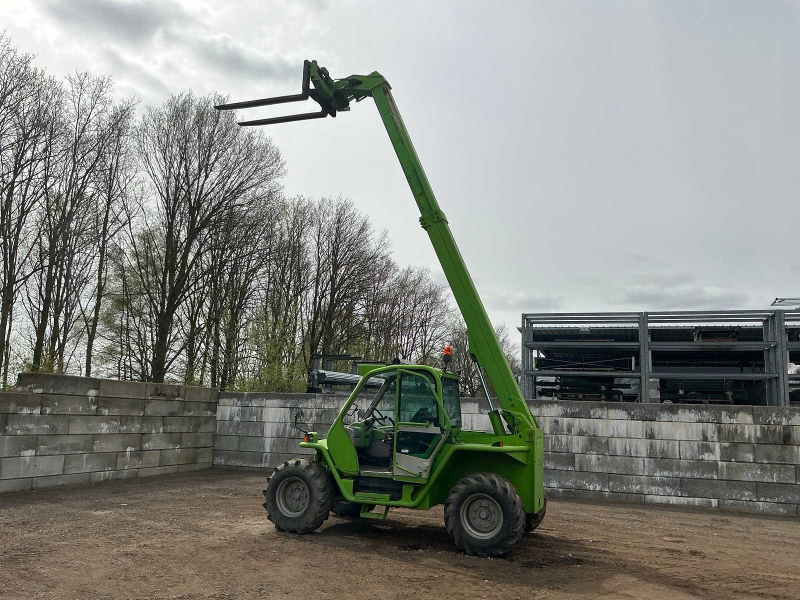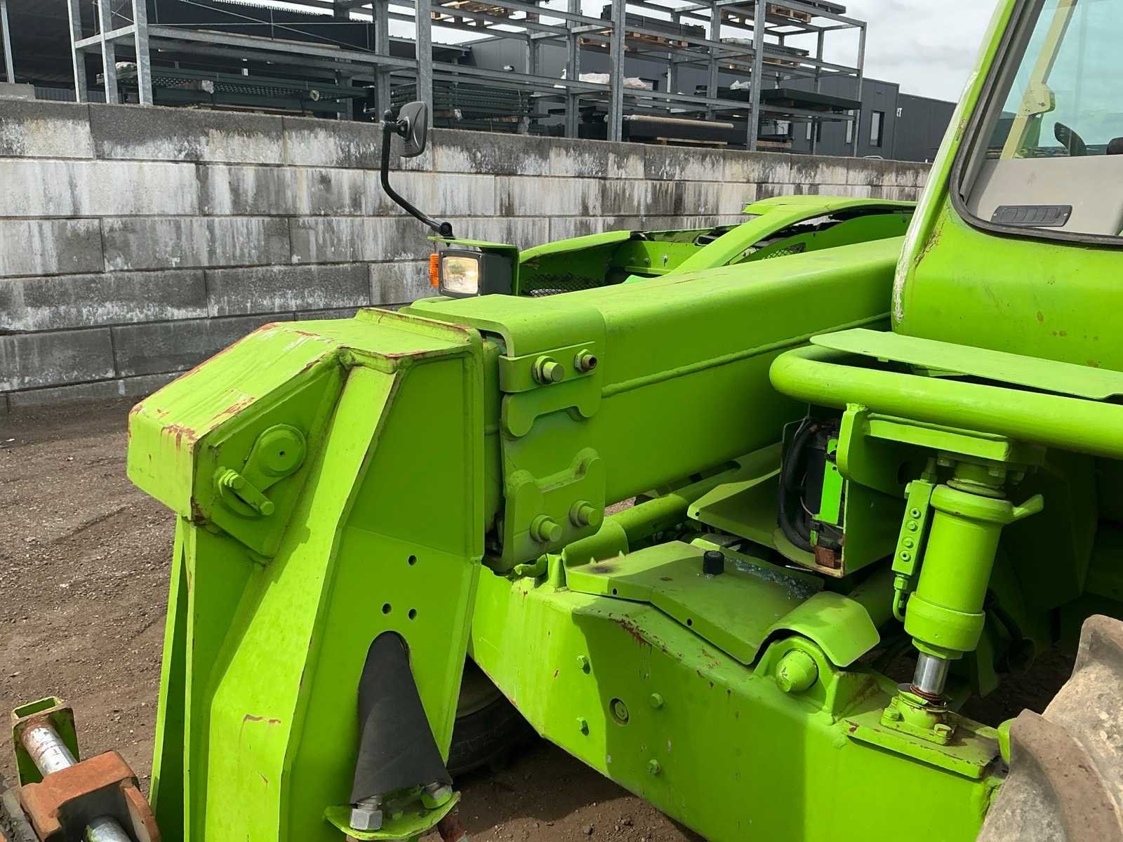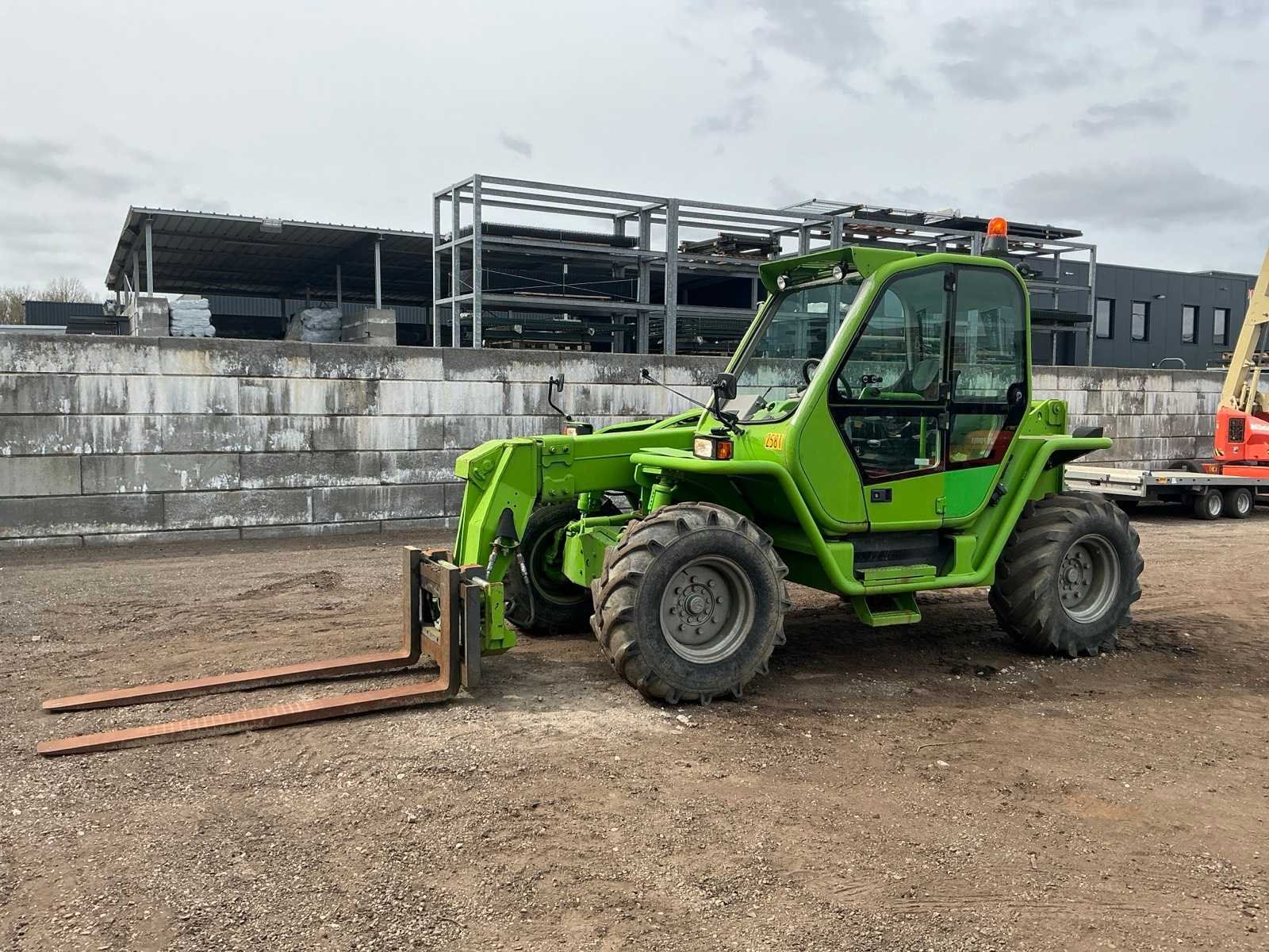 Let op; voorruit ontbreekt, accu slecht, dient opgestart te worden, 4x4x4, asstabilisatie, nivellering, lepels 1800mm, hydraulische wissel, 3e functie, telescopische mast, werkverlichting, verwarming, max hefhoogte 7000mm, max hefvermogen 3600kg Nee Merk: Merlo Type: P36.7 Bouwjaar: 2005 Serienummer: 135121763 Hefvermogen: 3600kg Hefhoogte: 7000mm Cabine: true Vierwielaandrijving 4x4: true Lepellengte: 1800mm Luchtbanden: true Afgelezen urenstand: 820 Eigen gewicht: 7000kg Totale afmeting L: 6500mm Totale afmeting Breedte: 2300mm Totale afmeting Hoogte: 2650mm