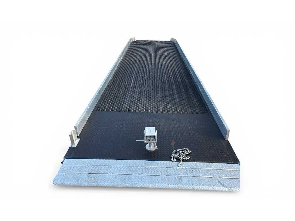 Voorzien van: bouwjaar 2021, 24 volt, volrubberband, hydraulische Nee Merk: Euro-ramp Model: WCM12E Product type: 12 Ton Kleur: Blauw Lengte: 11400mm Breedte: 2500mm Hoogte: 1210mm