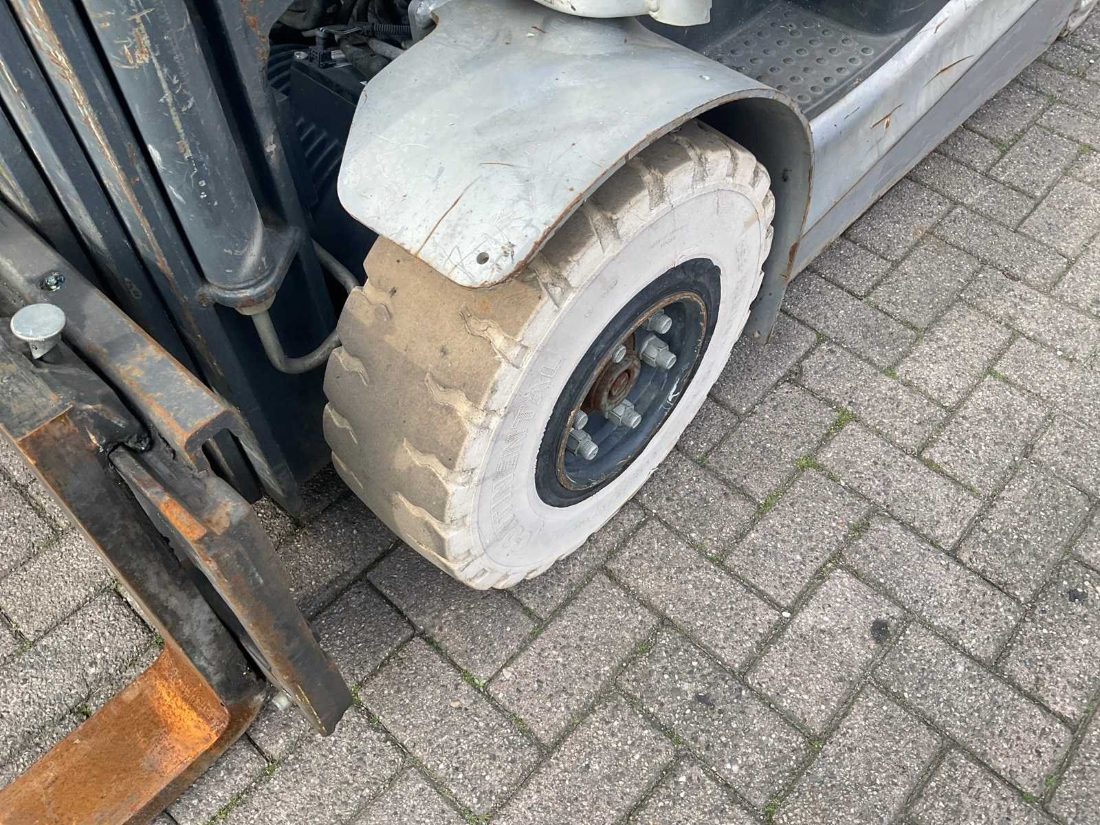 Nee Merk: Still Type: Rx 60-25 Bouwjaar: 2011 Brandstof: Elektrisch Mast: Triple Soort band: Volrubber banden Aantal wielen: 4 Afgelezen urenstand: 1510 Free-lift: true Side-shift: true Triple mast: true Eigen gewicht: 3800kg Hefvermogen: 2500kg Lepellengte: 1200mm Hefhoogte: 4600mm Vol rubber banden: true Minimale doorrijhoogte: 2150mm Totale afmeting L: 2300mm Totale afmeting Breedte: 1200mm Totale afmeting Hoogte: 2150mm