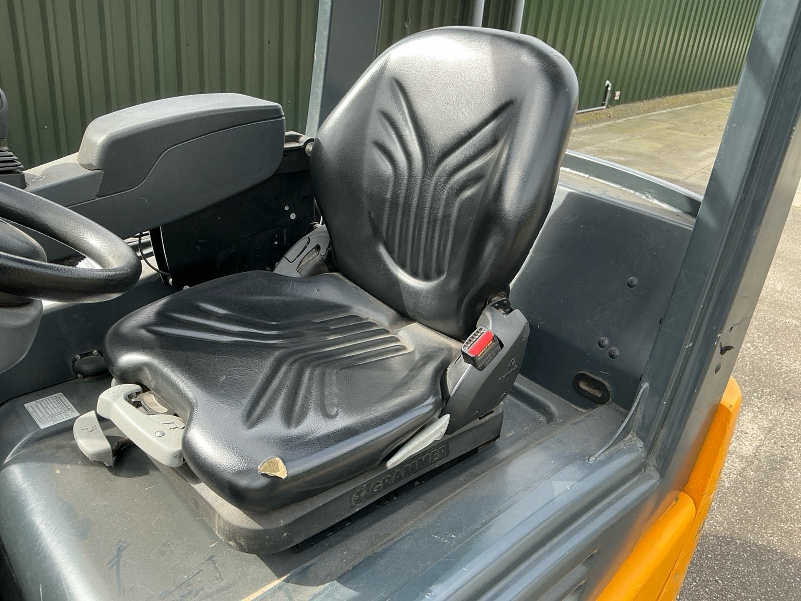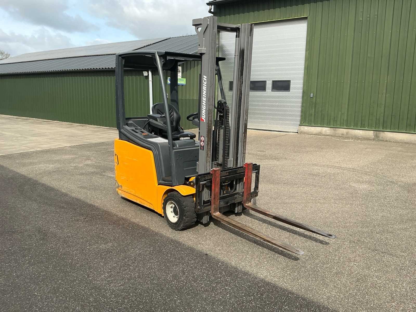 Voorzien van: achteruitkijkspiegel, metalen kooi, Nee Merk: Jungheinrich Type: EFG216K Bouwjaar: 2012 Serienummer: FN431735 Afgelezen urenstand: 8801 Free-lift: true Side-shift: true Duplex mast: true Eigen gewicht: 2620kg Hefvermogen: 1600kg Lepellengte: 1080mm Max. hefhoogte: 3500mm Vol rubber banden: true Minimale doorrijhoogte: 2260mm Totale afmeting L: 3000mm Totale afmeting Breedte: 1100mm Totale afmeting Hoogte: 2260mm
