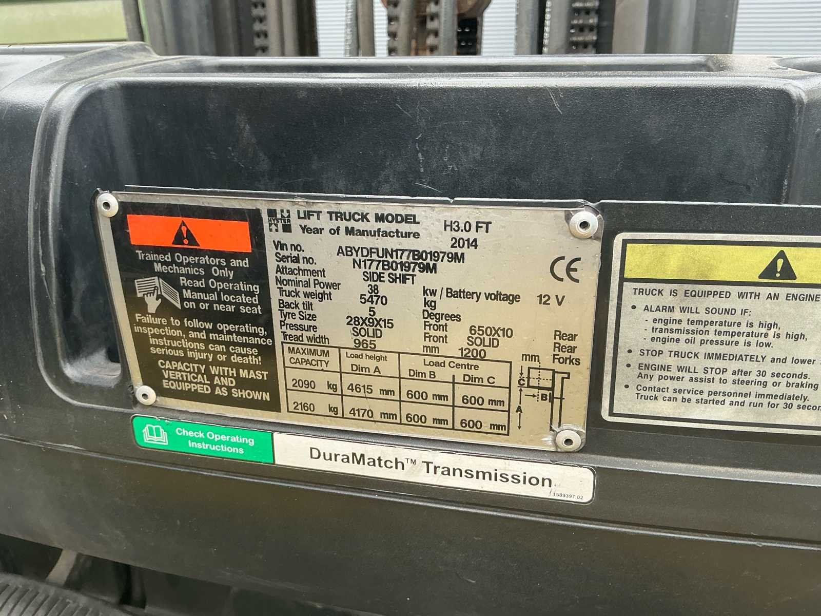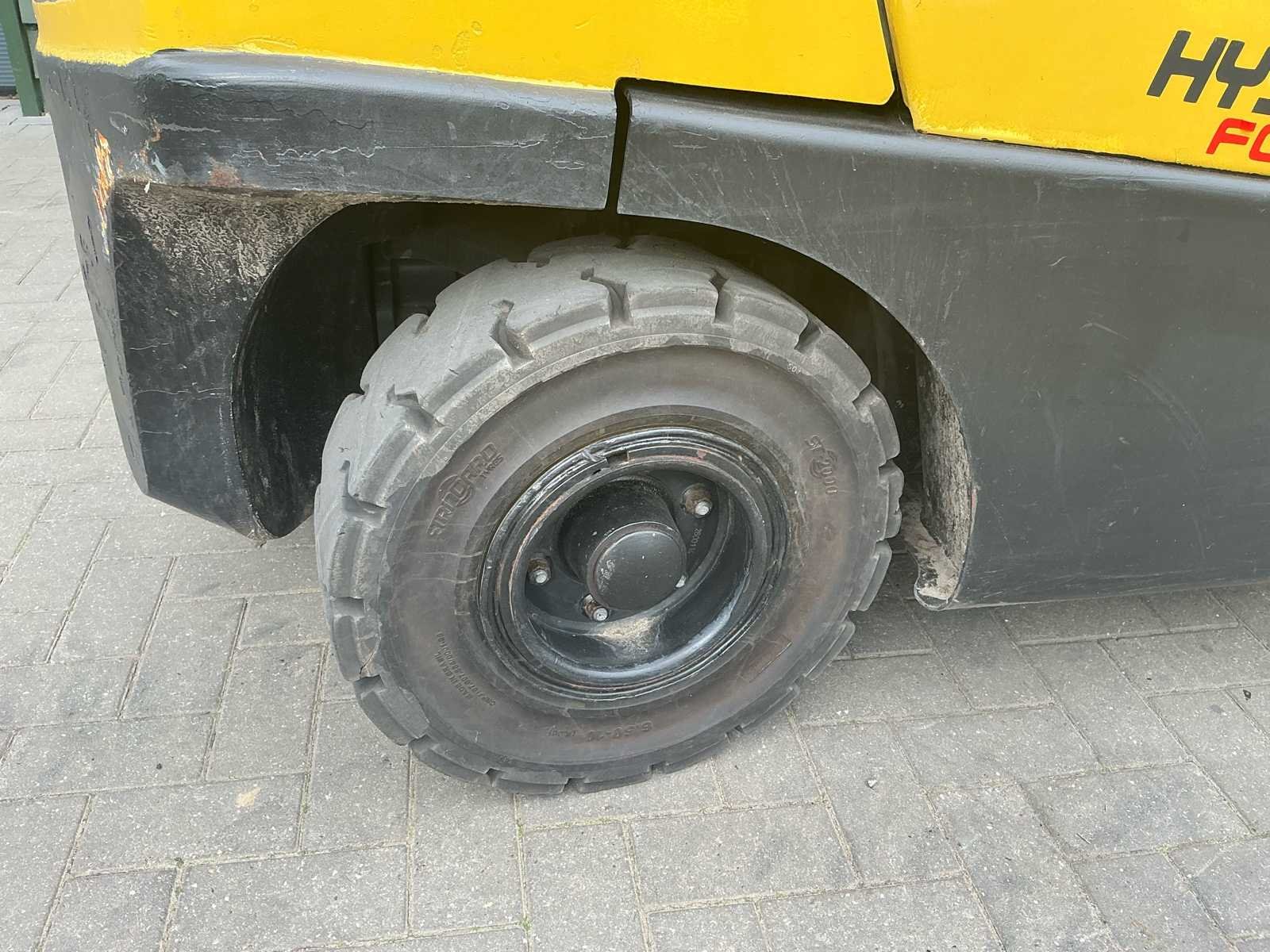 Beschikt over 38 kW vermogen No Merk: Hyster Type: Fortens 3.0 Bouwjaar: 2014 Brandstof: LPG Mast: Triple Soort band: Volrubber Aantal wielen: 4 Afgelezen urenstand: 15823 Triple mast: true Eigen gewicht: 5470kg Hefvermogen: 3000kg Lepellengte: 1200mm Max. hefhoogte: 4600mm Vol rubber banden: true Minimale doorrijhoogte: 2150mm LPG: true