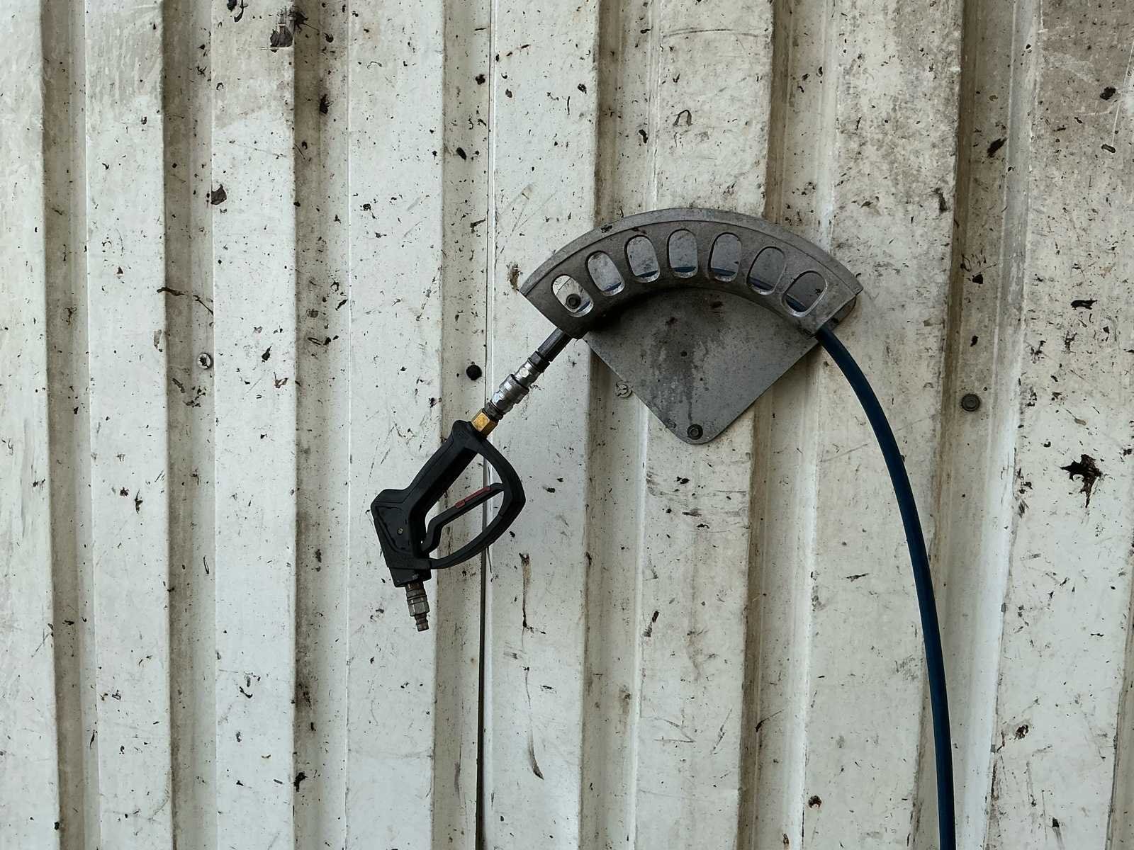 Voorzien van open slanghaspel, 20 meter slang, spuitpistool en 2 spuitlanzen. Nee Merk: Kranzle Type: 1165-1 Max. druk: 165bar Gewicht: 223kg Lengte: 1050cm Breedte: 800cm Hoogte: 1000cm