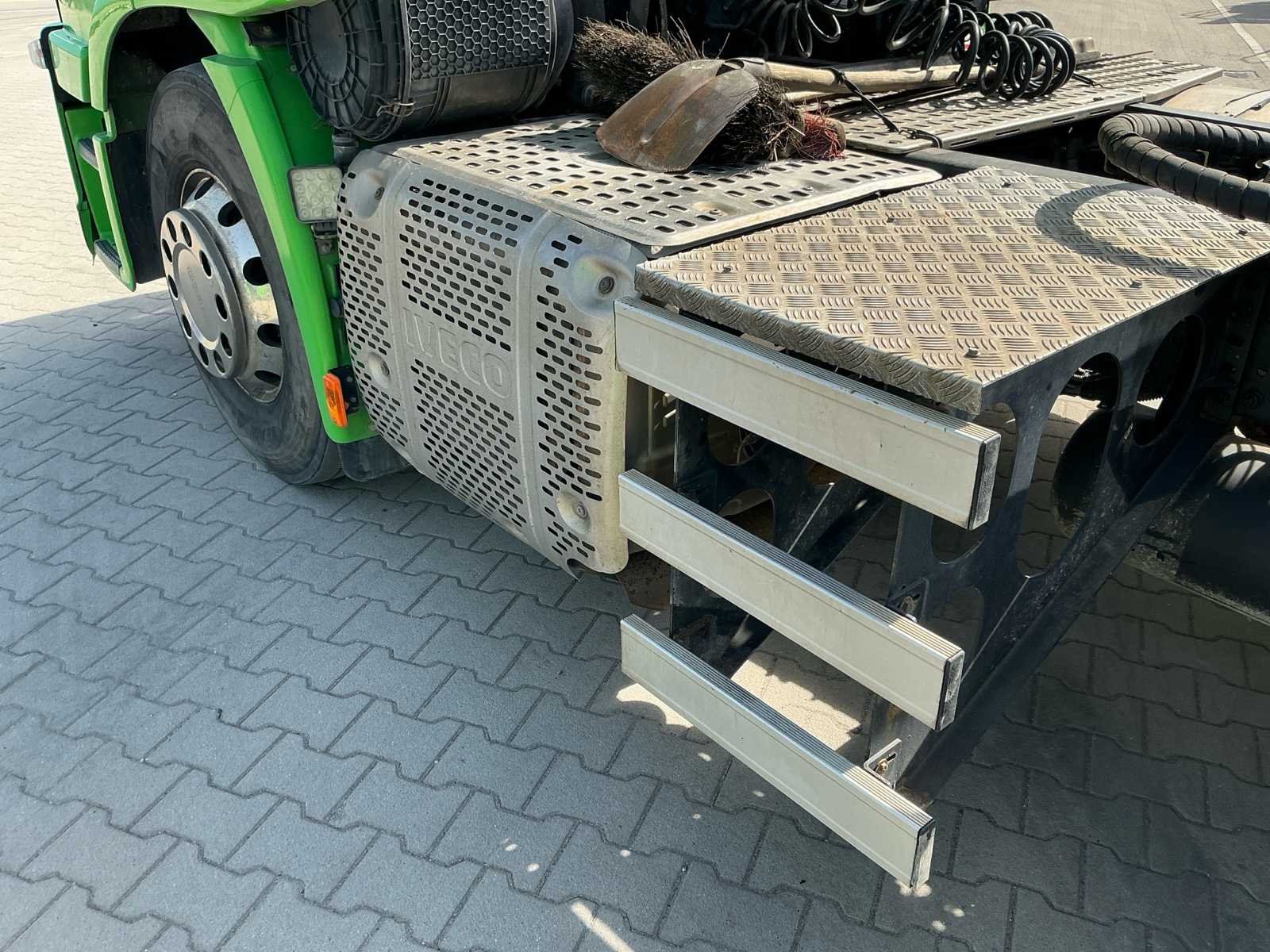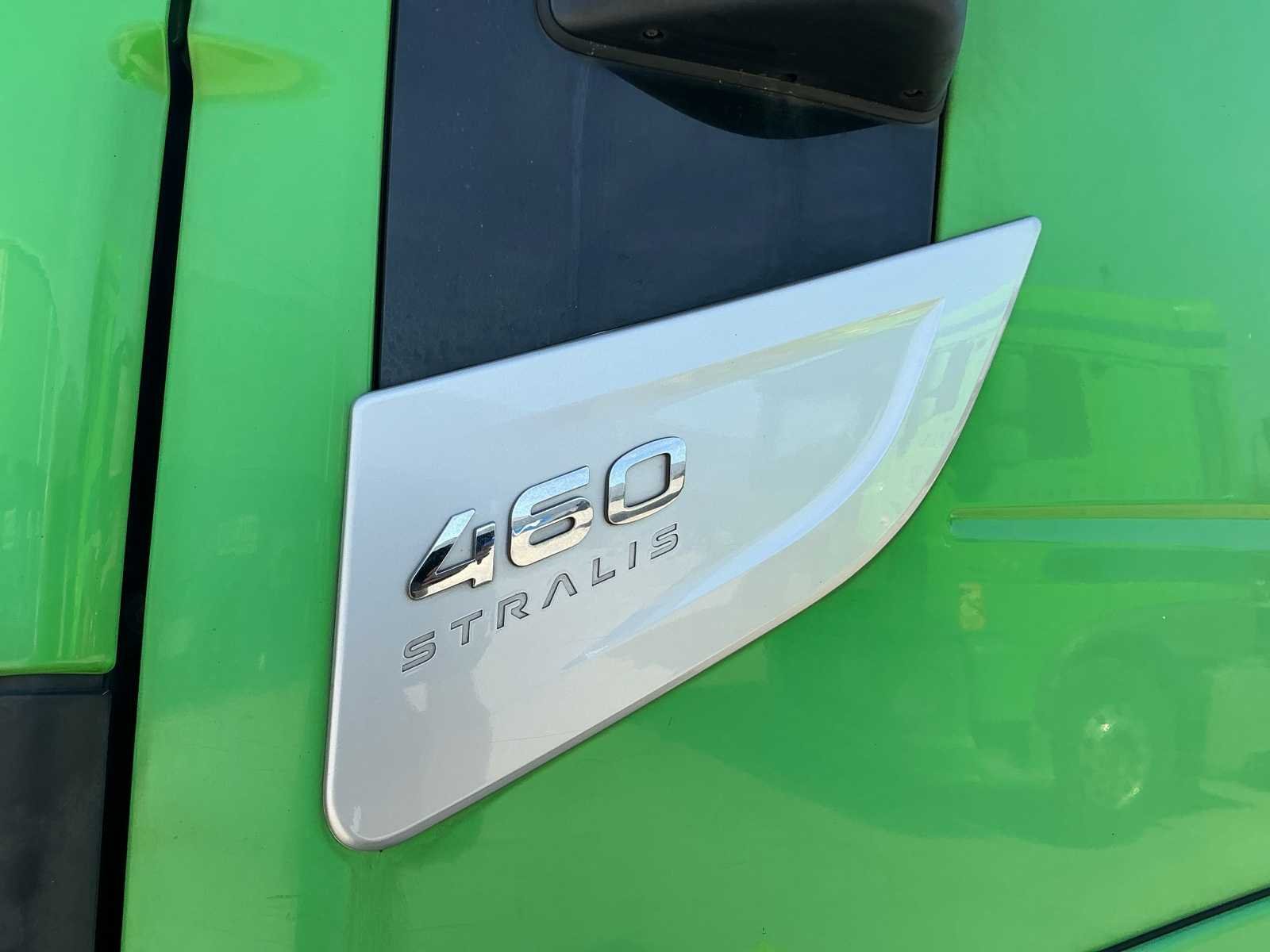 Voorzien van: Merk: IVECO Stralis Hi-Way MY16 Euro VI, commercieel model: AS440S46T/P, HEAVY/ONC-TRAXON (TX-12M/TOWING), motor cursor 11 (C11), versnellingsbak: 12TX 2210 TD (automaat), aandrijving: 4x2, GVW: 18–20 ton, achteras ratio: 2.64, brandstoftank: 740L, AdBlue tank: 35L, ABS + EBL + ASR + ESP, AEBS (noodremsysteem), LDWS (lane departure warning), cruise control (adaptief), digitale tachograaf, AS EV0 Hi cab (hoge cabine), airco (automatisch), luchtgeveerde cabine, luxe bestuurdersstoel, koelkast (maxi fridge + coolbox), radio met Bluetooth, elektrisch dakluik, zonneklep extern, groen (RAL 6018), Alcoa Durabright velgen, LED dagrijverlichting, dakspoiler + side deflectors, aluminium luchtketels, PTO NH4C pomp, hill holder. Nee Kenteken: 82BLV4 Merk: Iveco Type: Stralis MY16 AS 440S46T/P Model: AS440ST/P Bouwjaar: 2018 Chassisnummer: WJMM62AT40C407223 Afgelezen kilometerstand: 7174849km Cilinderinhoud: 11120cc Vermogen (kW): 338kW Brandstof: diesel Datum eerste toelating: 2019-01-30 APK vervaldatum: 2027-02-01 Aandrijving: 4x2 Drive type: Achterwiel Aantal zitplaatsen: 2 Kleur: Ral 6018 Bruto BPM (NL): 0 Aantal sleutels: 2 Ledig gewicht: 7697kg Vermogen (pk): 453 Aantal cilinders: 6 Carrosserie: Opleggertrekker Emissieklasse: 6