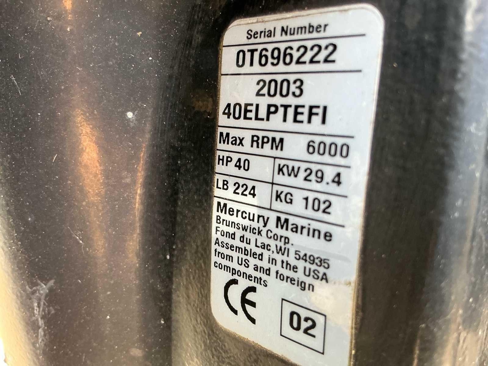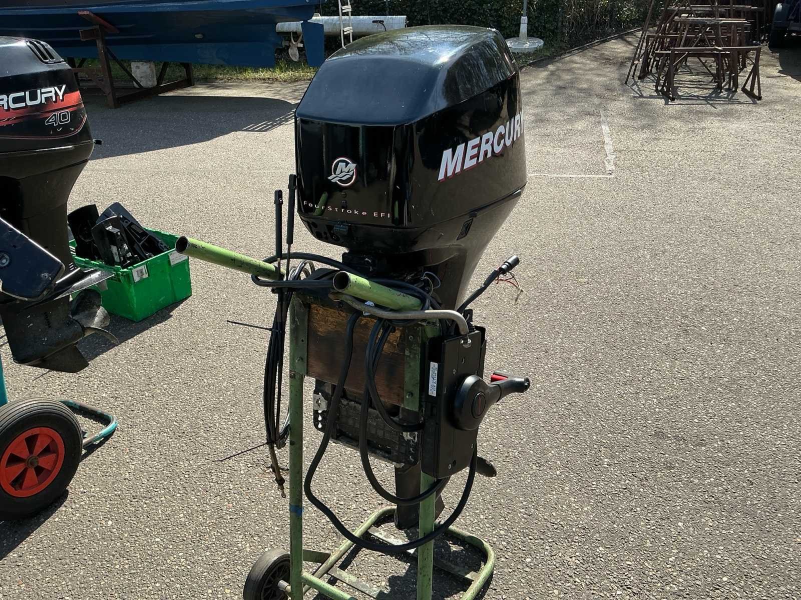 Voorzien van: Met afstandsbediening, met powertrim, Smartcraft (uitleesbaar urenstand rond 450uur) bij aflevering krijgt de koper een uitdraai met deze uren.Langstaart 51cm. 40 pk viertakt buitenboordmotor met EFI-injectie, langstaart (20”), elektrisch starten/trim, ca. 102 kg en max. 6000 rpm. No Merk: Mercury Model: OT696222 Type: 40ELPTEFI Brandstof: Benzine Vermogen: 40hp Vermogen (pk): 40hp Kleur: Zwart Lengte: 65cm Breedte: 30cm Hoogte: 140cm