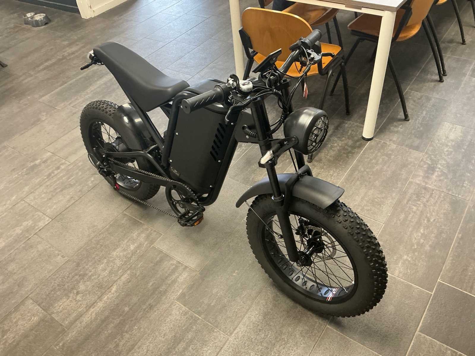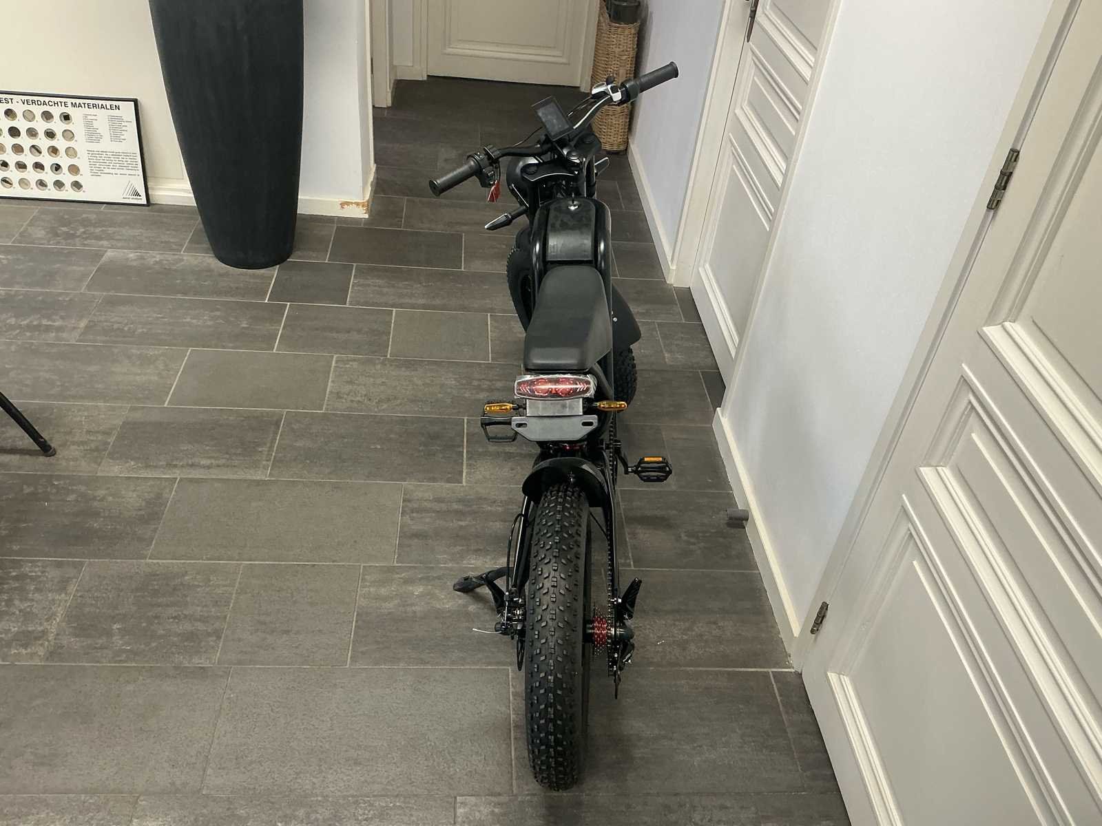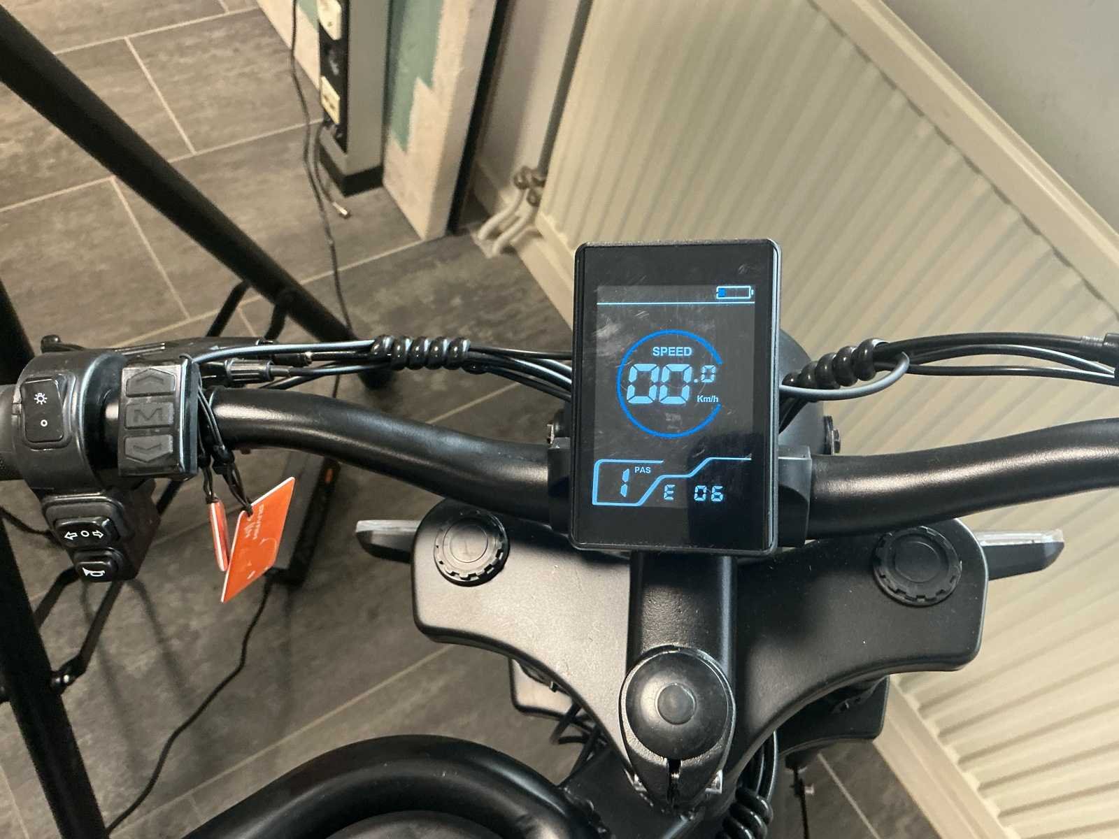 Voorzien van: 5 stuks NIEUW NOOIT GEBRUIKT, Digitaal display. Elektrische Gas Handvat, De TMD01BZ elektrische bromfiets van Tianjin Moyue Electric Vehicle Co. meet 1710×650×1020 mm, weegt 45 kg (max. 85 kg), rijdt 25 km/u, heeft een 400 W SWX-6-400 motor met 280 rpm, 48 V systeemspanning, WZDK4815A controller (14±1 A), 48V 25Ah accu, 20×4.0 banden, een energieverbruik van 1.2 kWh/100 km, een wielbasis van 1140 mm, elektrische aandrijving, kleur zwart. Nee Merk: Adiman Type: SWX-6-400 Snelheid: 25km/h Versnellingen: 7 Accu: true Motor merk: SWX-6-400 Motorcapaciteit: 400W Display: Digitaal Bandenmaat: 20x4.0 Model: TMD01BZ Kleur: Zwart Gewicht: 45kg Lengte: 171cm Hoogte: 102cm Materiaal: Staal