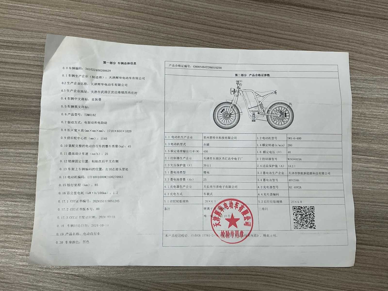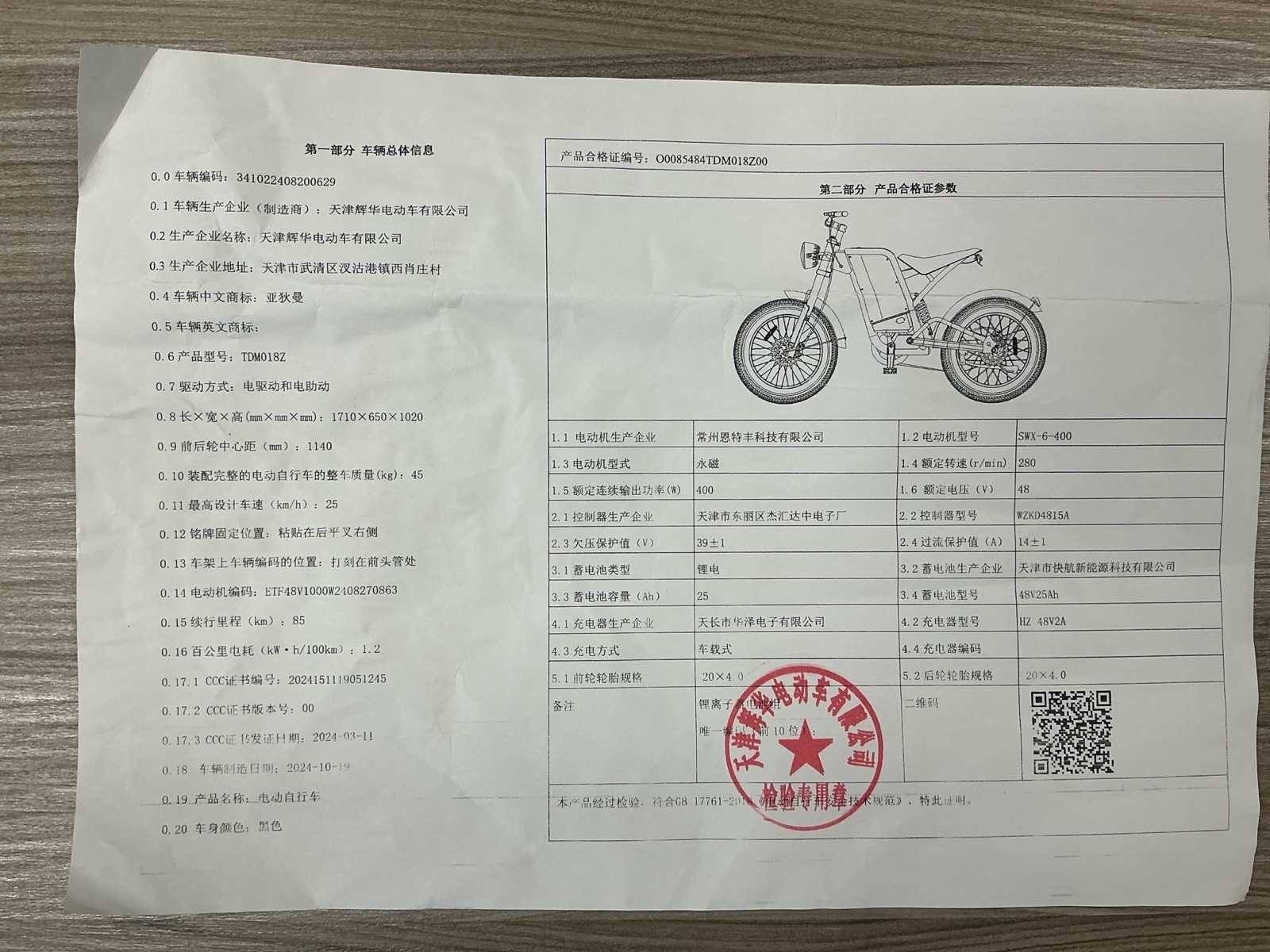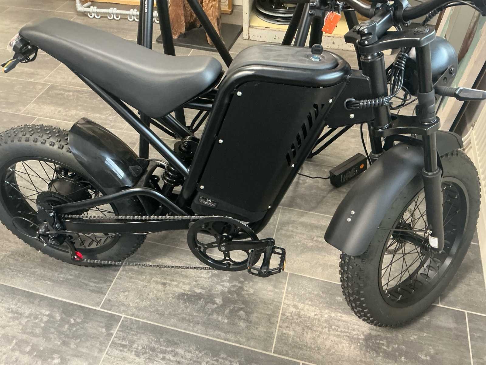 Voorzien van: 5 stuks NIEUW NOOIT GEBRUIKT, Digitaal display. Elektrische Gas Handvat, De TMD01BZ elektrische bromfiets van Tianjin Moyue Electric Vehicle Co. meet 1710×650×1020 mm, weegt 45 kg (max. 85 kg), rijdt 25 km/u, heeft een 400 W SWX-6-400 motor met 280 rpm, 48 V systeemspanning, WZDK4815A controller (14±1 A), 48V 25Ah accu, 20×4.0 banden, een energieverbruik van 1.2 kWh/100 km, een wielbasis van 1140 mm, elektrische aandrijving, kleur zwart. Nee Merk: Adiman Type: SWX-6-400 Snelheid: 25km/h Versnellingen: 7 Accu: true Motor merk: SWX-6-400 Motorcapaciteit: 400W Display: Digitaal Bandenmaat: 20x4.0 Model: TMD01BZ Kleur: Zwart Gewicht: 45kg Lengte: 171cm Hoogte: 102cm Materiaal: Staal