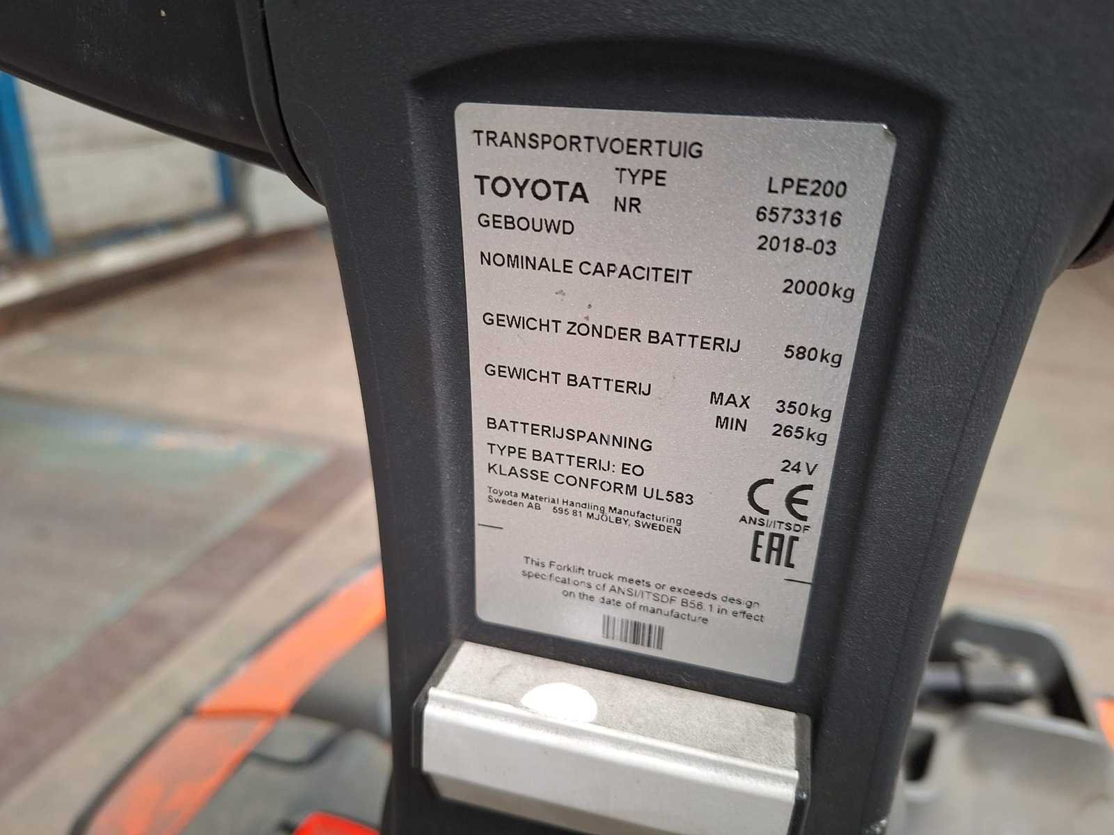 Toyota - 2018 - lpe 200 - elektrische palletwagen