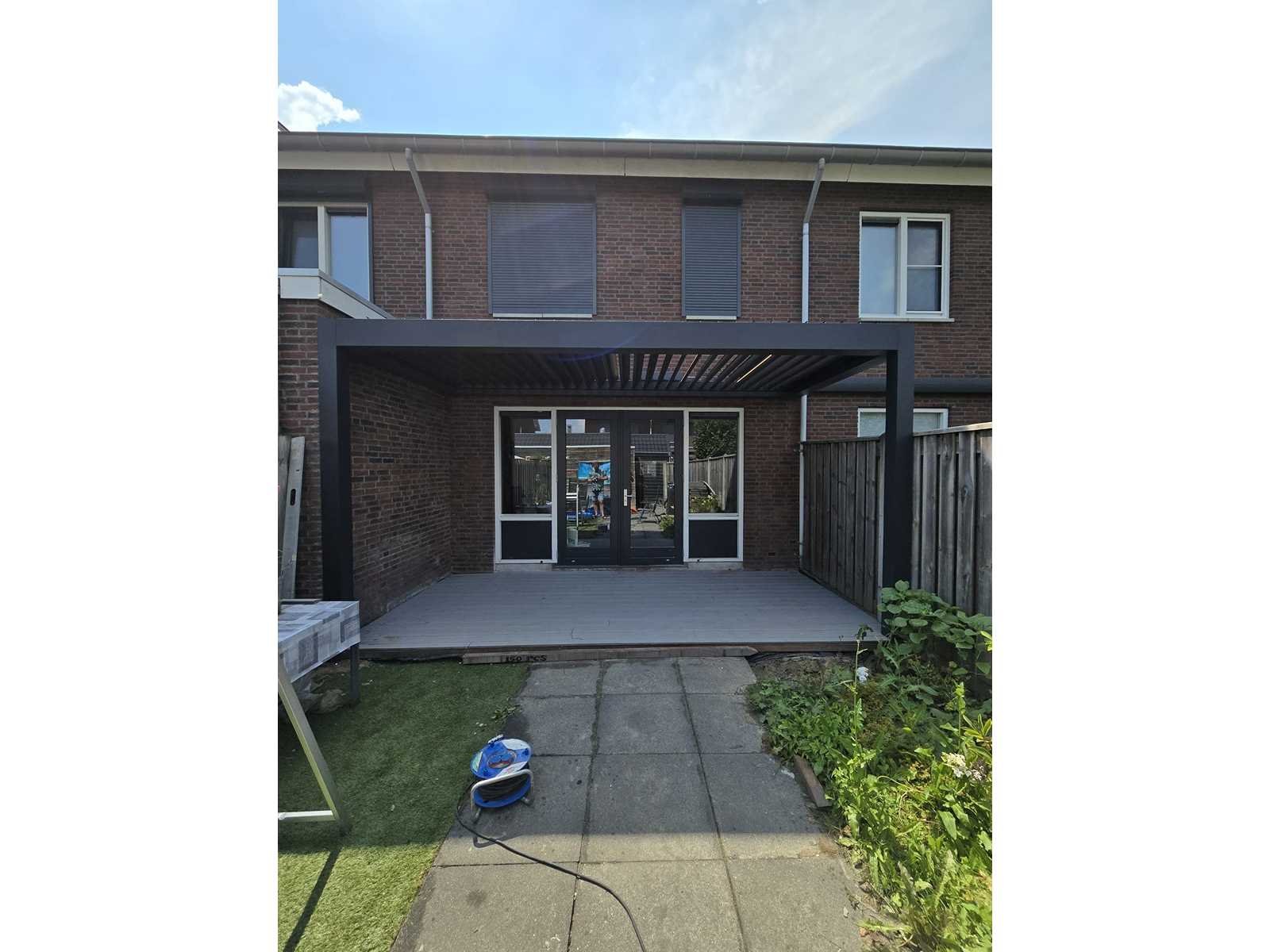 Voorzien van; 1x zon/wind screen elektrisch bediend, waterdicht, led verlichting, elektrisch bedient met afstandsbediening, poedercoat, 7021 antraciet, Staanders: 125mm x 125mm x 2,5mm, Lamelgrootte: 170mm x 35mm x 1,5mm, Balk rondom lamellen: 180mm x 180mm, Sneeuwbelasting: 50-60kg/m2 Nee Merk: Garraf Model: P150 Kleur: Antraciet 7021 Lengte: 400cm Breedte: 400cm Hoogte: 270cm Materiaal: Aluminium/rvs