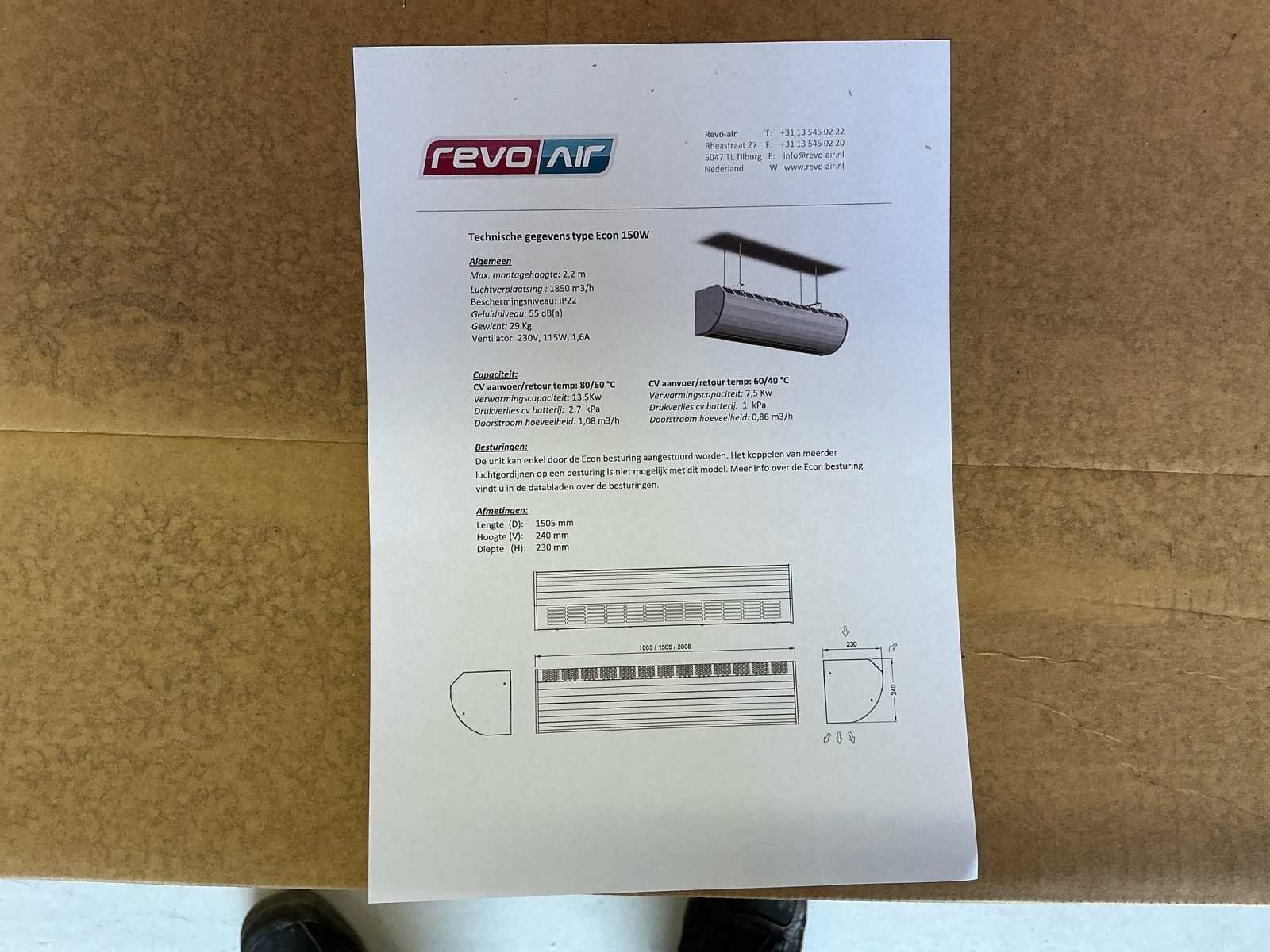 Voorzien van: 1x Luchtgordijn 150cm en luchtgordijn 200cm, 1x aansluiting centrale verwarming systeem Nee Merk: Revo-Air Model: Econ 200W en 150W Product type: Luchtgordijn centrale verwarming Kleur: Wit Gewicht: 37kg Lengte: 200cm