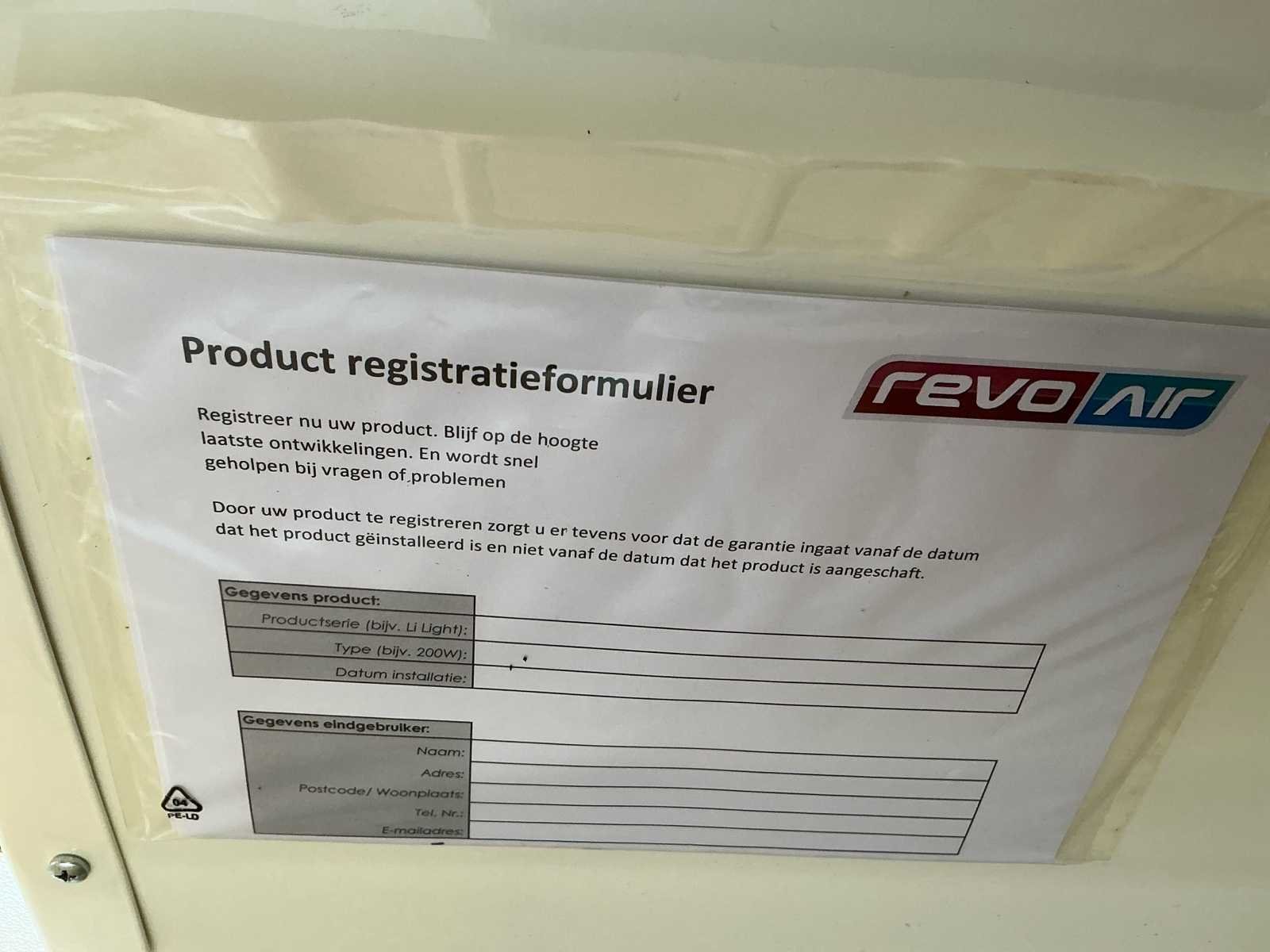 Voorzien van: 1x revo-air Li 100w en 1x Li light 200w, gebruiksaanwijzing, technisch boekje Nee Merk: Revo-Air Model: Li Light 200W en Li 100W Product type: Luchtgordijn Kleur: Wit Gewicht: 128kg Lengte: 200cm Breedte: 33cm Hoogte: 60cm Materiaal: IJzer