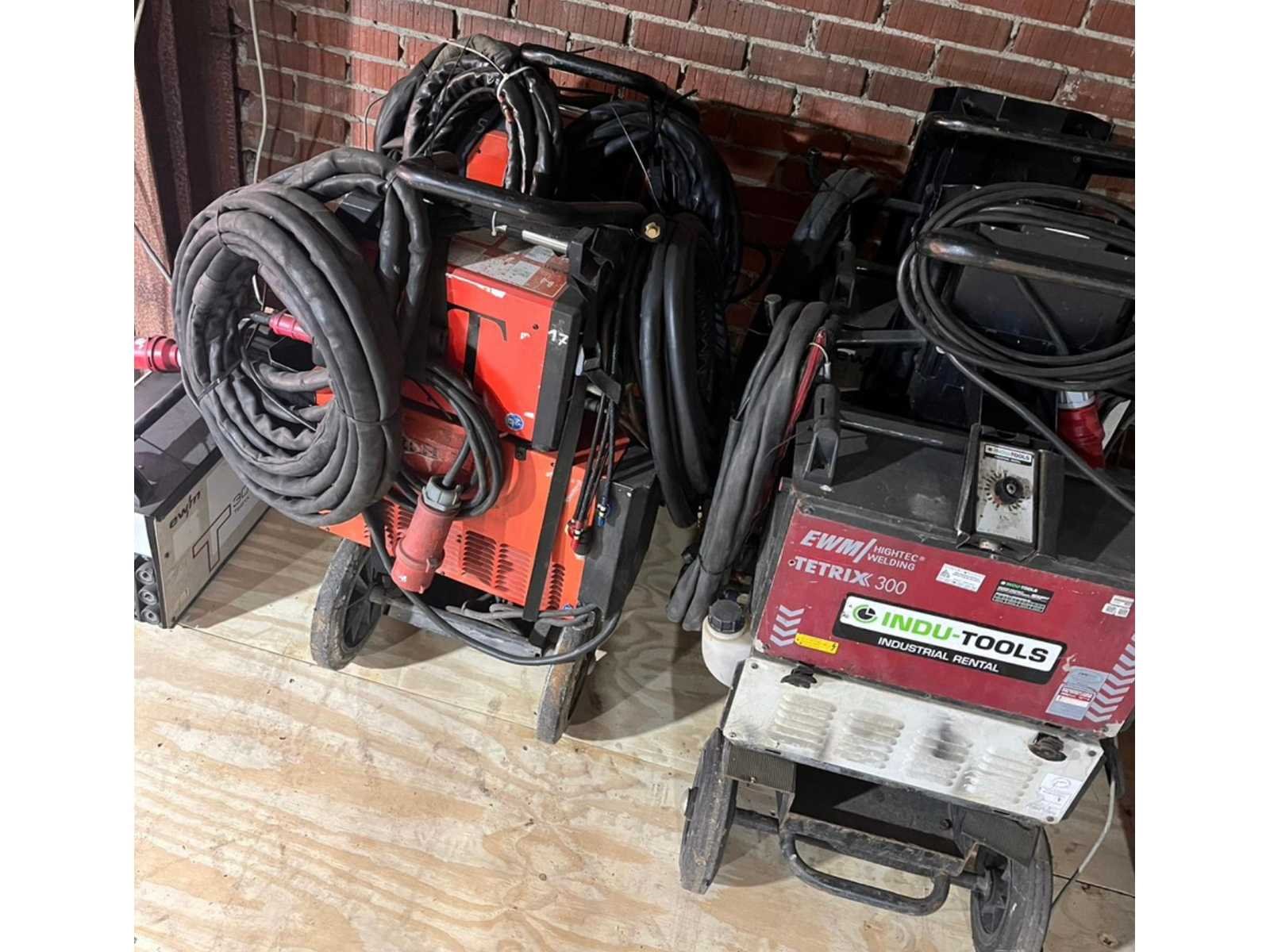 Partij TIG-lasapparatuur Lorch en EWM diverse types <strong>Specificaties:</strong> Aantal: 5 stuks Merk: Lorch en EWM Aansluiting: 400 V Lorch ControlPro T300 DC TIG-lasapparaat Type: ControlPro T300 DC Max. lasvermogen: 220 A Inschakeldduur: 60% Afmetingen (L x B x H): 800 x 600 x 1100 mm Lorch T300 DC TIG-lasapparaat Type: T300 DC Max. lasvermogen: 250 A Inschakeldduur: 60% Afmetingen (L x B x H): 600 x 700 x 1100 mm Digitale uitlezing: ja Watergekoeld: ja EWM Tetrix 300 TIG-lasapparaat Type: Tetrix 300 Capaciteit: 300 A @ 60% inschakeldduur Digitale uitlezing: ja Watergekoeld: ja EWM Tetrix 300 smart TIG-lasapparaat (2x) Type: Tetrix 300 smart Capaciteit: 300 A @ 60% inschakeldduur Digitale uitlezing: ja Watergekoeld: ja <strong>Voorzien van:</strong> Waterkoeling (meerdere machines) Draad afstandsbediening (EWM machines) Transportkarren (EWM machines) Digitale uitlezing (meerdere machines) <strong>Bijzonderheden:</strong> Verkoop betreft een partij van 5 TIG-lasapparaten Inclusief verschillende types en uitvoeringen Technische staat niet nader gespecificeerd Nee Bestaande uit: Diverse las apparaten 1e: EWM T300 2e: 2x EWM Tetrix 300 smart 3e: Lorch Control Pro T300DC 4e: Lorch T300Dc