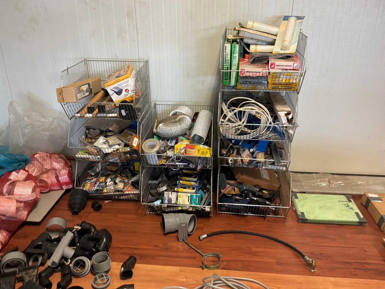 Complete inhoud ruimte ( uitgezonderd chemie) bestaande uit onder andere legbordstellingen, decoratiematwriaal, kantoorinventaris, stoelen, kasten, witgoed, verlichting, tafels, schilderijlijsten, plinten, glas in lood, reclamemateriaal, autostoeltjes, hout, RVS werkblad, reclameborden, Bouwstofzuiger, vloerreinigee, deuren Nee
