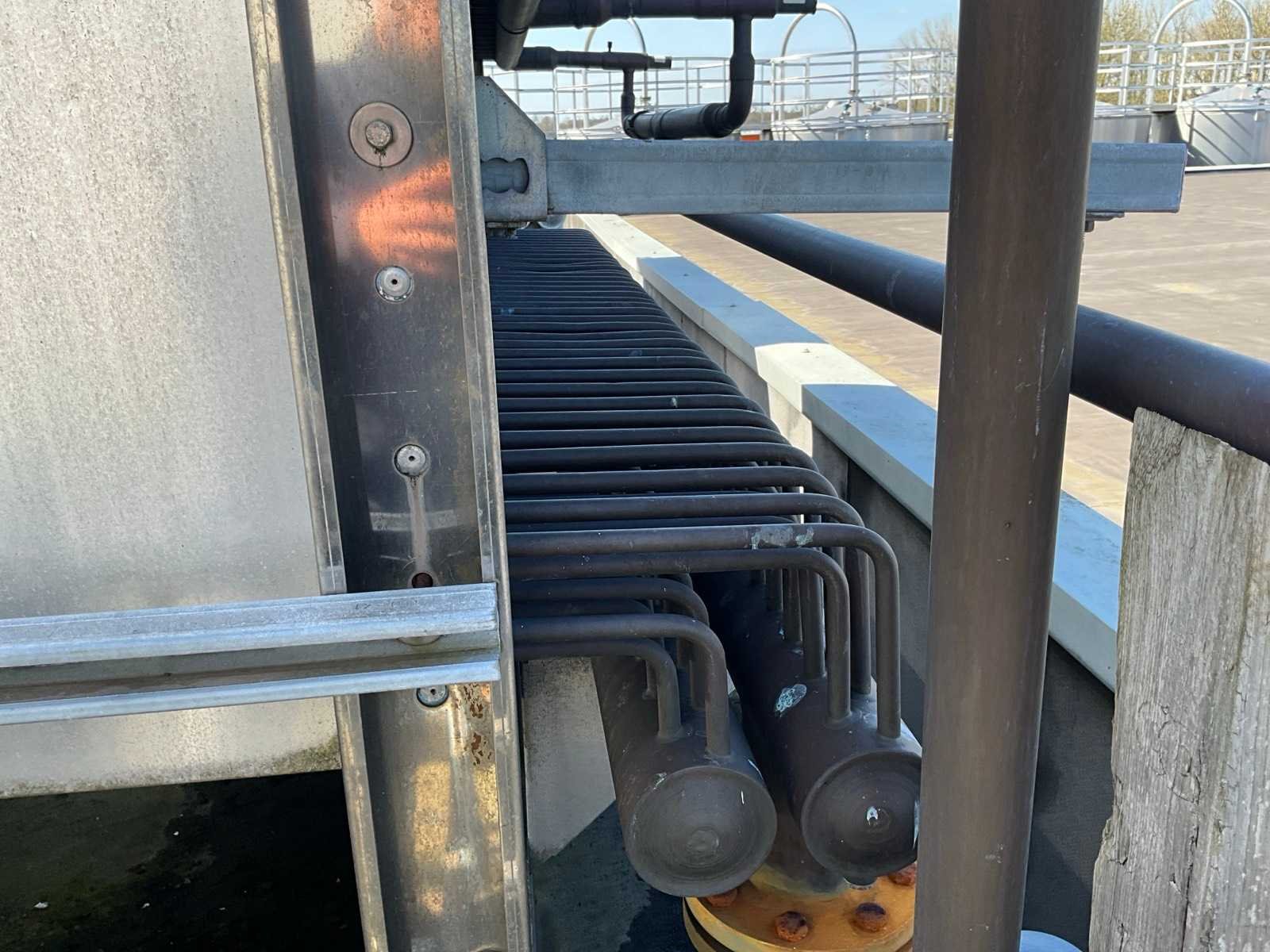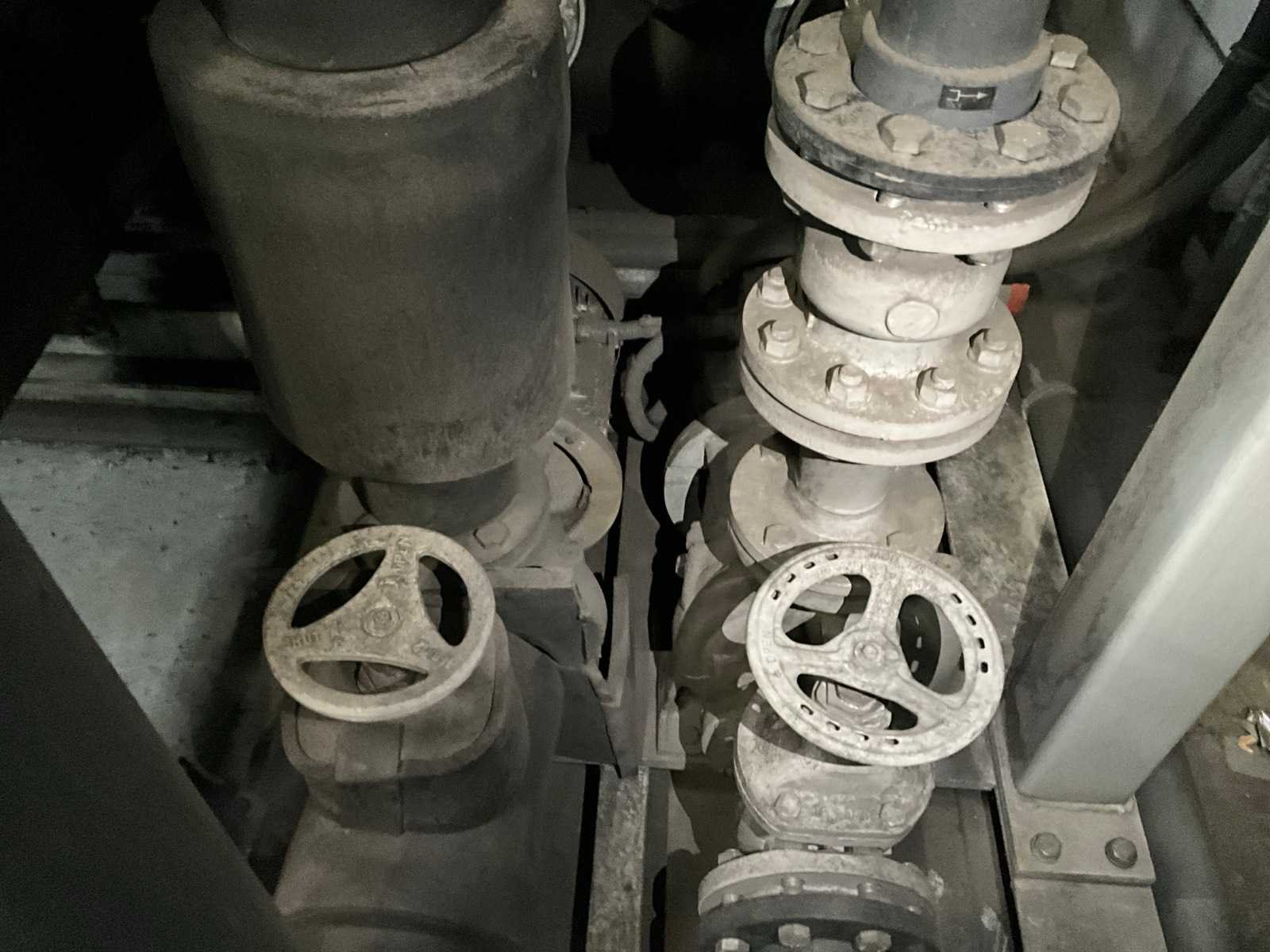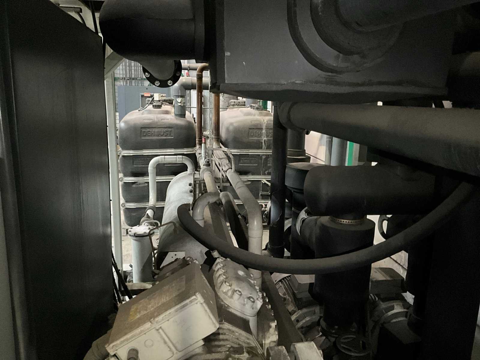 Bestaande uit 1x koelwater pompunit, koelcapaciteit 261 Kw, voorzien van 3x 2000 ltr koelwater tanks, 2x Bitzer koelcompressor, 4x circulatie pomp, besturingskast, vloeroppervlakte 4400x2500 mm, hoogte circa 4100 mm, 1x condensor op het dak, voorzien van 8x ventilator, condensor afmeting (LxWxH) 6500x2500x2200 mm, Let op! afhalen op afspraak, leidingwerk niet inbegrepen, koudemiddel is reeds afgetapt Nee Merk: GWK Aansluiting: 400V Type koudemiddel: R407C Vermogen: 155.2kW Type: EKS 338 + HC Serienummer: 302112-01-01 Bouwjaar: 2003