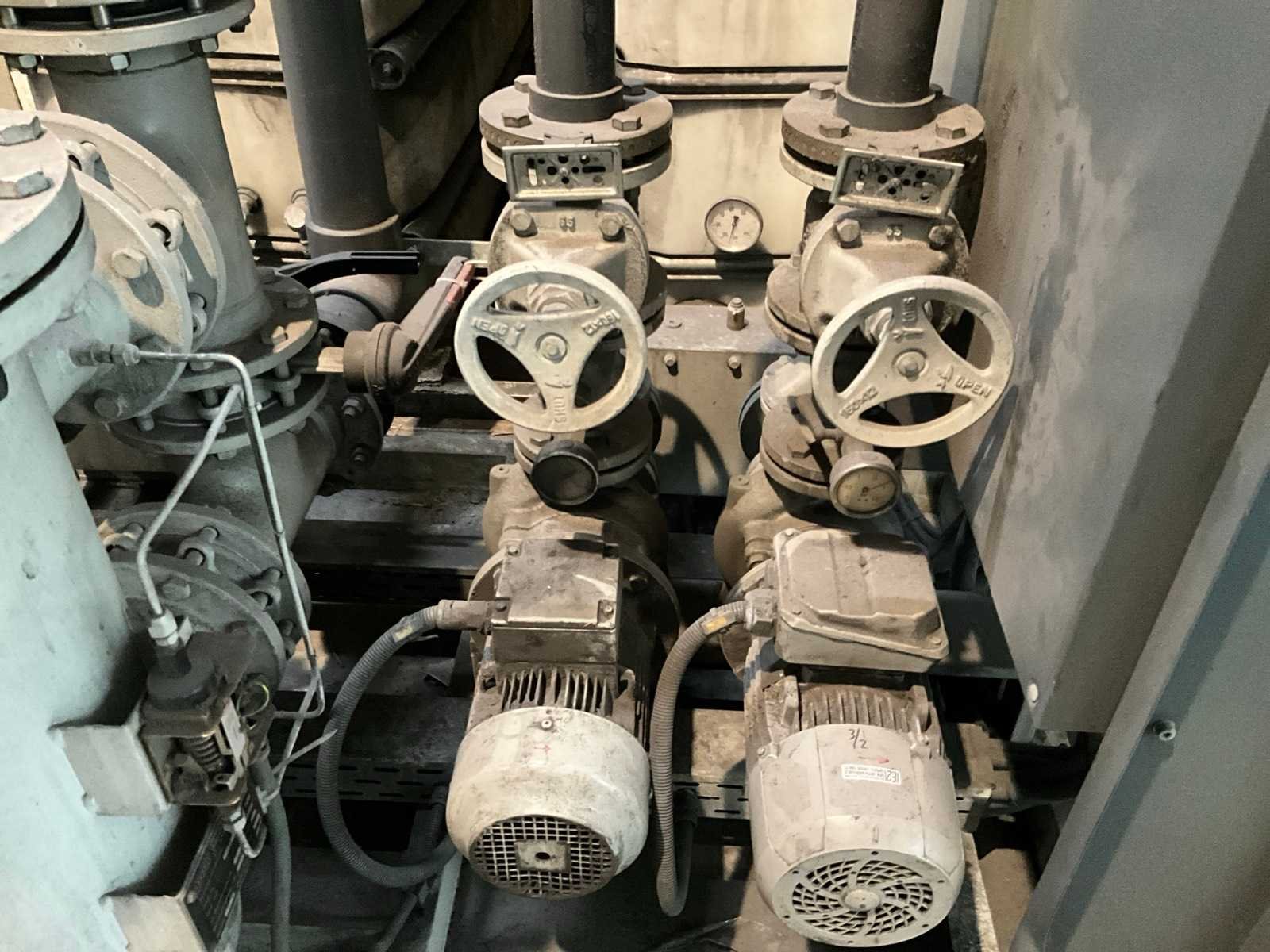 Bestaande uit 1x koelwater pompunit, voorzien van 2x 2000 ltr koelwater tanks, 3x circulatie pomp, besturingskast, vloeroppervlakte 3500x1900 mm, 2x condensor op het dak, voorzien van 6x ventilator per condensor, afmeting per condensor (LxWxH) 8300x1700x1700 mm, Let op! afhalen op afspraak, koudemiddel is afgetapt, leidingwerk niet inbegrepen Nee Merk: GWK Aansluiting: 400V