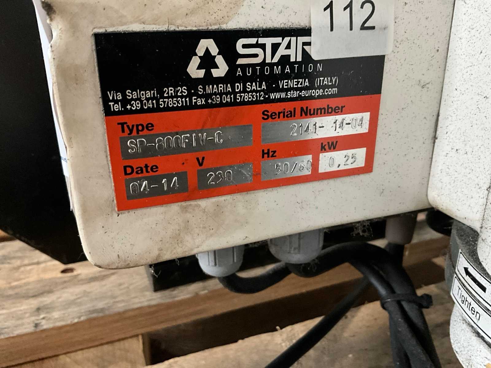 Voorzien van schakelkast en afstandsbediening Nee Merk: Star Type: SP-800F IV C Bouwjaar: 2014 Serienummer: 2142-14-04 en 2141-14-04 Aansluiting: 230V Totale afmeting L: 800mm Totale afmeting Breedte: 300mm Totale afmeting Hoogte: 1500mm