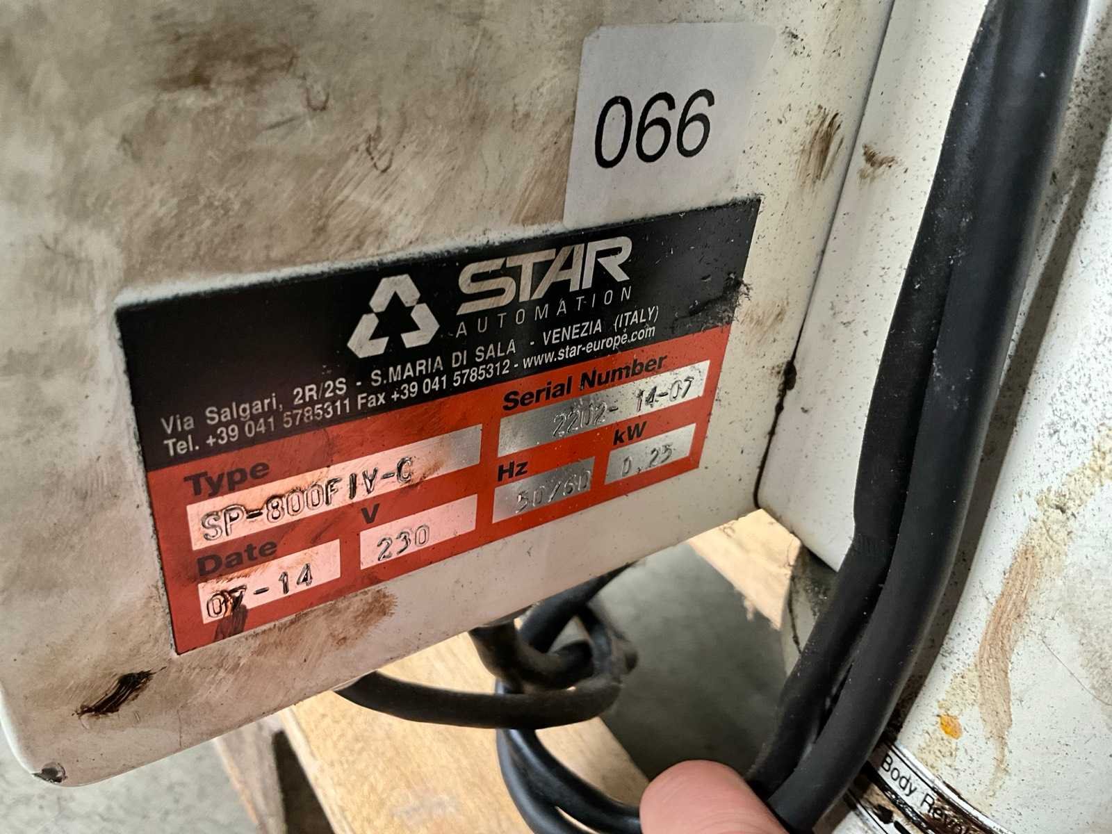 Nee Merk: Star Type: SP-800F IV C Bouwjaar: 2014 Serienummer: 2202-14-07 Aansluiting: 230V Totale afmeting L: 800mm Totale afmeting Breedte: 300mm Totale afmeting Hoogte: 1300mm
