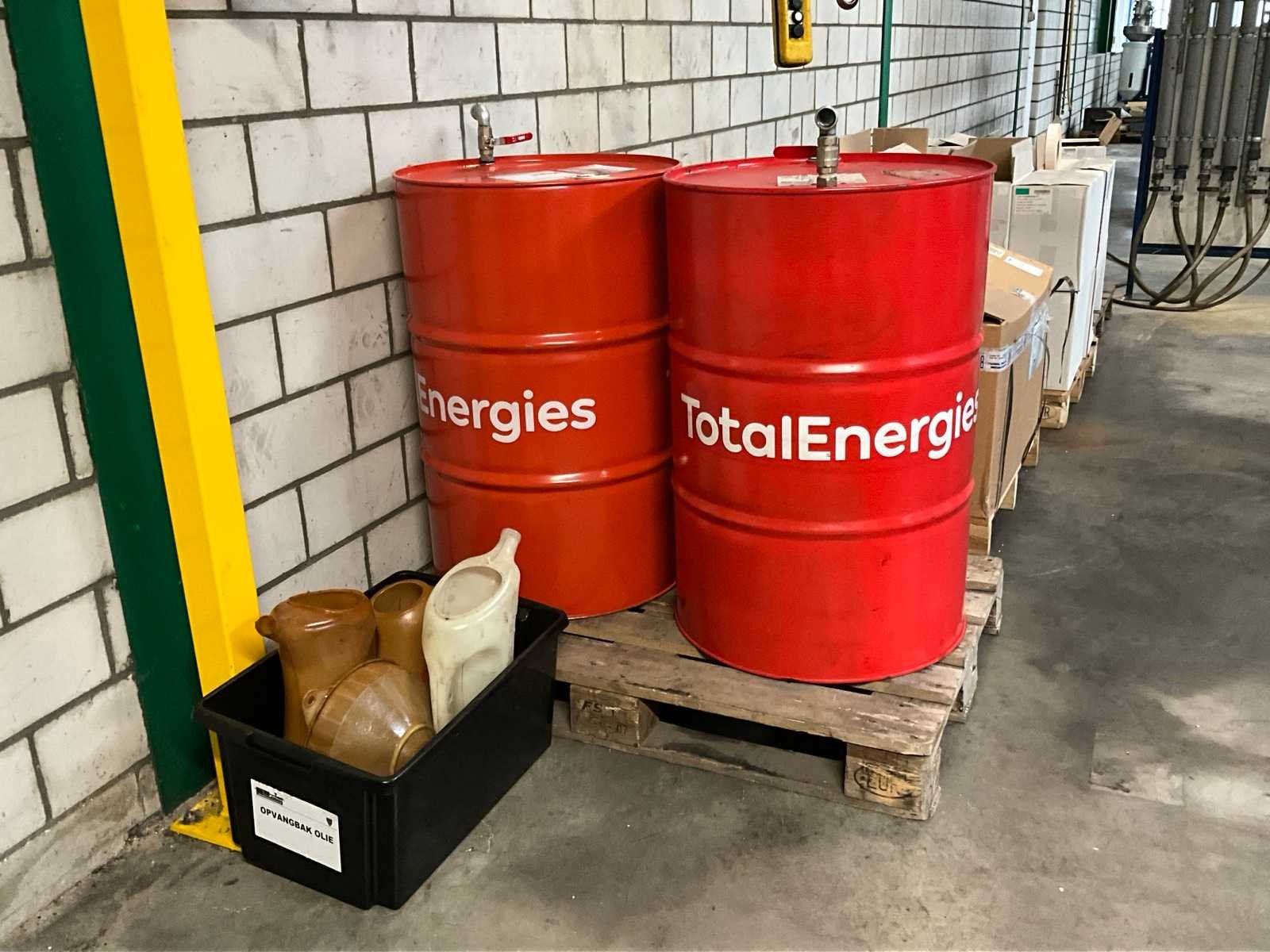 2x aangebroken vat; totaal circa 250 liter; inclusief diverse kunststof olie kannen; Nee Merk: Total Energies Type: Drosera MS 68 / Carter EP 460