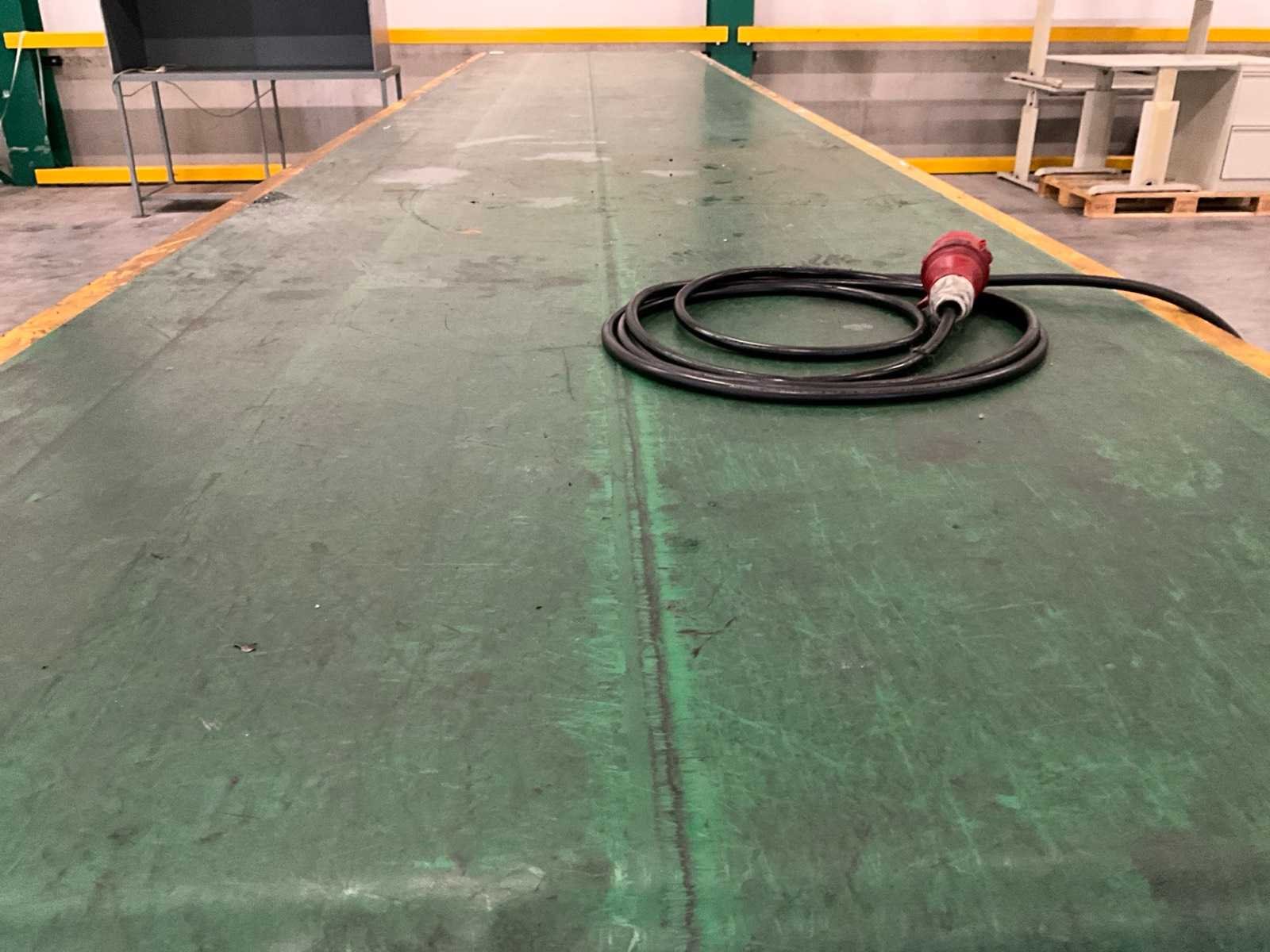 Voorzien van zwenkwielen, hoogte verstelbaar Nee Merk: Schuma Type: EU-ø100 6000/1100/GL Bouwjaar: 2015 Band afm. b: 1100mm Band afm. l: 6000mm Elektrisch aangedreven: true Aansluiting: 400V Totale afmeting Hoogte: 950mm