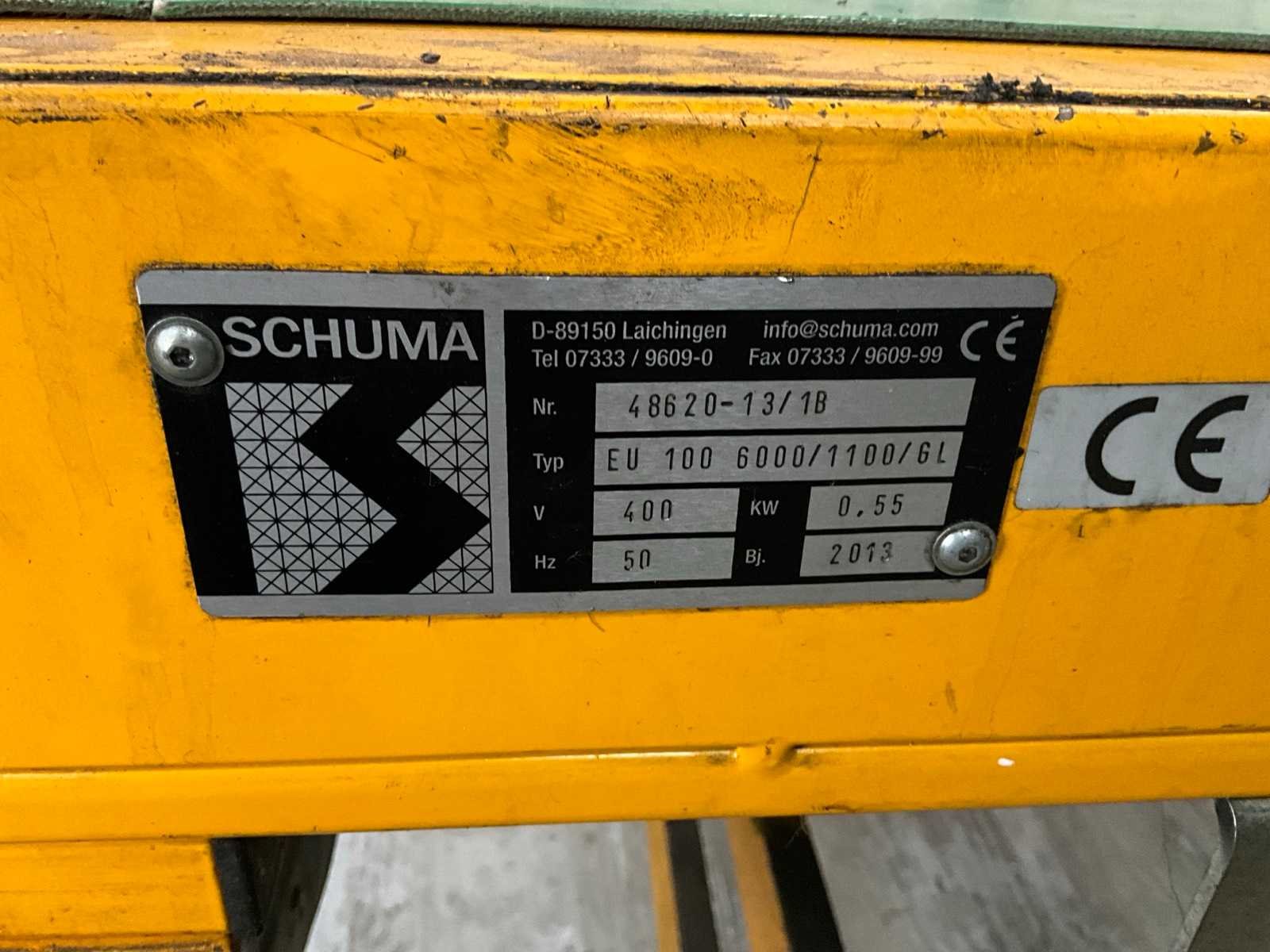 Voorzien van zwenkwielen, hoogte verstelbaar, Nee Merk: Schuma Type: EU 100 6000/1100/GL Bouwjaar: 2013 Band afm. b: 1100mm Band afm. l: 6000mm Elektrisch aangedreven: true Aansluiting: 400V