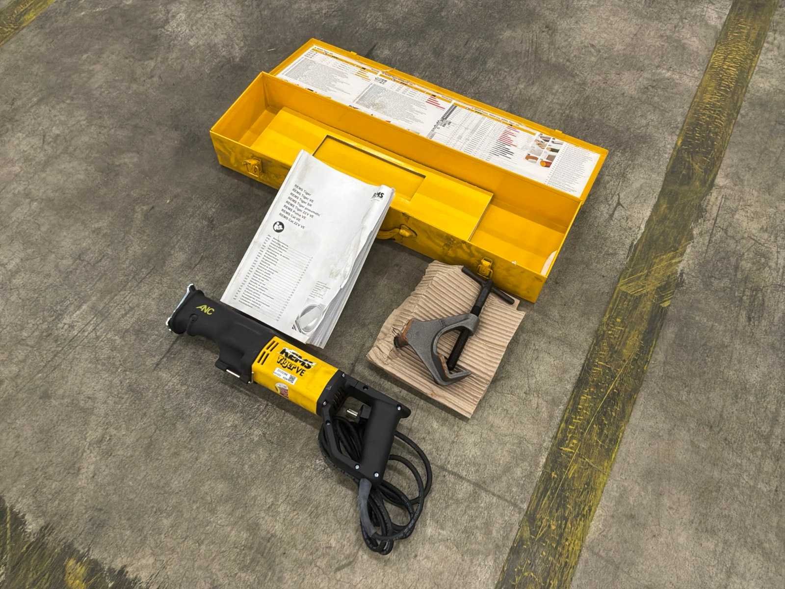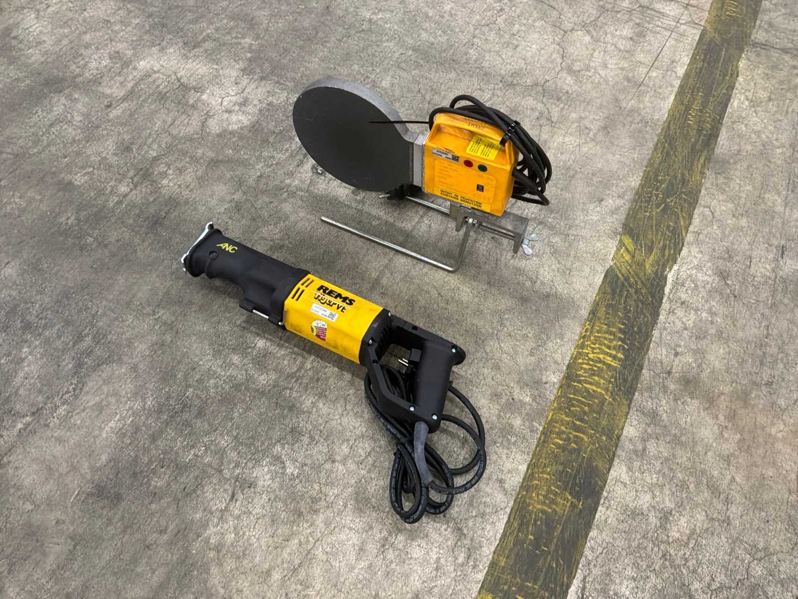 Bestaande uit 1x Geberit Lasspiegel (50Hz,630W), 1x REMS Tiger VE Reciprozaag inclusief bijbehorende koffer. Nee Aansluiting: 230V