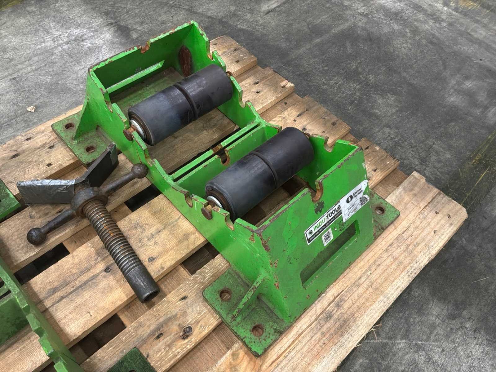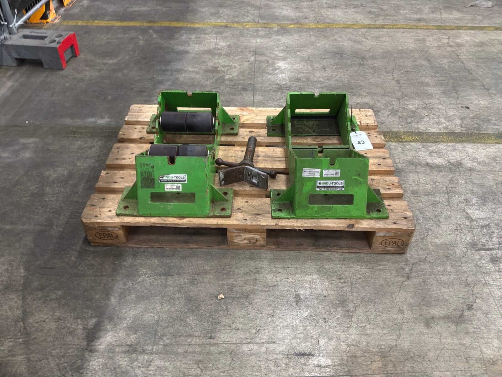 2x pijprollenbokken op en inclusief pallet, 1X incompleet Nee Merk: INDU-TOOLS Totale afmeting L: 420mm Totale afmeting Breedte: 670mm Totale afmeting Hoogte: 20mm