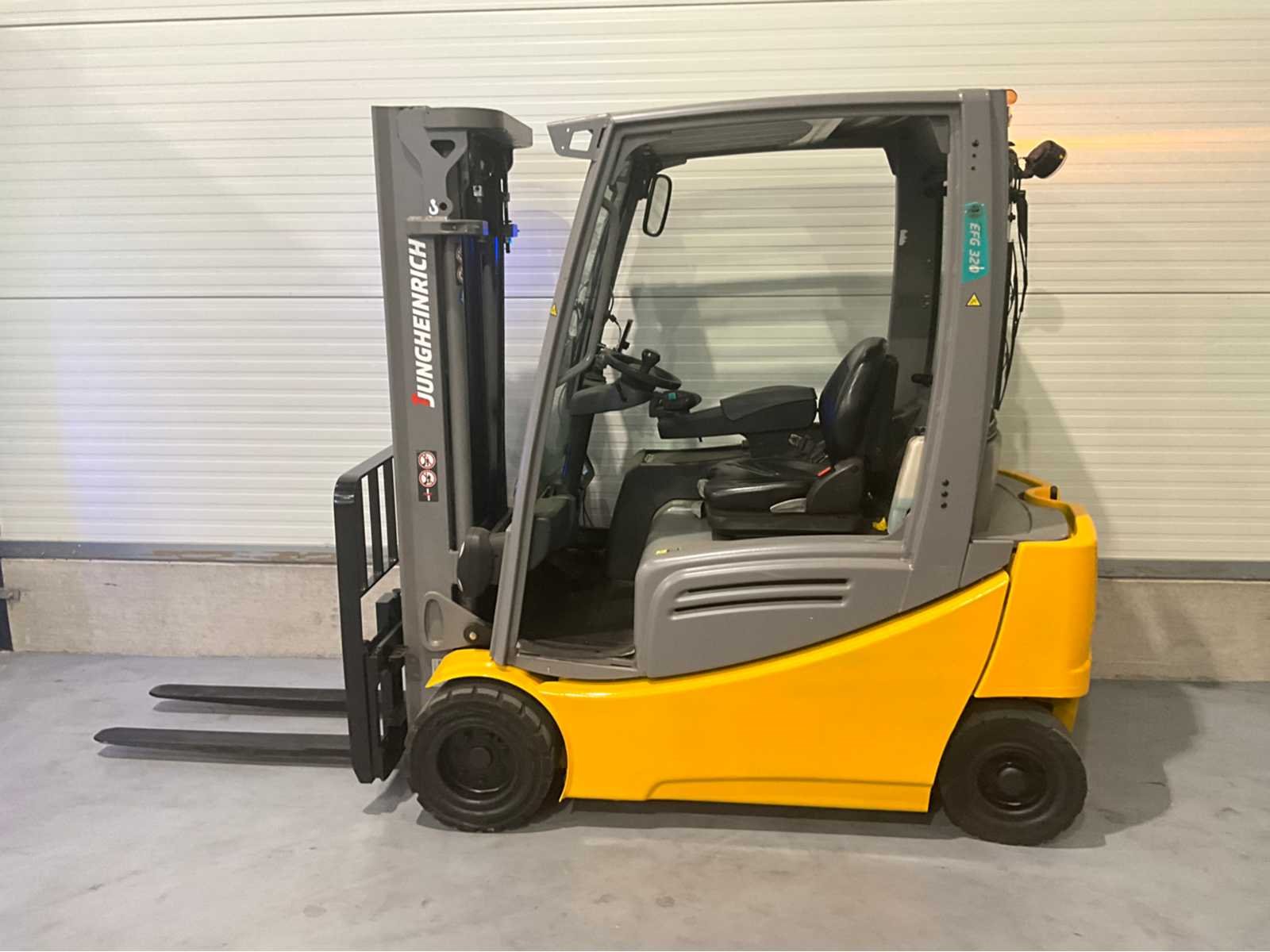 Extra opties : Rondom verlichting , Vingertip bediening , Blue spot , Zwaailamp , Nee Merk: Jungheinrich Type: EFG 320 Bouwjaar: 2019 Serienummer: FN588362 Mast: Triple Soort band: Volrubber banden Aantal wielen: 4 Afgelezen urenstand: 4900 Free-lift: true Side-shift: true Triple mast: true Eigen gewicht: 3626kg Hefvermogen: 2000kg Hefhoogte: 4620mm Totale afmeting L: 3200mm Totale afmeting Breedte: 1100mm Totale afmeting Hoogte: 2060mm