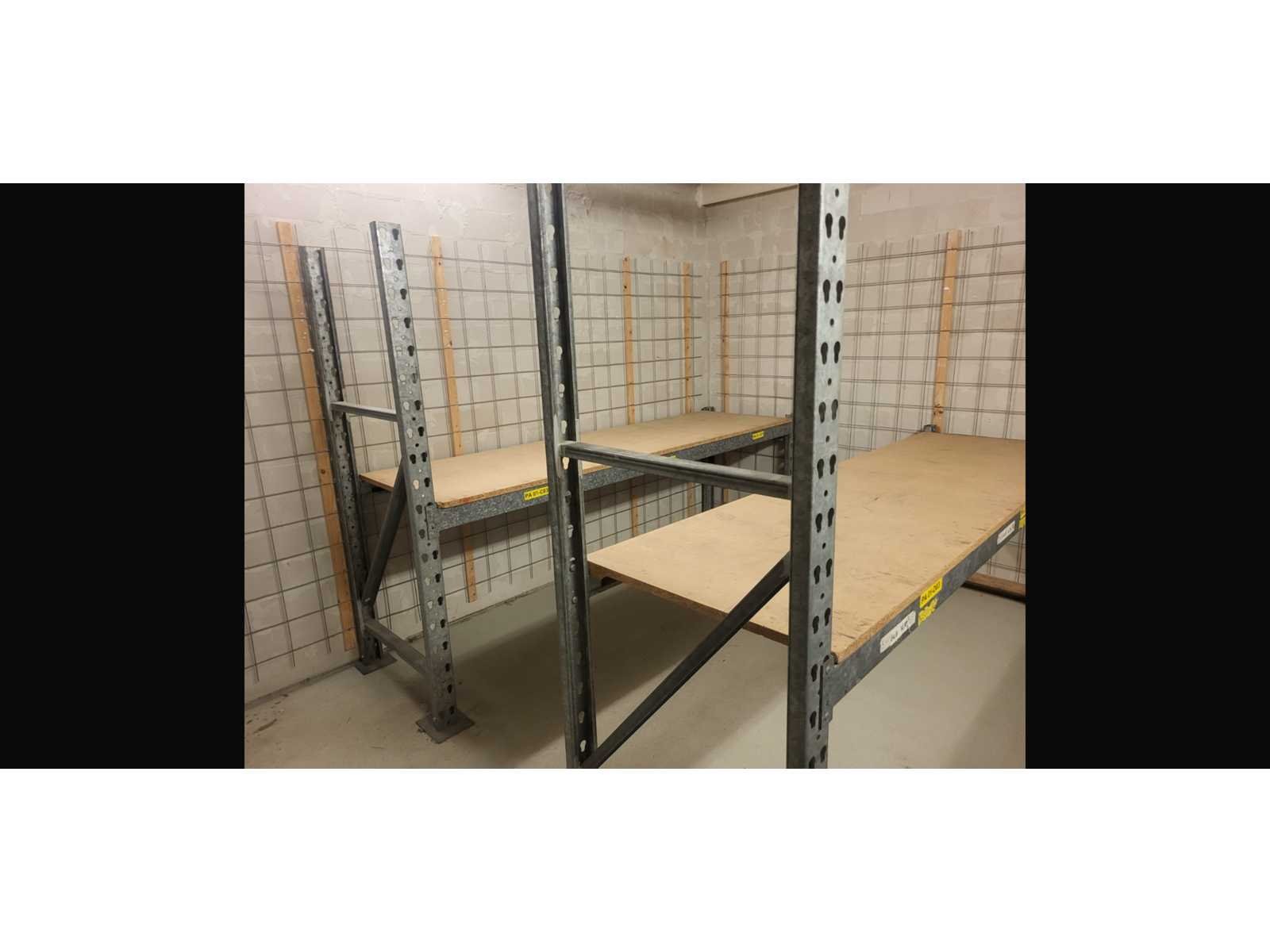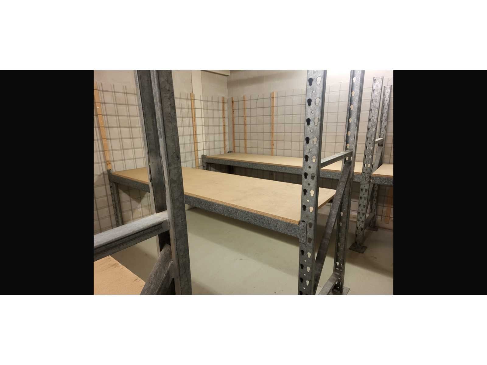 Stalen magazijn stelling met houten legborden, lengte circa 15 meter totaal Nee Breedte: 80cm