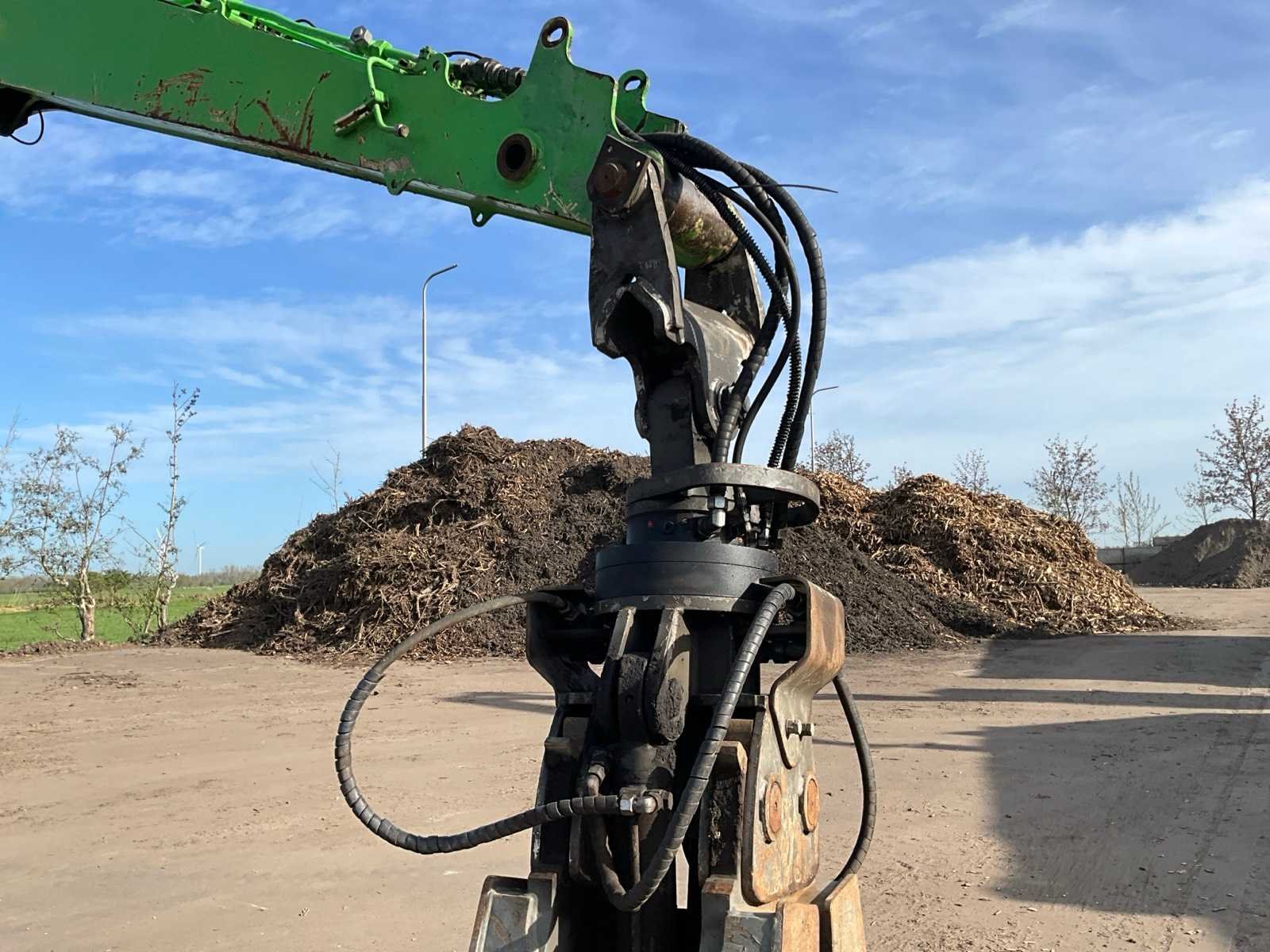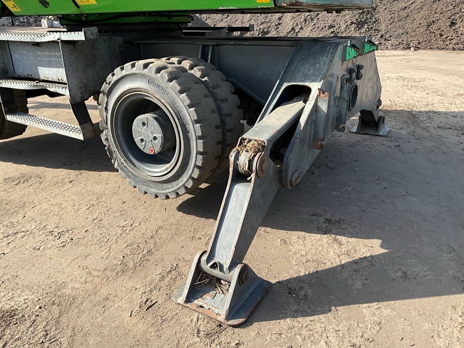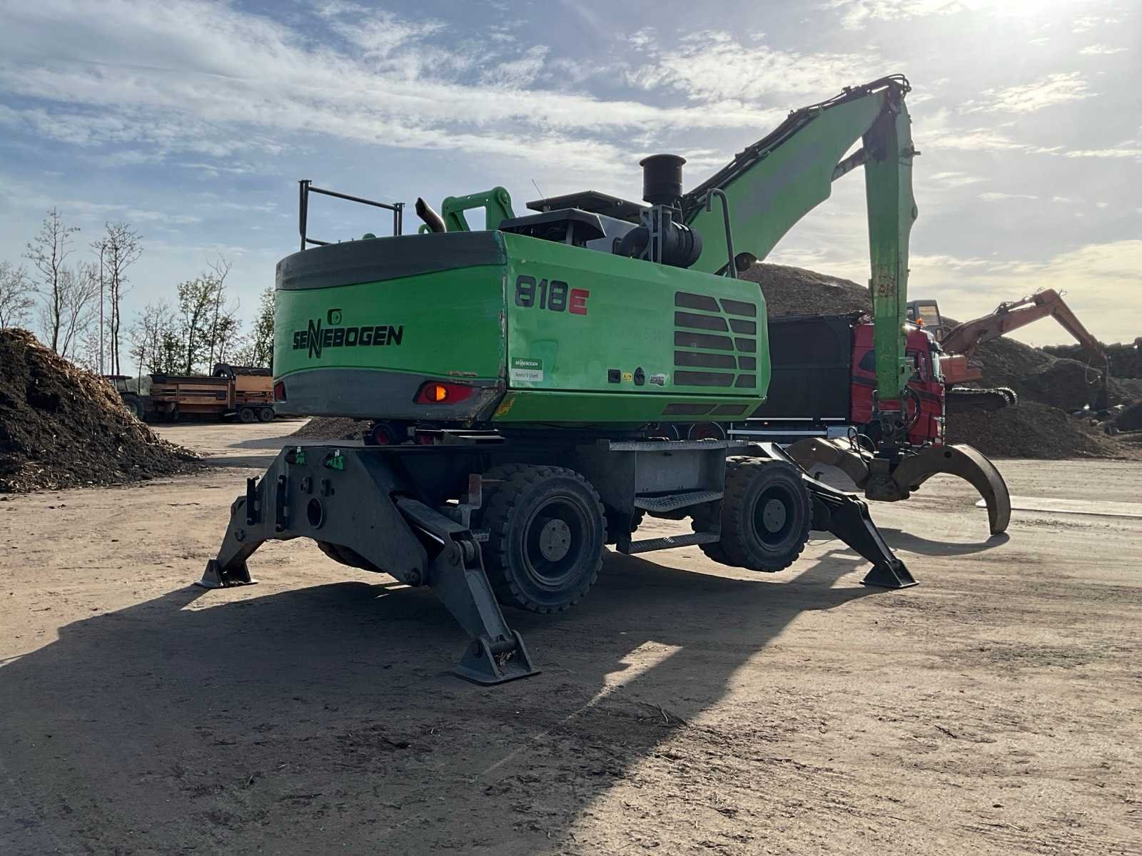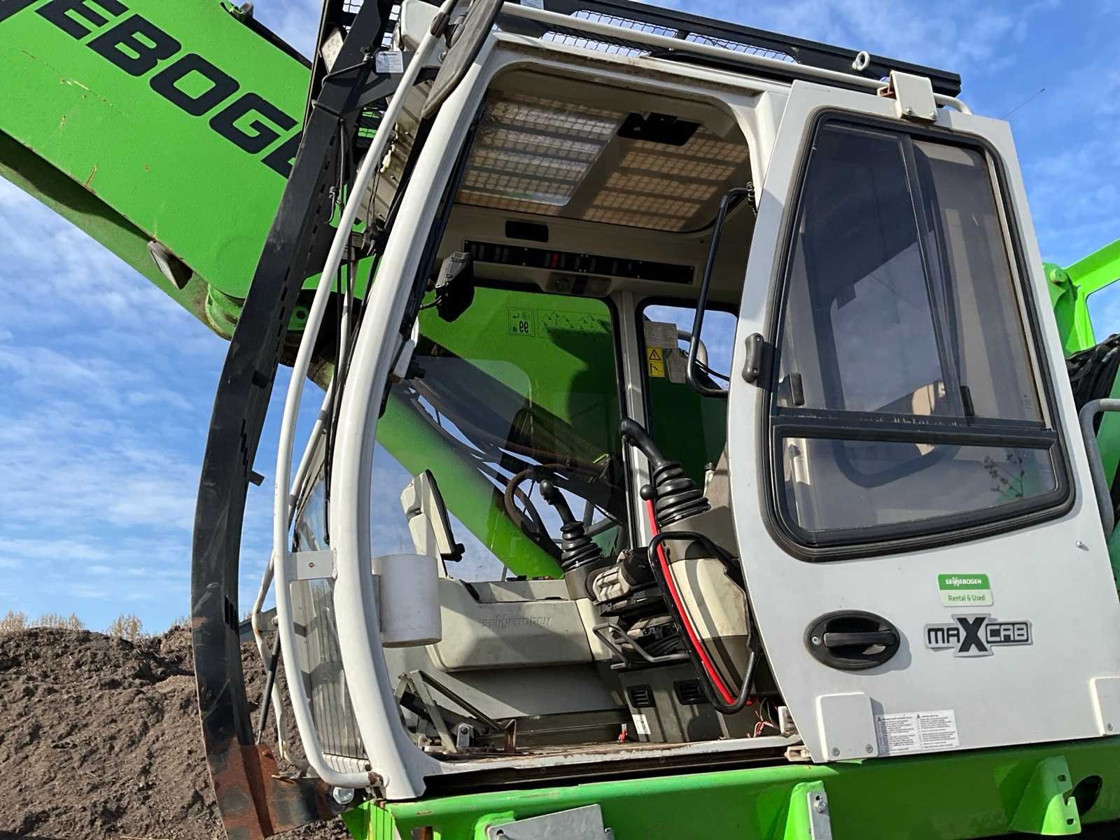 Voorzien van stempels, hydraulisch hefbare cabine, massief rubberen banden, cabine bescherming, extra functies, werkverlichting, automatische vetsmering, bomengrijper, maximale spreiding grijper 2860 mm, rotator, Nee Merk: Sennebogen Type: 818 Bouwjaar: 2015 Serienummer: 818.0.2100 Motorvermogen (kW): 97kW Brandstof: Diesel Gieklengte: 9400mm Cabine: true Afgelezen urenstand: 17295 Totale afmeting Breedte: 2800mm Totale afmeting Hoogte: 3400mm