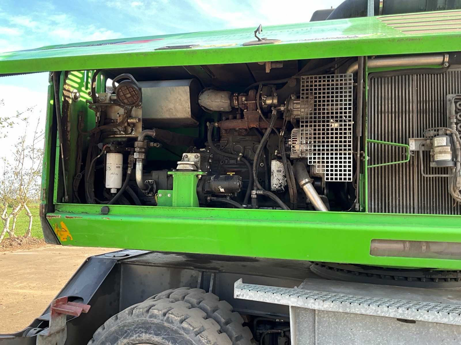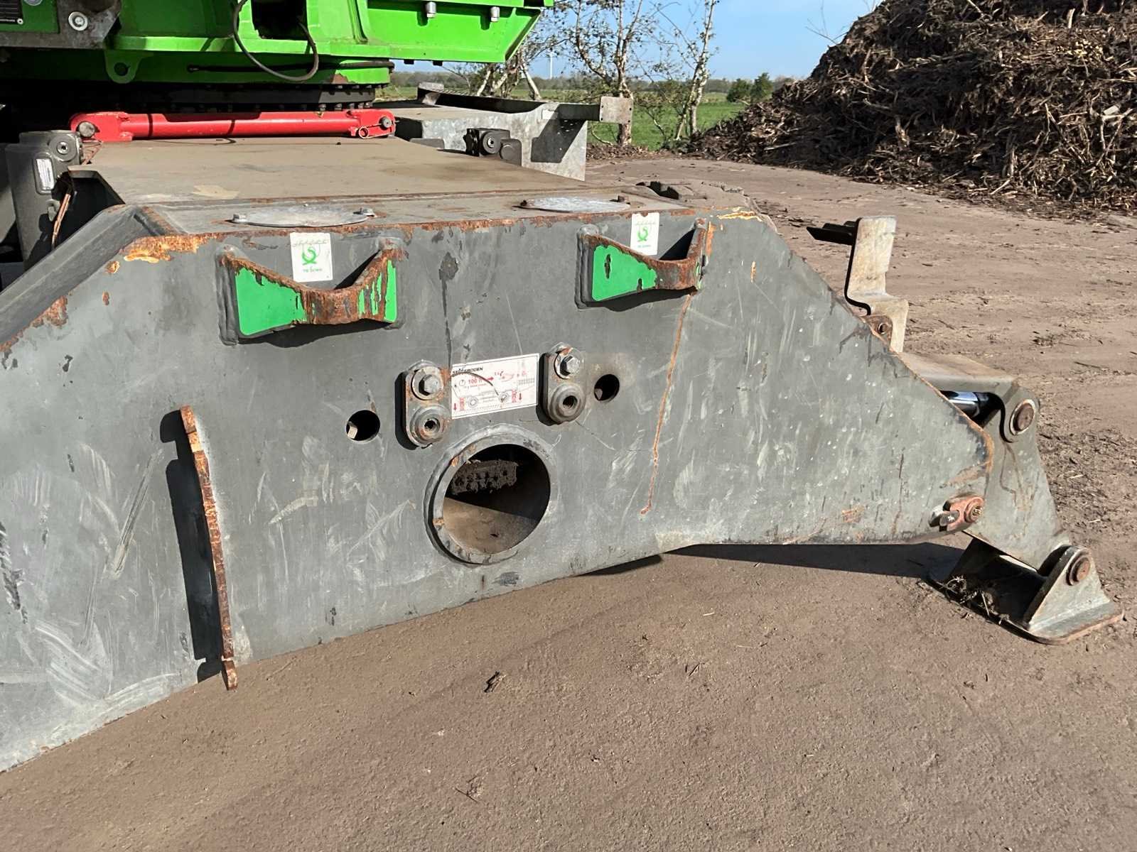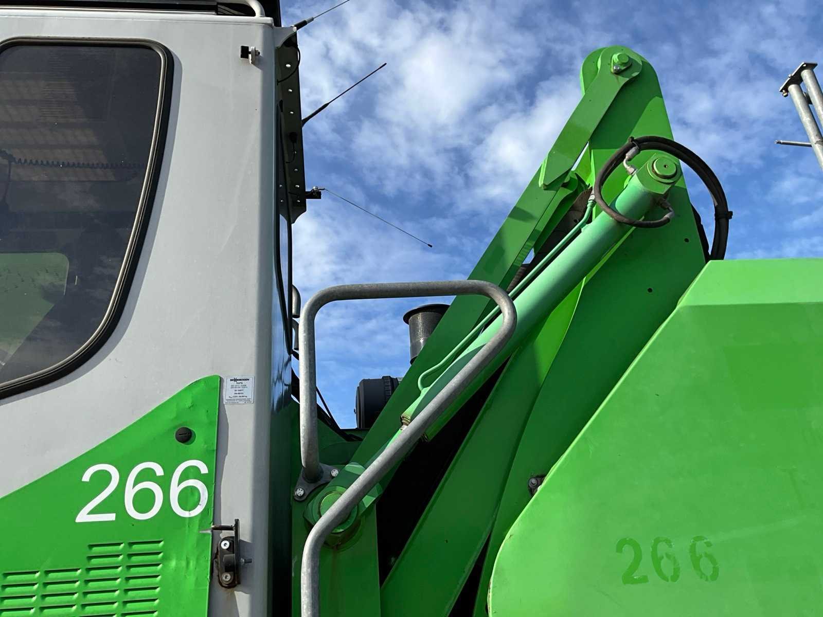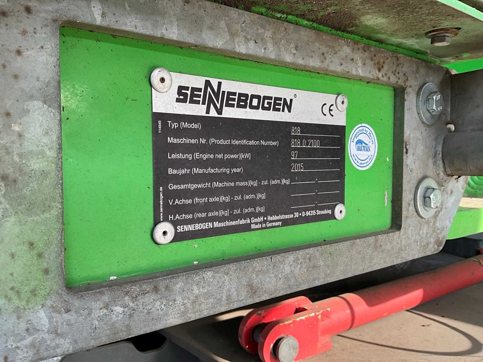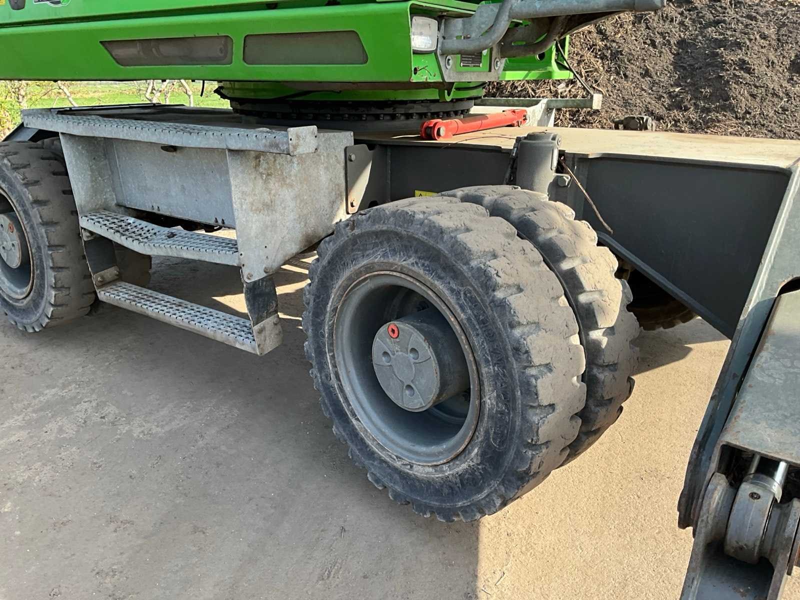 Voorzien van stempels, hydraulisch hefbare cabine, massief rubberen banden, cabine bescherming, extra functies, werkverlichting, automatische vetsmering, bomengrijper, maximale spreiding grijper 2860 mm, rotator, Nee Merk: Sennebogen Type: 818 Bouwjaar: 2015 Serienummer: 818.0.2100 Motorvermogen (kW): 97kW Brandstof: Diesel Gieklengte: 9400mm Cabine: true Afgelezen urenstand: 17295 Totale afmeting Breedte: 2800mm Totale afmeting Hoogte: 3400mm