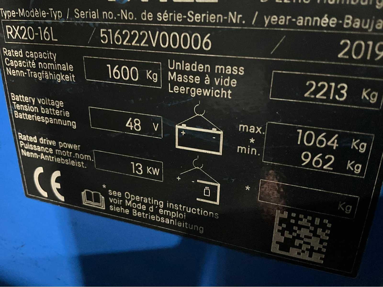 Extra opties : Led verlichting , blue spot , Kaup lepelversteller , in bedrijfskleur blauw gespoten Nee Merk: Still Type: RX20-16 Bouwjaar: 2019 Serienummer: 516222V00006 Mast: Triple Soort band: Volrubber banden Aantal wielen: 3 Free-lift: true Side-shift: true Hydraulisch verstelbare lepels: true Triple mast: true Eigen gewicht: 3277kg Hefvermogen: 1600kg Hefhoogte: 5200mm Vol rubber banden: true Totale afmeting L: 3500mm Totale afmeting Breedte: 1170mm Totale afmeting Hoogte: 2260mm