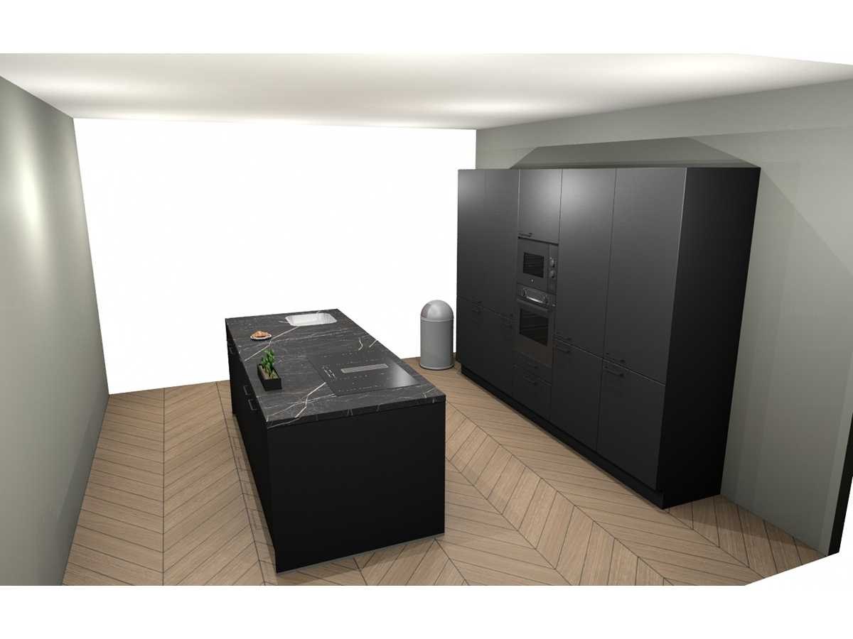 Bora Puru2 inductie afzuiging 76cm, 4-kookzones. Let op! Staat niet opgesteld in de showroom, enkel via 3D tekening; wordt geleverd ongebruikt in doos. Nee Merk: Häcker Concept130 Model: Topsoft zwart mat Type keukenopstelling: Eiland opstelling Lengte: 300cm Breedte: 60cm Hoogte: 216cm Gootsteen: Reginox Colorado RVS spoelbak Werkblad hoogte: 91cm Aanrechtblad: Kunststof marmer antraciet mat 3.8cm Magnetron: Bosch BFL423MB1F, nis 38cm, zwart kleur Koelkast: Bosch KIV865SE0, Nis 178cm, sleepdeur systeem Softclose: true Oven: Bosch HBA4340B3, nis 60cm, zwart kleur, hetelucht inbouwoven Vaatwasser: Bosch SMV4HU801E, 60cm volledig geïntegreerd Lengte kookeiland: 244cm Breedte kookeiland: 100cm Hoogte kookeiland: 91cm Plintkleur: mat zwart Hoofdkleur: TOP SOFT zwart direktlak mat Style: modern Kleur: zwart mat lak