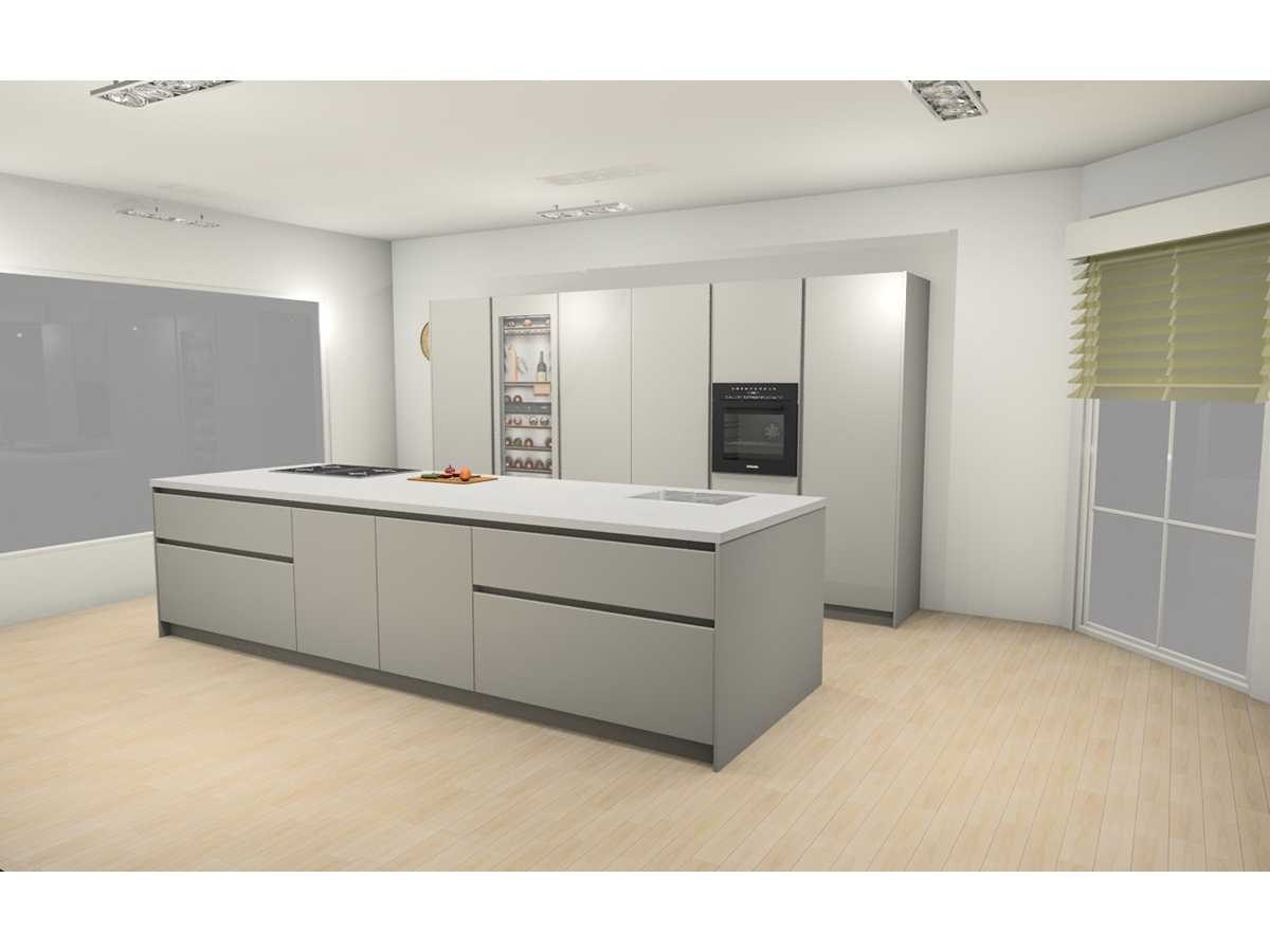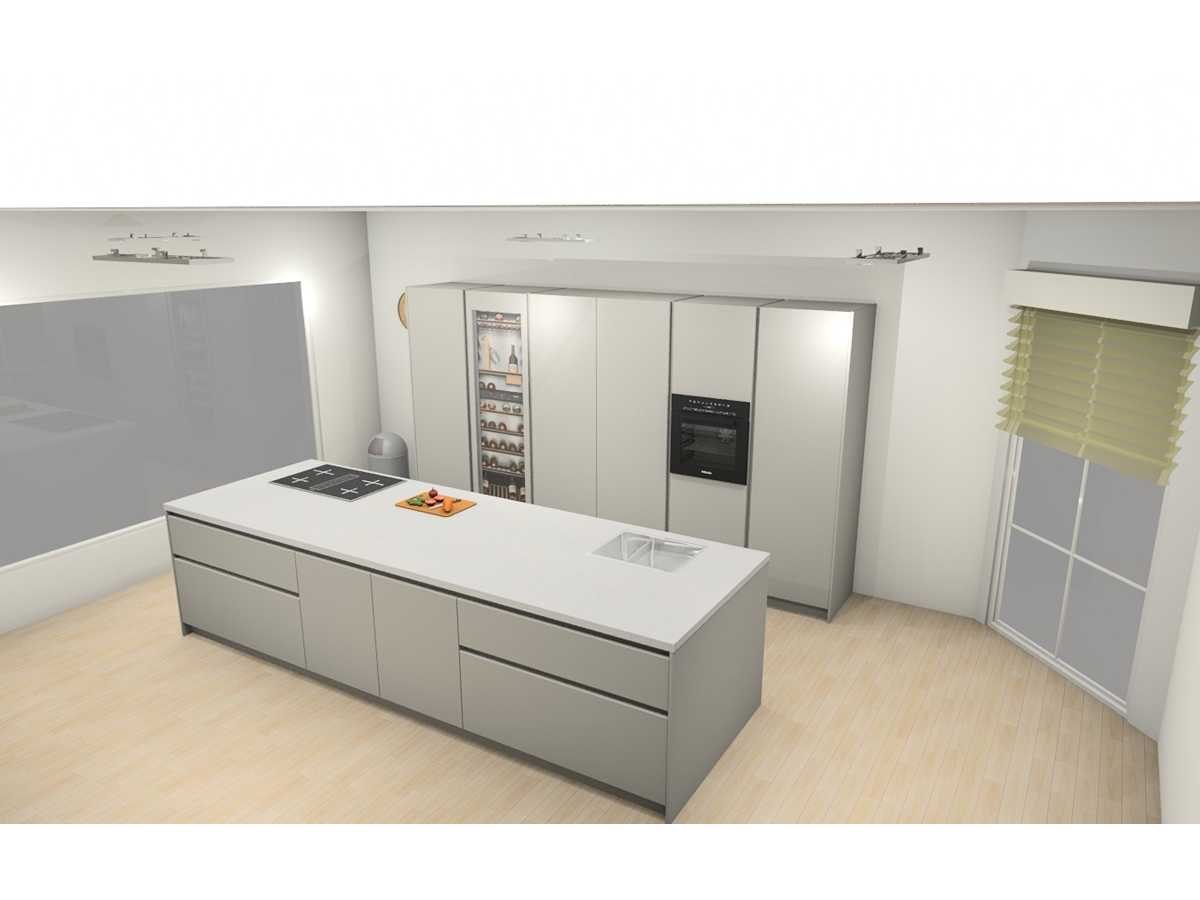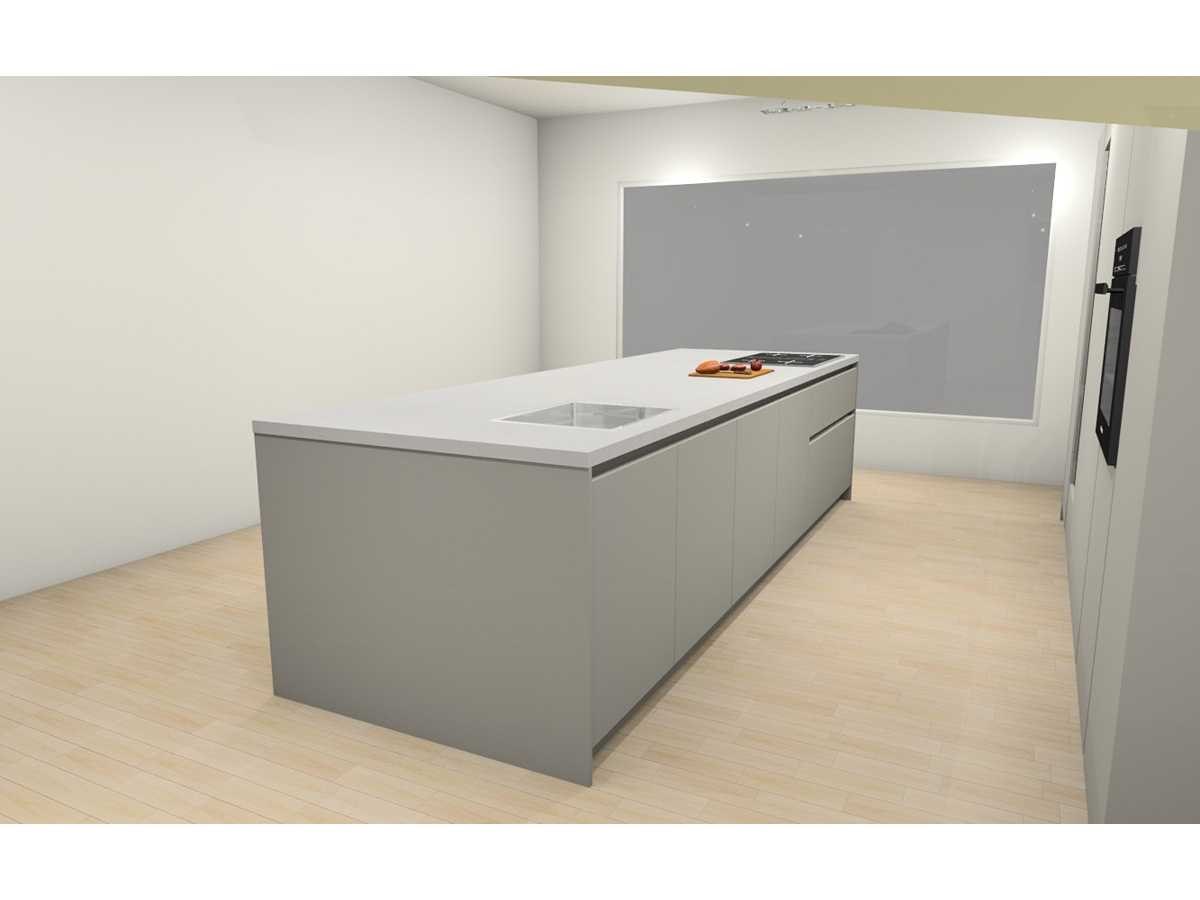 Miele KWT 6722 iS-1 EU1, wijnklimaatkast, 177cm. 259liter, Miele KMDA 7473 FR-U Silence RVS BNE, werkblad afzuiging, inductie, 4 kookzones, 80cm. Opbouwmodel Let op! Werkblad is van Kemie Venturo Gold glans, cosmostone, 4cm. Heeft naad in het midden. Let op! Keuken staat niet opgesteld, enkel 3D tekening en wordt geleverd ongebruikt in doos. Let op! Aanrecht blad is zwaar, tijdens afhaal dag zorgvuldig meenemen en neem extra man kracht mee! Nee Merk: Duitse Keuken Model: Kasjmier mat lak Type keukenopstelling: Eiland met hoge kasten Lengte: 375cm Breedte: 60cm Hoogte: 214cm Gootsteen: Reginox Houston RVS vlak inbouw Aanrechtblad: Kemie Venturo Gold glans, cosmostone, 4cm Koelkast: Miele K7715E, koeler 178cm, Softclose: true Oven: DGC 7250 OBSW BN, Stoomoven, 60cm Vaatwasser: Miele G 5651 SCVi Active, volledig geintegreerd Lengte kookeiland: 364cm Breedte kookeiland: 120cm Hoogte kookeiland: 93,5cm Plintkleur: Kasjmier mat Hoofdkleur: Kasjmier mat lak Style: Modern greeploos Kleur: Kasjmier mat lak