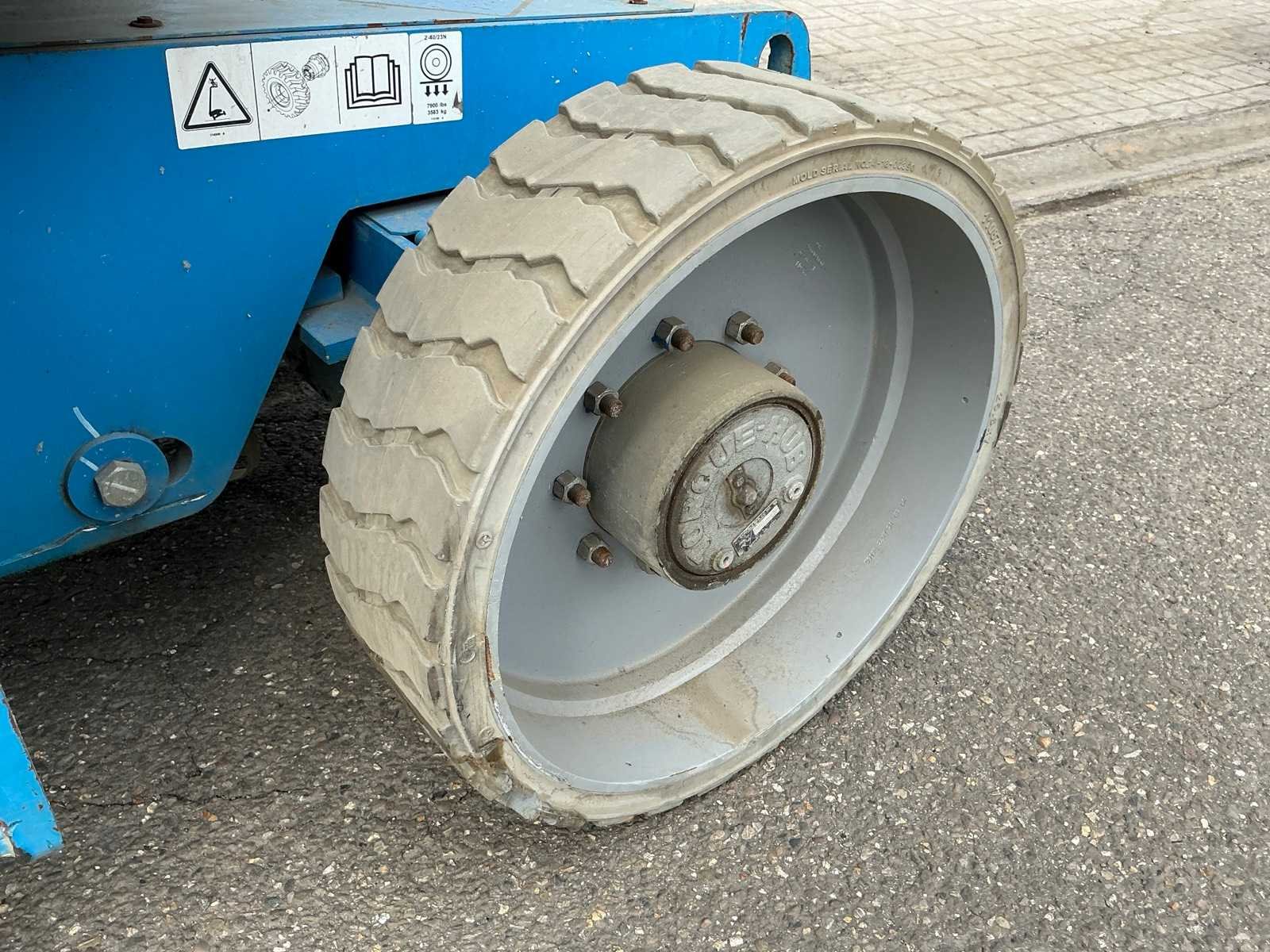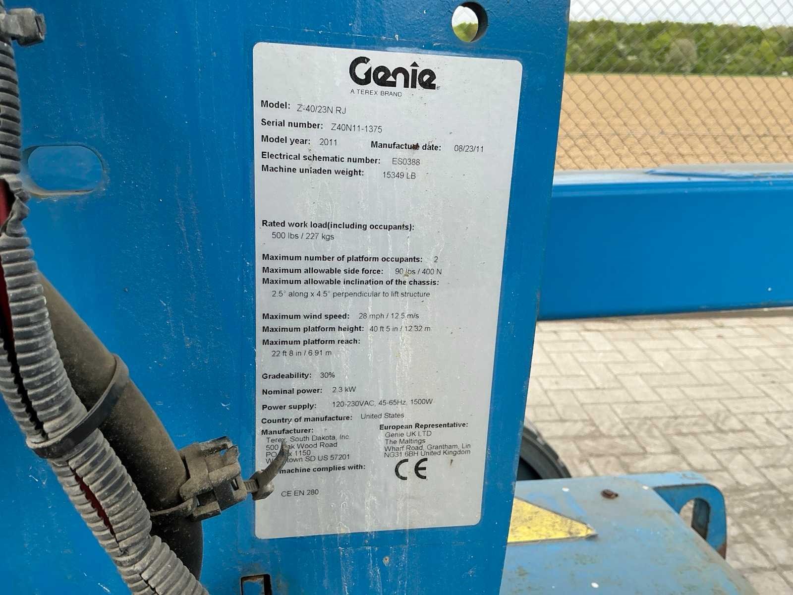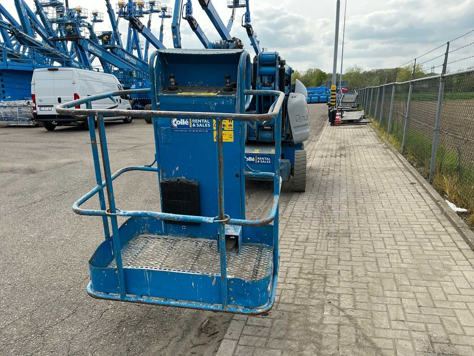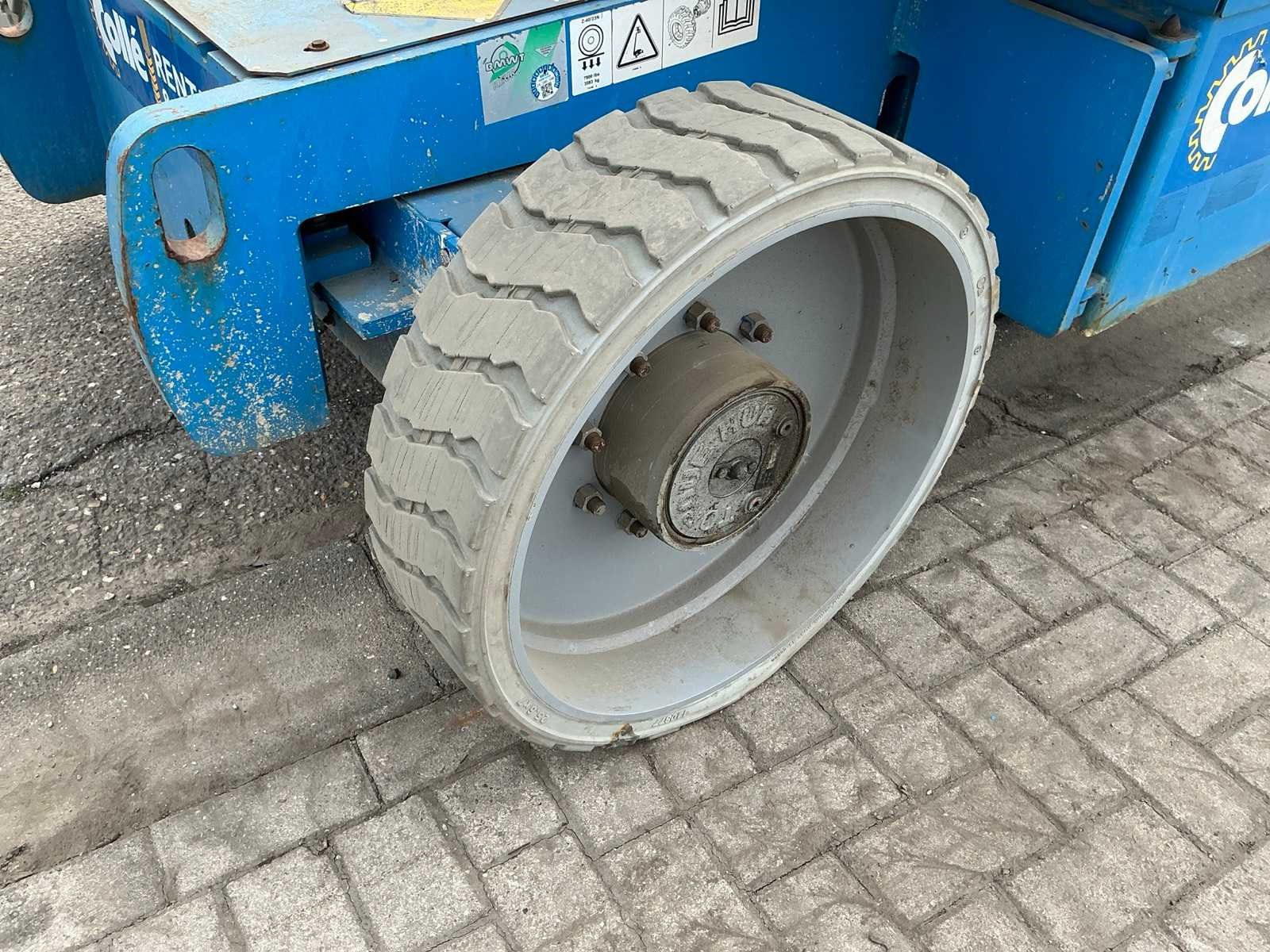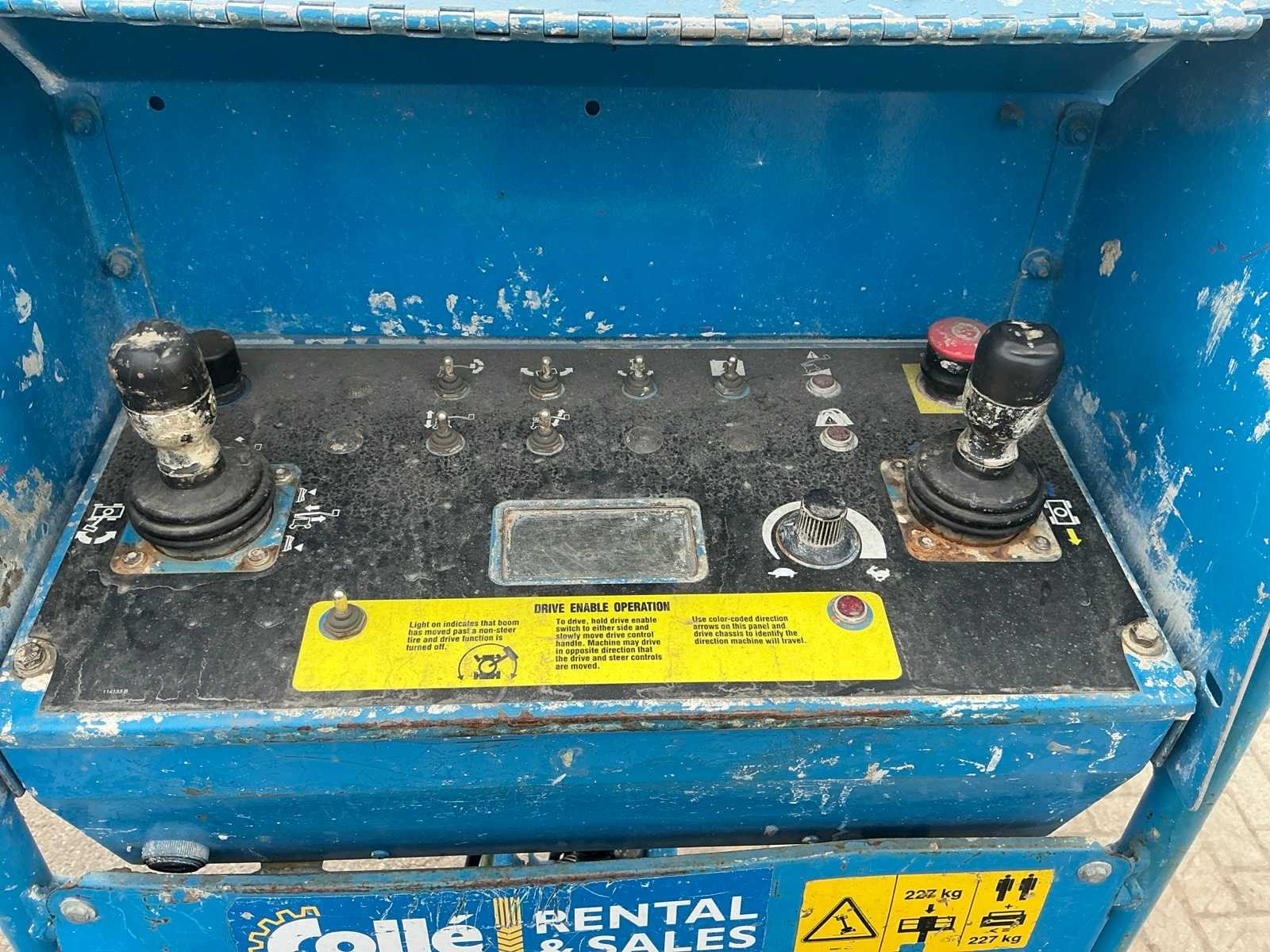 Kooibediening; platform zwenkbaar; maximale platformhoogte 12320 mm; accupakket dient vervangen te worden. No Merk: Genie Type: Z-40/23N RJ Bouwjaar: 2011 Serienummer: Z40N11-1375 Elektrisch: true Telescoop hoogwerker: true Knikarm hoogwerker: true Werkhoogte: 14320mm Horizontale rijkwijdte: 6910mm Plateau afm. l: 700mm Plateau afm. b: 1350mm Platform capaciteit: 227kg Accu lader: true Afgelezen urenstand: 1325 Eigen gewicht: 6965kg Totale afmeting L: 6550mm Totale afmeting Breedte: 1450mm Totale afmeting Hoogte: 2000mm