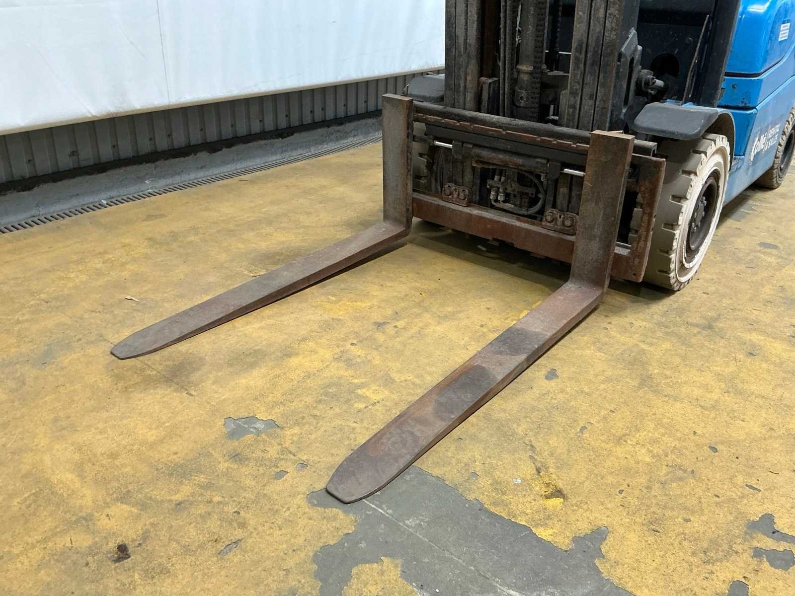 No Merk: Yale Type: GDP25LX E2200 Serienummer: A974B02091N Brandstof: Diesel Soort band: Volrubber banden Aantal wielen: 4 Afgelezen urenstand: 3034 Free-lift: true Side-shift: true Triple mast: true Eigen gewicht: 3500kg Hefvermogen: 2050kg Lepellengte: 1200mm Max. hefhoogte: 4775mm Vol rubber banden: true Minimale doorrijhoogte: 2200mm Totale afmeting L: 3650mm Totale afmeting Breedte: 1150mm Totale afmeting Hoogte: 2200mm
