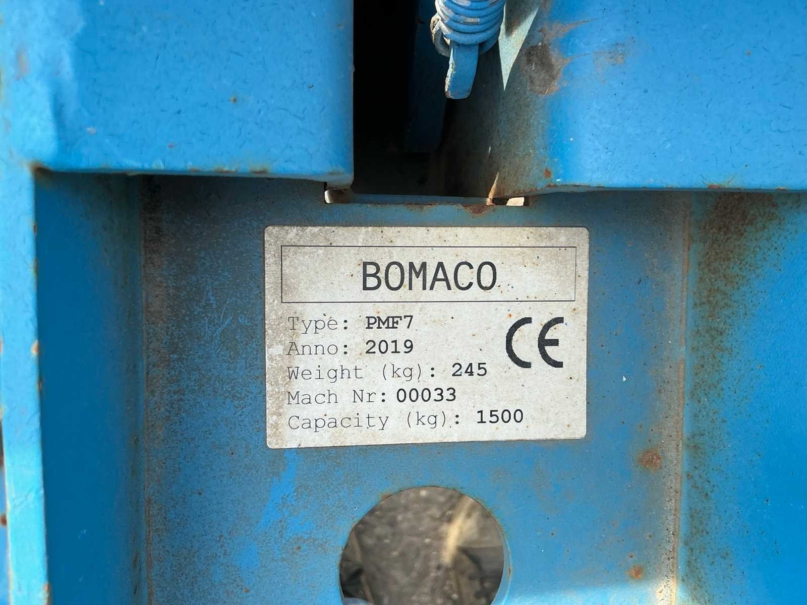 Staal; voorzien van rubbers aan de binnenzijde; klemopening 400 - 1000 mm; klemhoogte 150 - 400 mm; klemlengte 1200 mm; hijshaak; No Merk: Bomaco Type: PMF7 Bouwjaar: 2019 Serienummer: 00033 Hijsvermogen: 1500kg Eigen gewicht: 245kg Totale afmeting L: 1700mm Totale afmeting Breedte: 1200mm Totale afmeting Hoogte: 1100mm