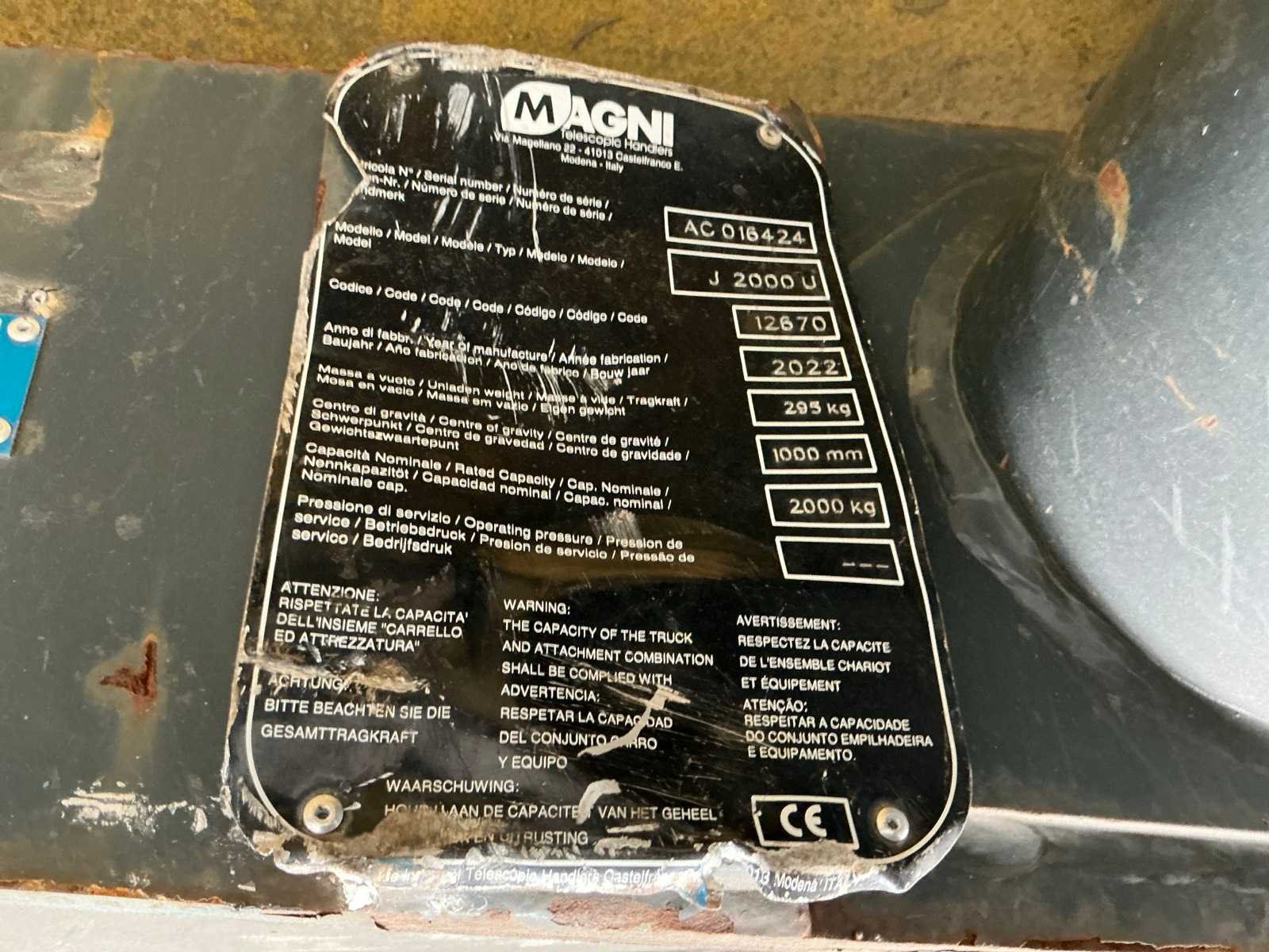 Voorzien van hijshaak No Merk: Magni Type: J2000U Bouwjaar: 2022 Hefvermogen: 2000kg Eigen gewicht: 295kg Totale afmeting L: 2600mm Totale afmeting Breedte: 790mm