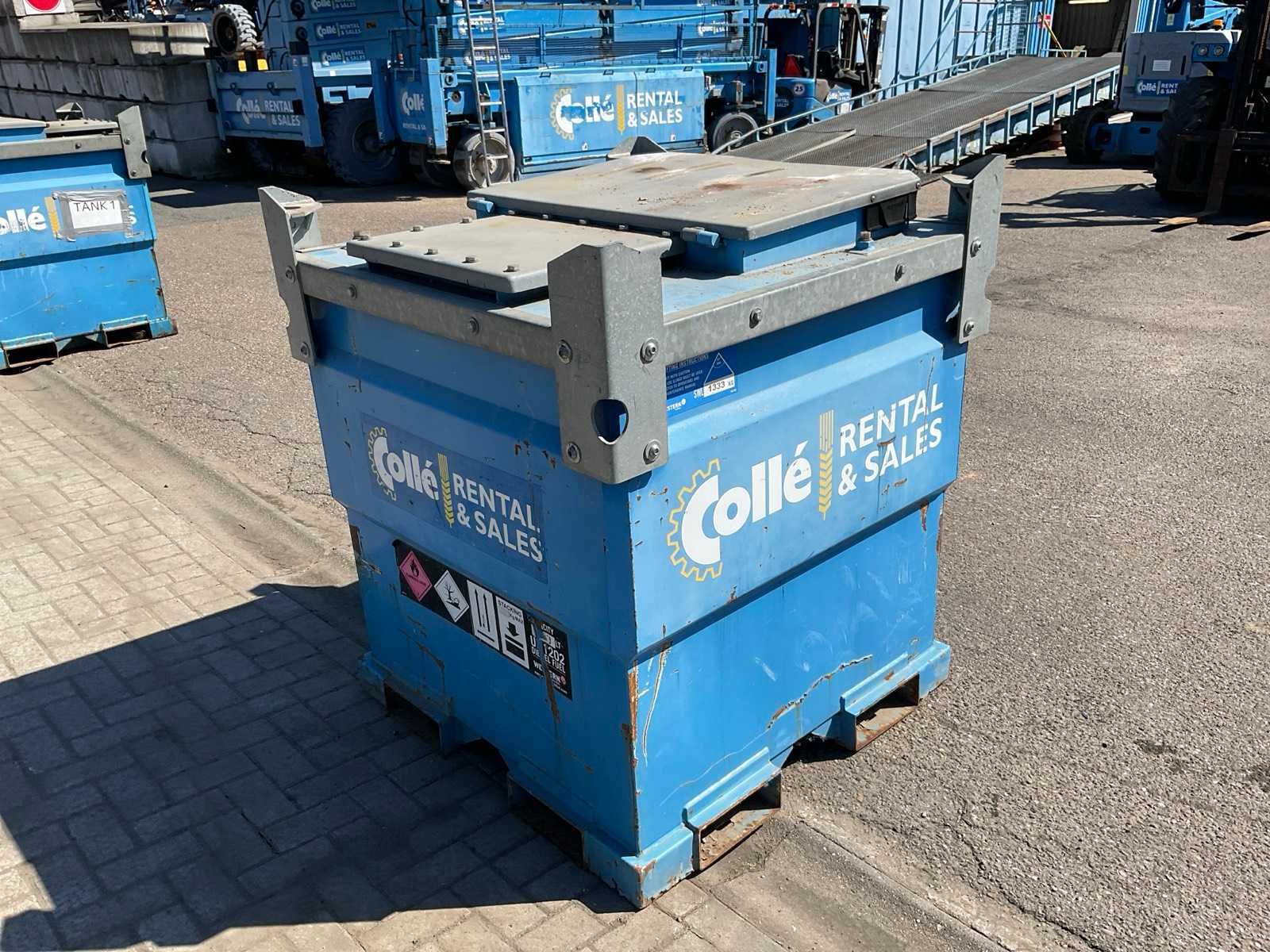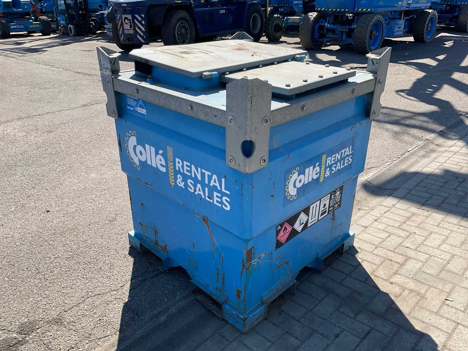 Inclusief elektrische pomp, heftruck sleuven en hijsogen. Nee Merk: IBC Western Type: TCG Bouwjaar: 2015 Serienummer: 15006752 Staal: true Capaciteit.: 950l Mangat: true Dubbelwandig: true Eigen gewicht: 484kg Totale afmeting L: 1100mm Totale afmeting Breedte: 1100mm Totale afmeting Hoogte: 1270mm