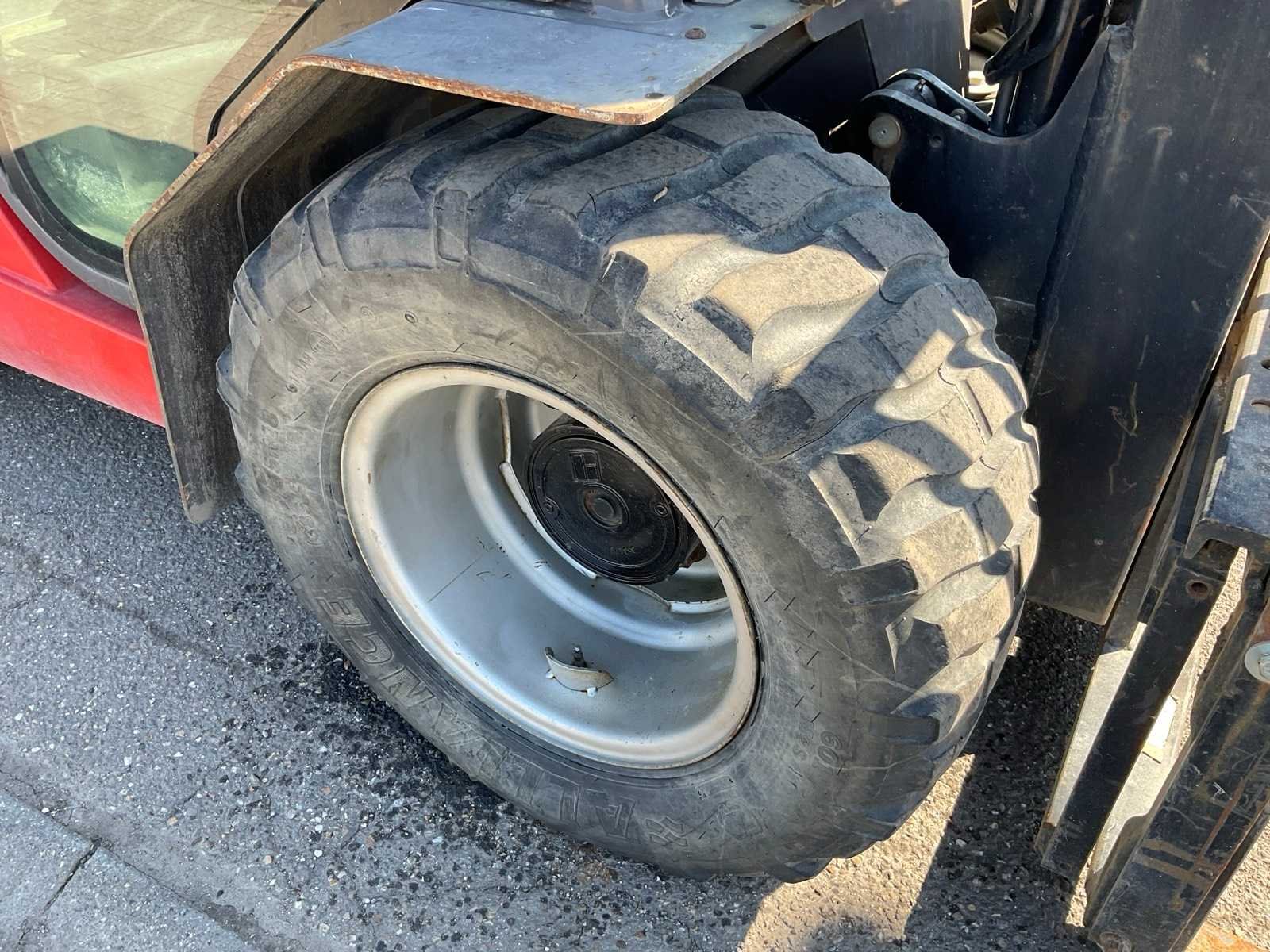 Voorzien van: verlichting en zwaailamp. No Merk: Manitou Type: MSI 30T Bouwjaar: 2015 Serienummer: 948347 Brandstof: Diesel Aantal wielen: 4 Afgelezen urenstand: 2452 Free-lift: true Side-shift: true Triple mast: true Eigen gewicht: 4970kg Hefvermogen: 3000kg Lepellengte: 1100mm Max. hefhoogte: 4700mm Luchtbanden: true Minimale doorrijhoogte: 2400mm Totale afmeting L: 4050mm Totale afmeting Breedte: 1600mm Totale afmeting Hoogte: 2350mm Diesel: true