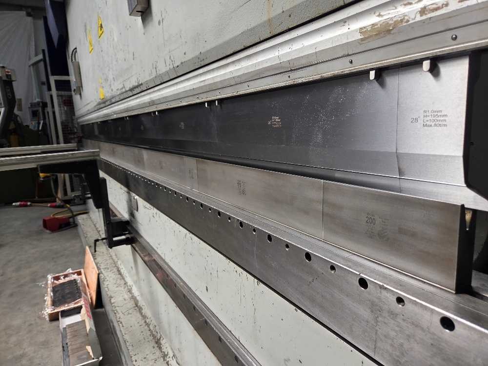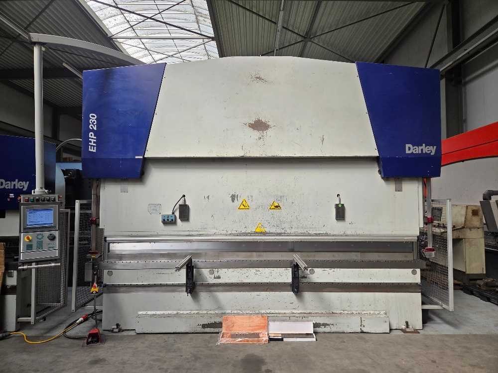 Inclusief 1 set gereedschap; voorzien van automatische boven en onderklemming; Nee Merk: Darley Type: EHP LS 230 43 37 Bouwjaar: 2002 Serienummer: 12.2206 Capaciteit.: 230t Werklengte: 4300mm Aantal assen: 8 CNC-besturing, merk, type: Delem DA65 Aansluiting: 400V