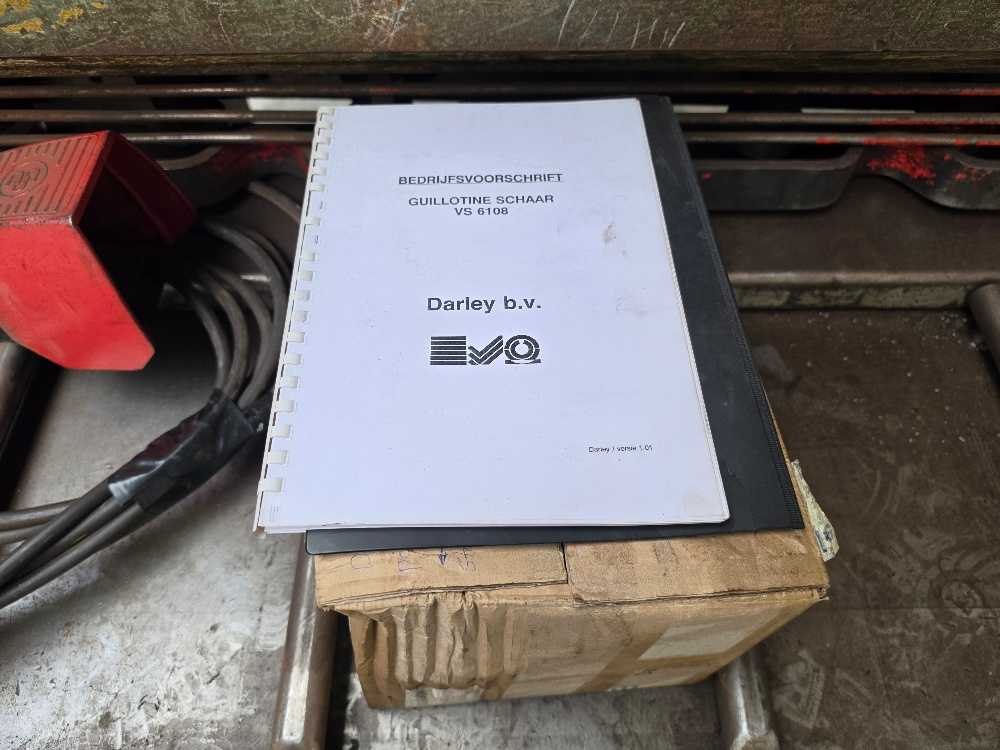Machine in goed werkende staat; scheur in zijkant Nee Merk: Darley Type: VS 6100 X 8 Bouwjaar: 1993 Serienummer: 11.2023 Snijlengte: 6100mm Max. plaatdikte: 8mm Besturing, merk, type: Luna Aansluiting: 400V