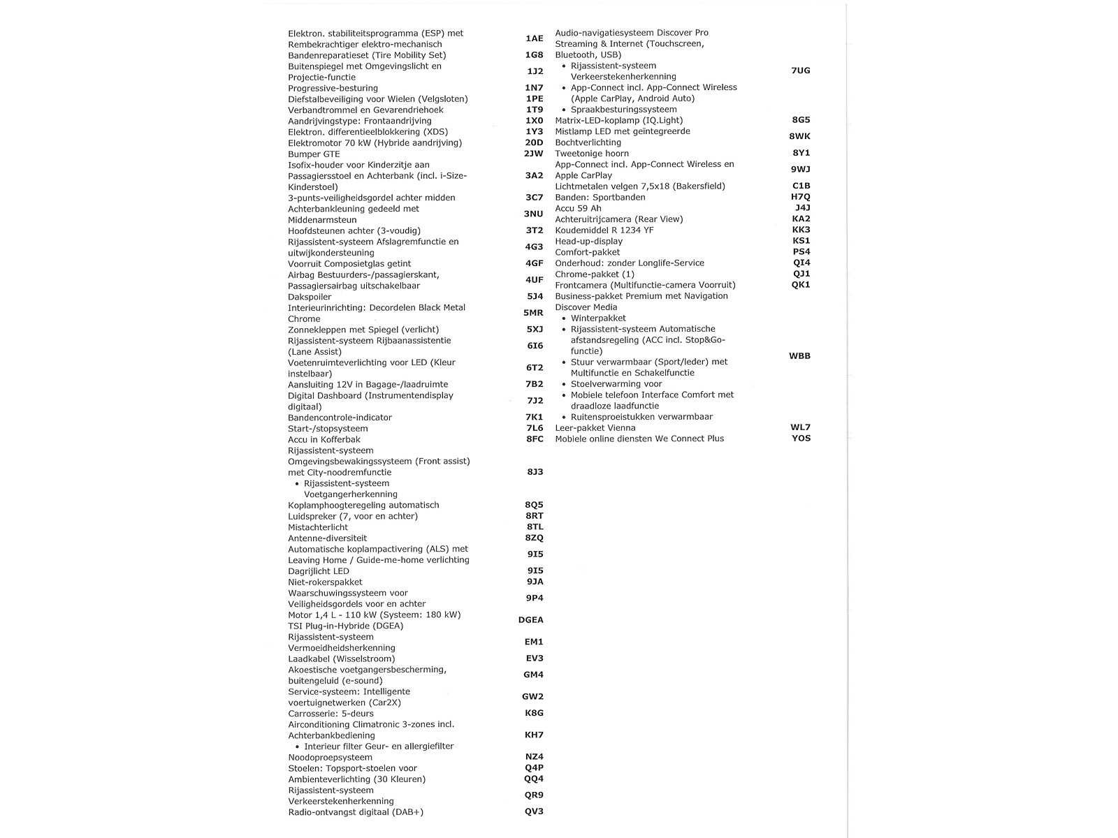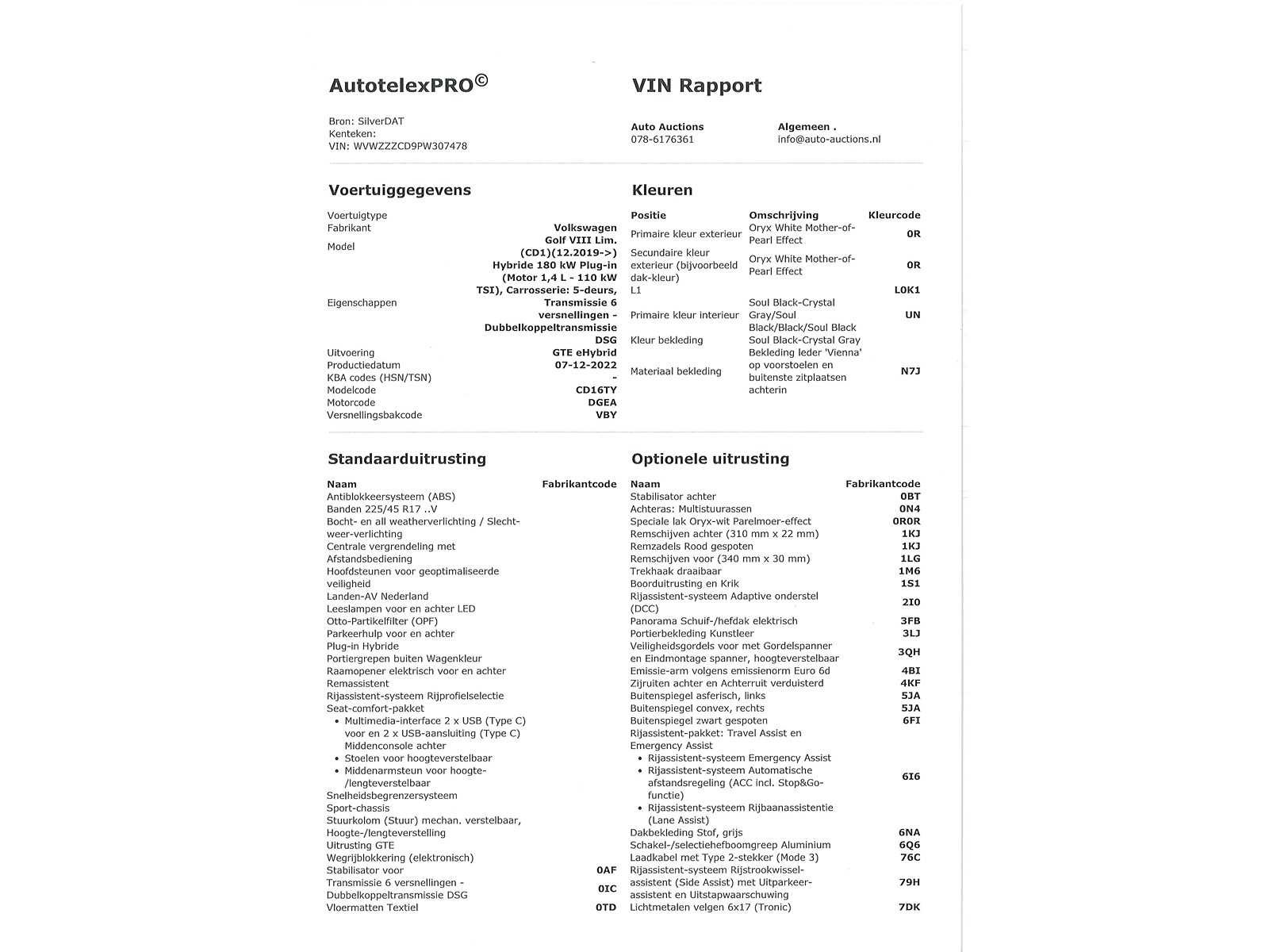 Duitse kenteken papieren. Indien gewenst kunnen wij het gehele import proces voor u verzorgen, RDW invoer, BPM taxatie, Douane afwikkeling, stalling etc. Voor deze auto zijn de totale invoerkosten inclusief de BPM €1.195.- Dus voor €1.195.- boven op uw aankoopprijs verzorgen wij het NL kenteken voor u. (This option is only for Dutch buyers) Voor vragen kunt u mailen naar info@auto-auctions.nl Nee Kenteken: Duitse Kenteken Papieren Merk: Volkswagen Model: Golf Type: GTE 1.4 eHybrid PHEV Afgelezen kilometerstand: 101748km Cilinderinhoud: 1395cc Vermogen (kW): 180kW Brandstof: Hybride Benzine Chassisnummer: WVWZZZCD9PW307478 Datum eerste toelating: 16-12-2022 Vermogen (pk): 245hp Aantal zitplaatsen: 5 Kleur: Oryx White Pearl Effect Transmissie: Automaat Drive type: Front wheel Aantal deuren: 5 Aantal sleutels: 2 Aantal cilinders: 4 Carrosserie: Hatchback Nationaliteit documenten: Duitse Kenteken Papieren Onderhoudshistorie: Digitaal Volledig Aanwezig Start en rijdt: Ja oplaadkabel : Aanwezig LED-koplampen: true Leder bekleed: true